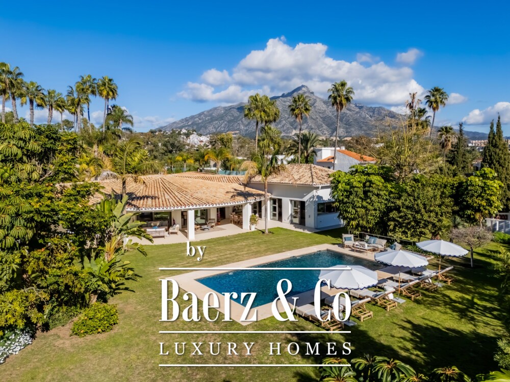 Villa Marbella with Mature Botanical Gardens and Golf Views unfolds across 722m² on a single level, set within a 3,081m² south-facing plot in La Cerquilla, Nueva Andalucía. This villa Marbella property has evolved through thoughtful renovations, with a landmark update in 2013 by Bonifacio Solis and attentive upgrades as recently as 2024. The result is a residence that balances architectural clarity and botanical splendor with discretion and enduring quality.