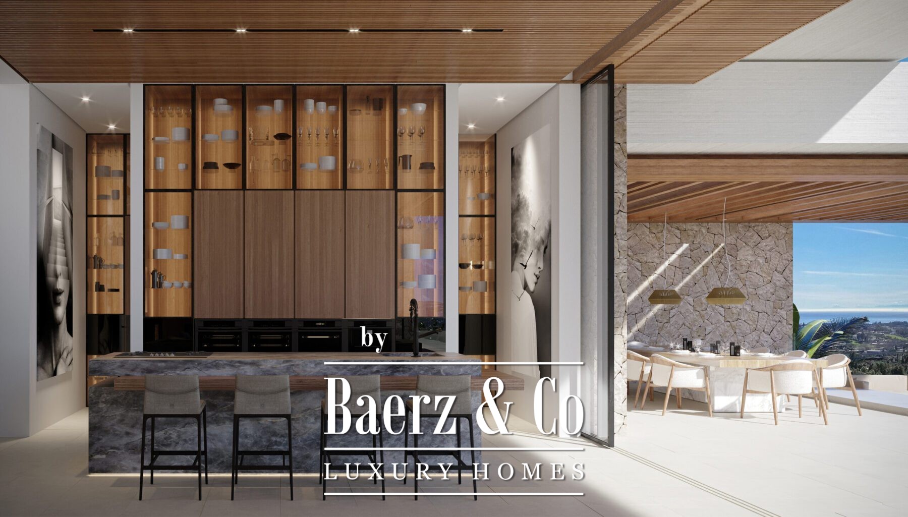Villa Benahavis offers panoramic sea views from one of Marbella’s final exclusive plots, bringing together modern design and daily practicality. This villa in Benahavis stands within a secure gated community, reflecting a lifestyle grounded in comfort, privacy and a connection to nature. The outdoor experience is central, with an infinity pool oriented toward the scenery, a sunken lounge for relaxed gatherings and an open-air kitchen for Mediterranean evenings. Water features throughout the terraces foster a sense of calm and belonging to the landscape.