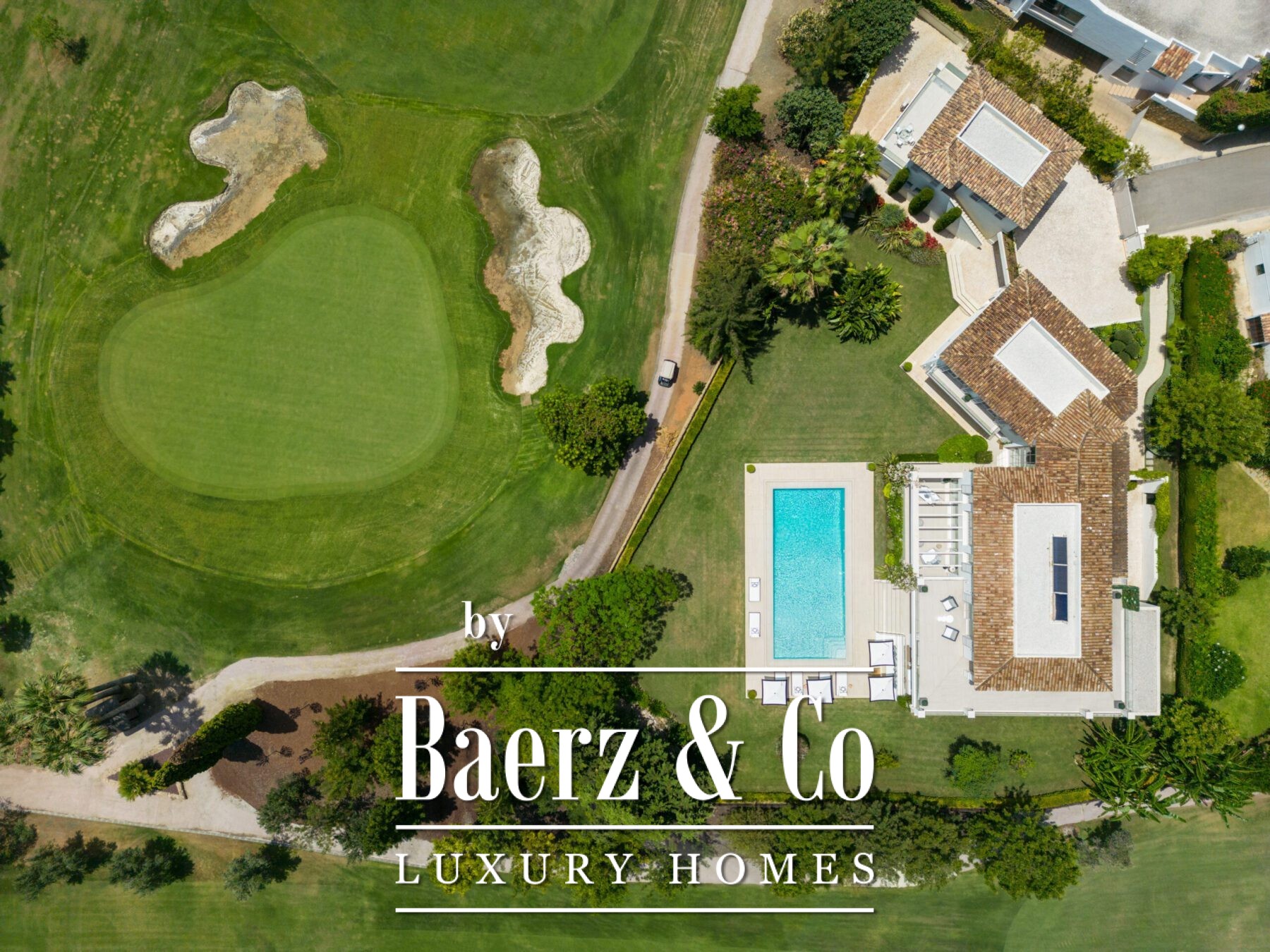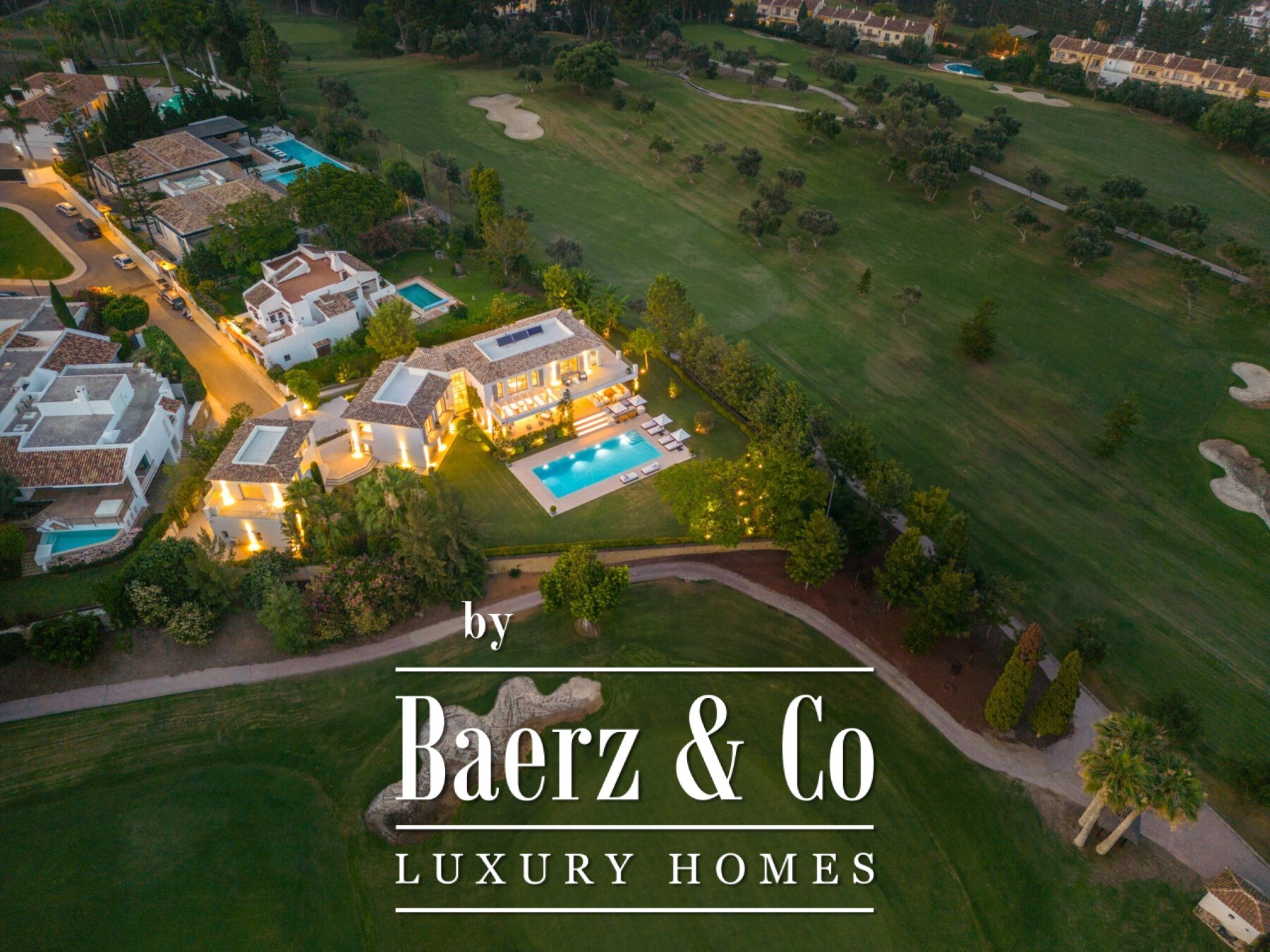 A private oasis nestled in the luxurious area of Marbella's Golf Valley. This magnificent mansion sits in a prestigious gated community and boasts an enviable front-line position overlooking Aloha Golf Course. Its timeless exterior and top-of-the-line interior finishes strike the perfect balance between classic elegance and modern sophistication. The property strikes a perfect balance between classic elegance and modern sophistication, featuring a timeless exterior and top-of-the-line interior finishes. The colour pallet used to decorate the interior is soft and inviting, exuding a calming atmosphere that one expects when coming back home.