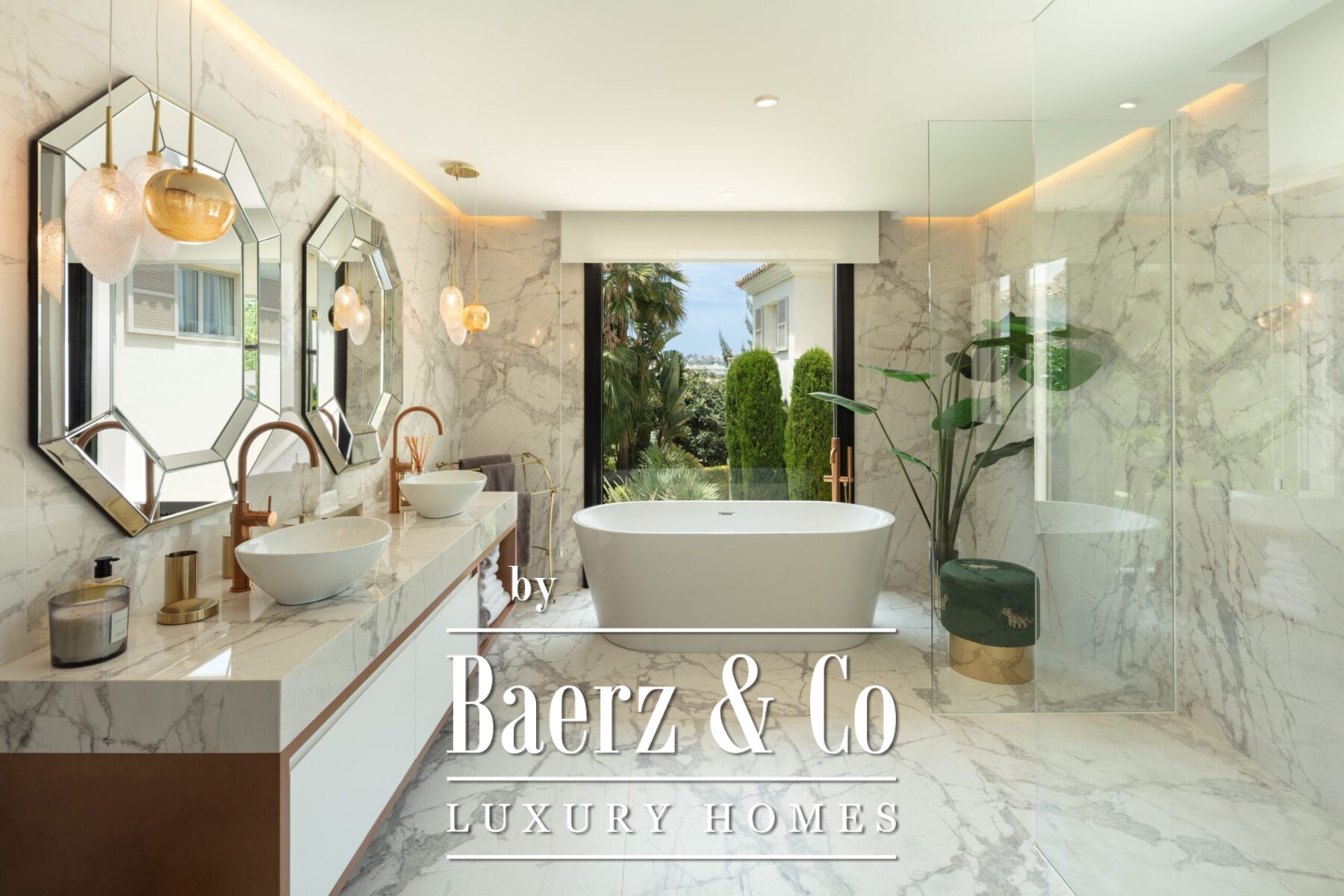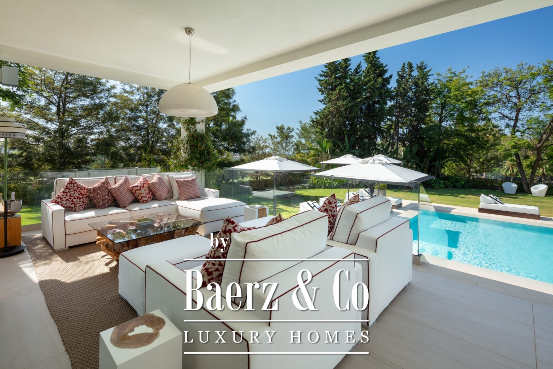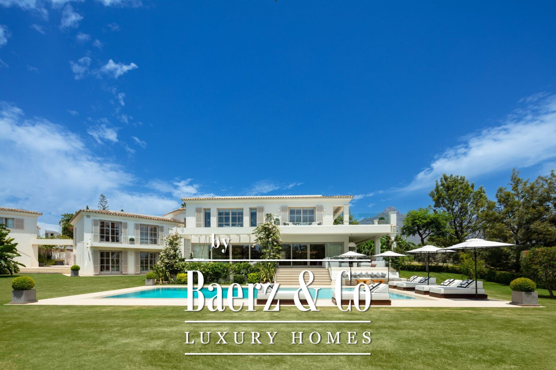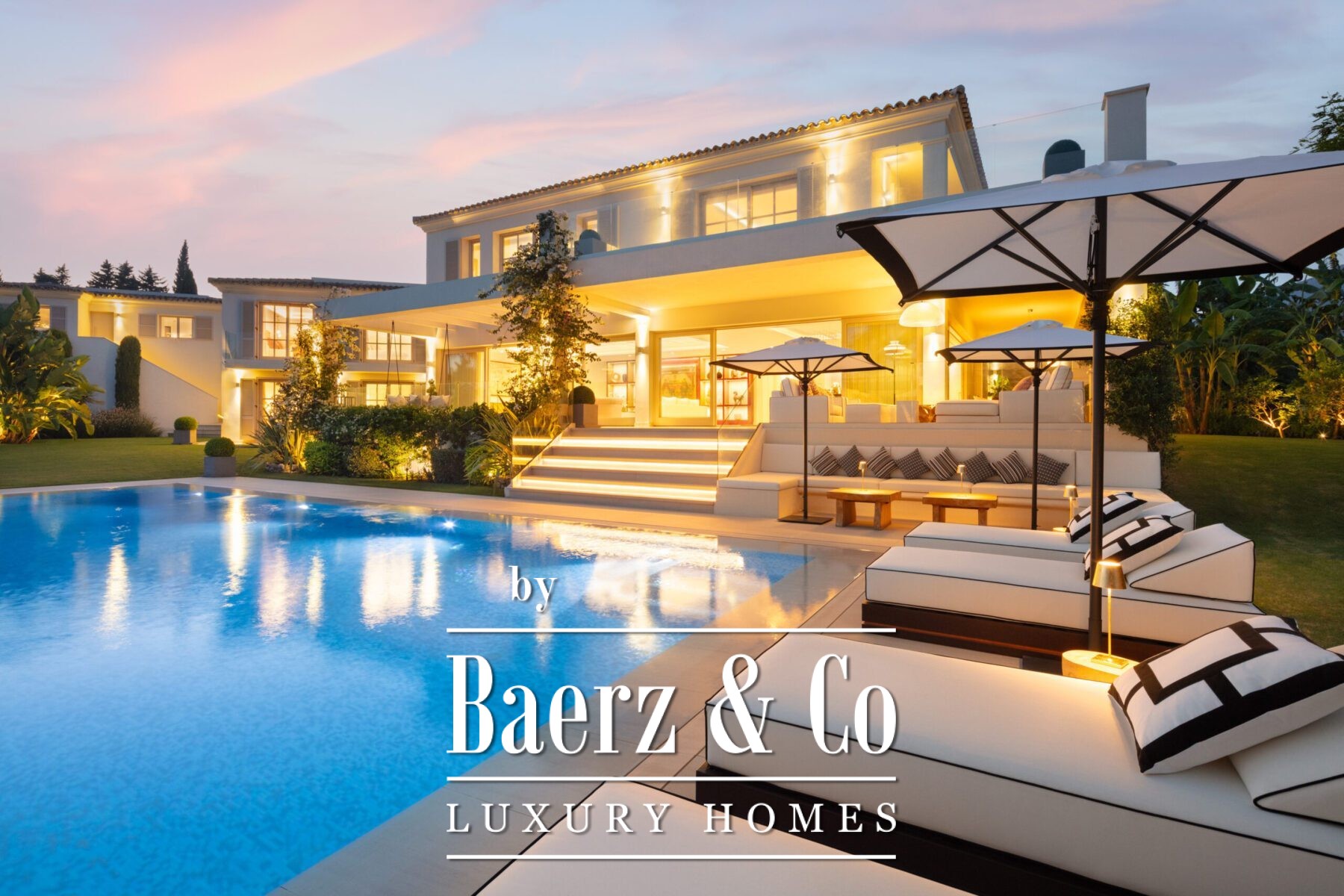 The property comprises a main residence with 5 generously sized bedrooms, including a luxurious master suite with a dressing room. The bedrooms exude individuality with their distinct touches, yet their cohesiveness is a testament to the clever design decisions. There is a separate 1-bedroom guest house, perfect for accommodating staff or visitors. The allure of this property lies in its enchanting outdoor areas, where a lush green garden and spacious terraces offer the ideal setting for enjoying Marbella's perfect climate throughout the year. The verdant surroundings of the main house are adorned with greenery, which seamlessly blends with the other green areas of the property. This unique mansion boasts spectacular views and luxurious amenities, making it an unparalleled gem in the highly sought-after area of Marbella.