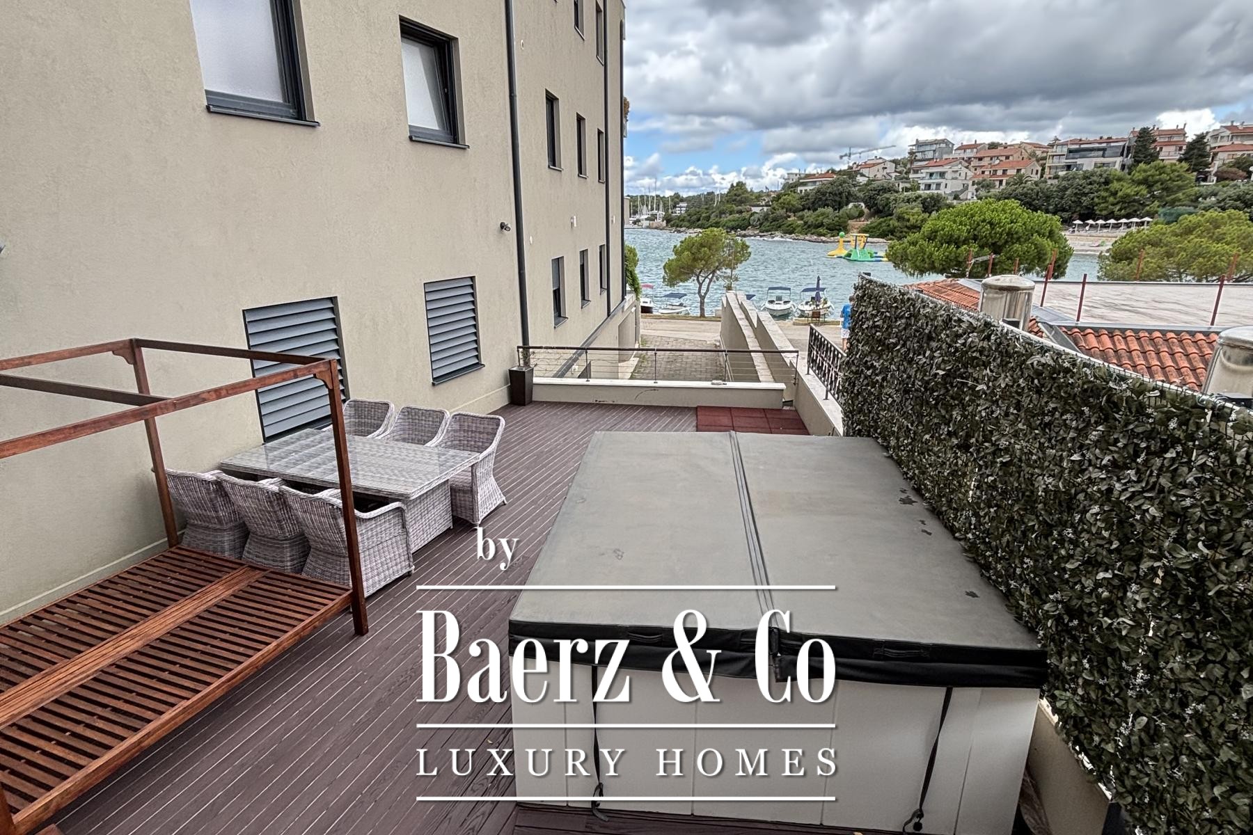 In our offer we offer a rare property located in the attractive tourist resort of Pješčana uvala, located on the ground floor of a newer building, first row to the sea, with a total net area of 206.01 m2.The apartment consists of an entrance hall, kitchen, dining room, living room, two spacious covered terraces where there is a jacuzzi with a direct view of the sea, three bathrooms, utility room, four bedrooms, garden and one uncovered parking space. While in the basement of the building