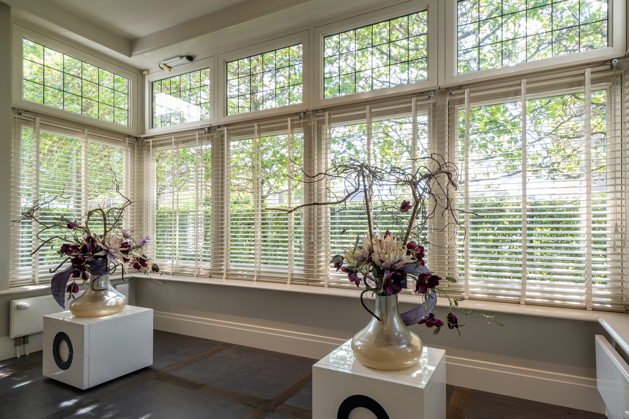 High ceilings, abundant natural light, bay window, glass roof panels, and spacious stairwell
