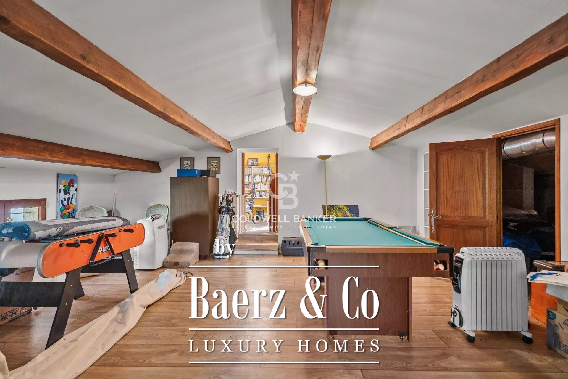 At the heart of the ground floor is an expansive living room of 95 m², opening to a refined kitchen and onto a terrace that frames the views. Two suites provide flexibility for a large master configuration with double dressing room. Upstairs, an office extends to its own terrace, while a games room with attic space creates further potential. The lower floor hosts four bedrooms, including another suite, each quietly oriented toward the gardens.