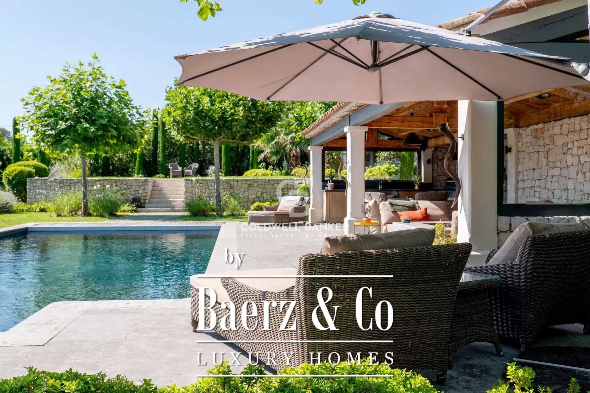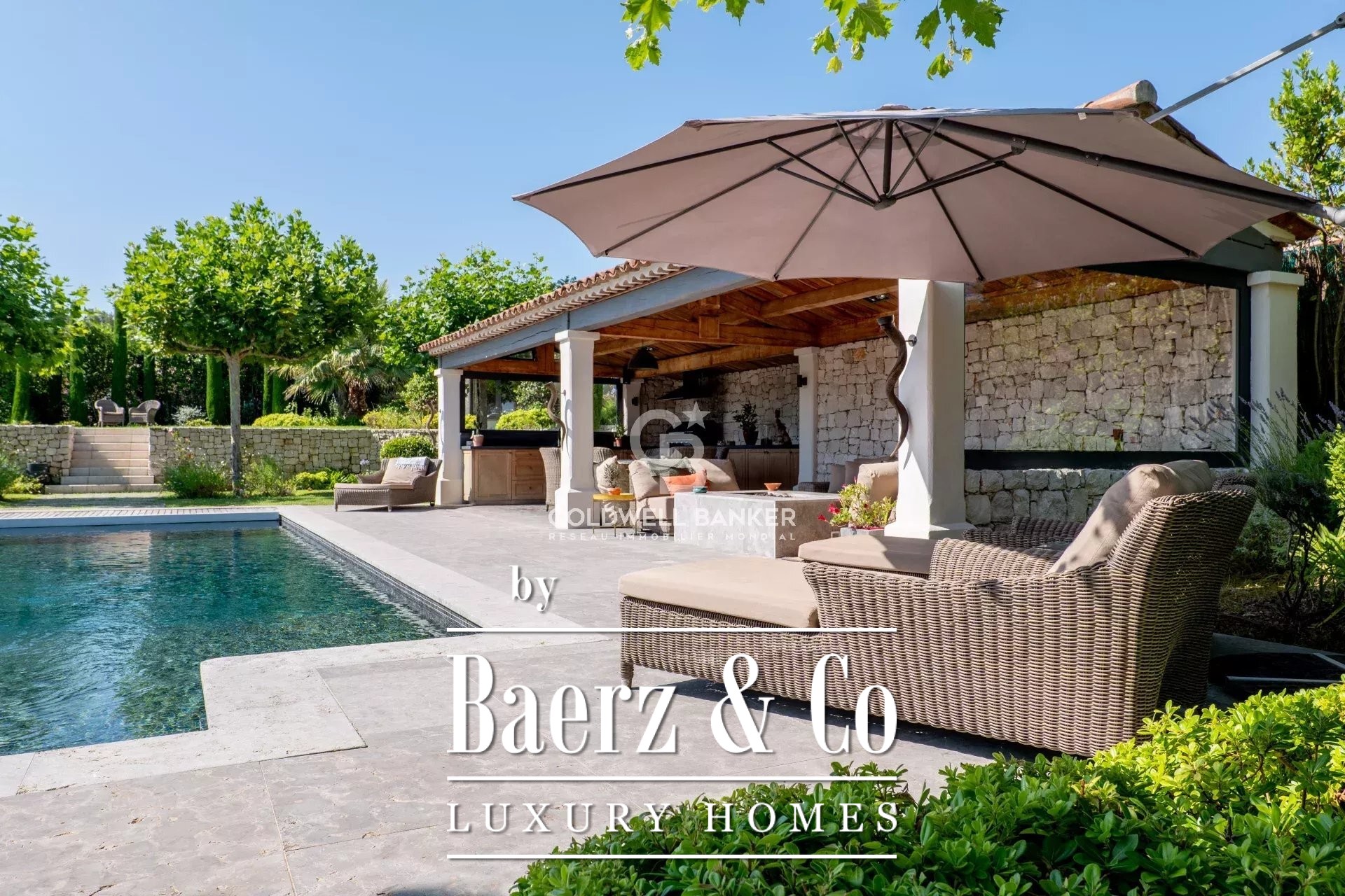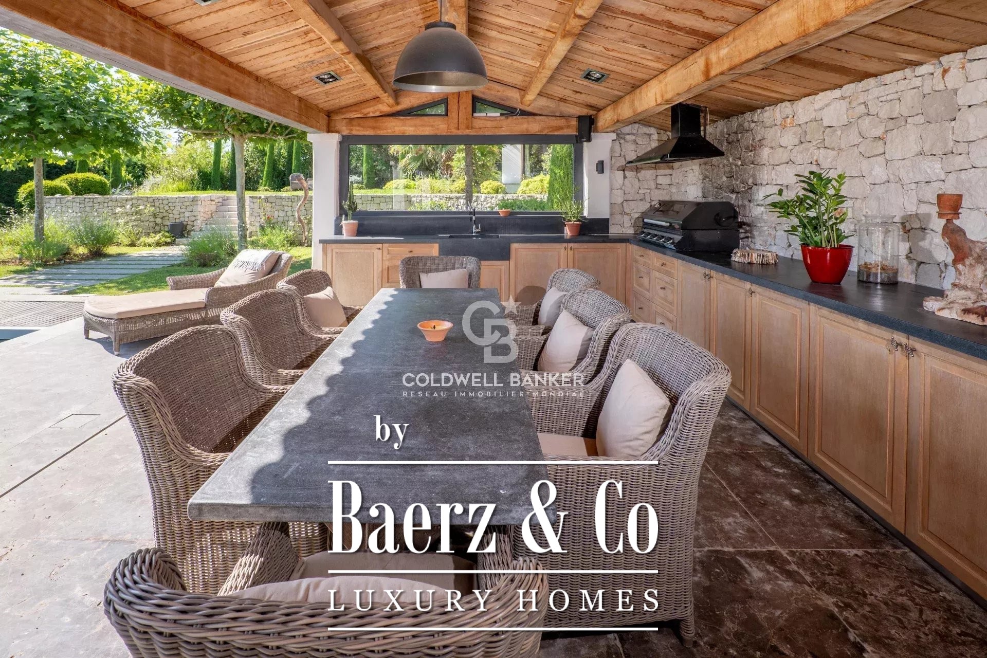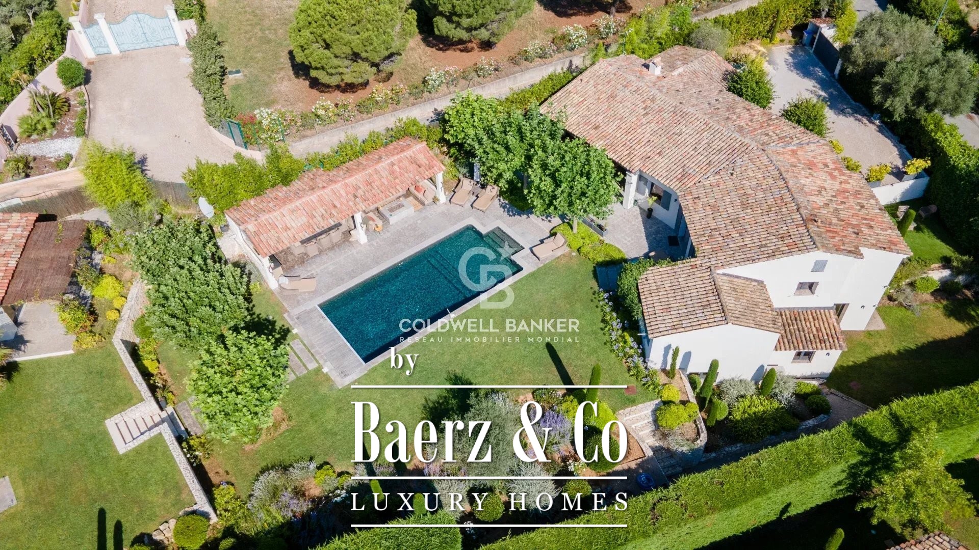 Exclusivity - Located in a quiet and residential area of Mougins, superb villa in perfect condition comprising on the ground floor an entrance hall, a living room with fireplace, a dining room, a nice and equipped kitchen, a master suite with bedroom, bathroom and dressing room, two additional suites. On the garden level, there is a games/TV room, proper cinema room, a fourth suite with shower room, a vine cellar and a laundry room.