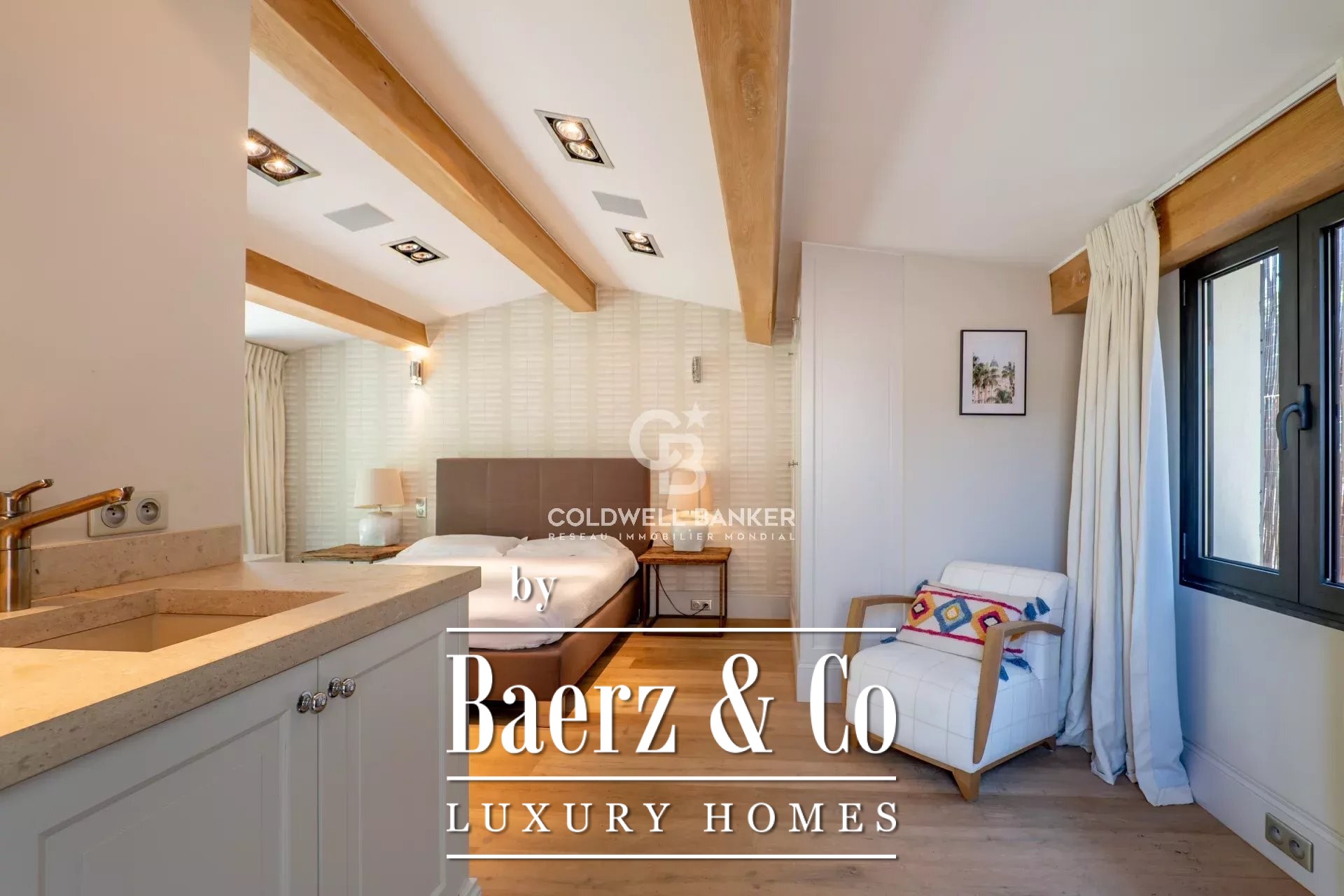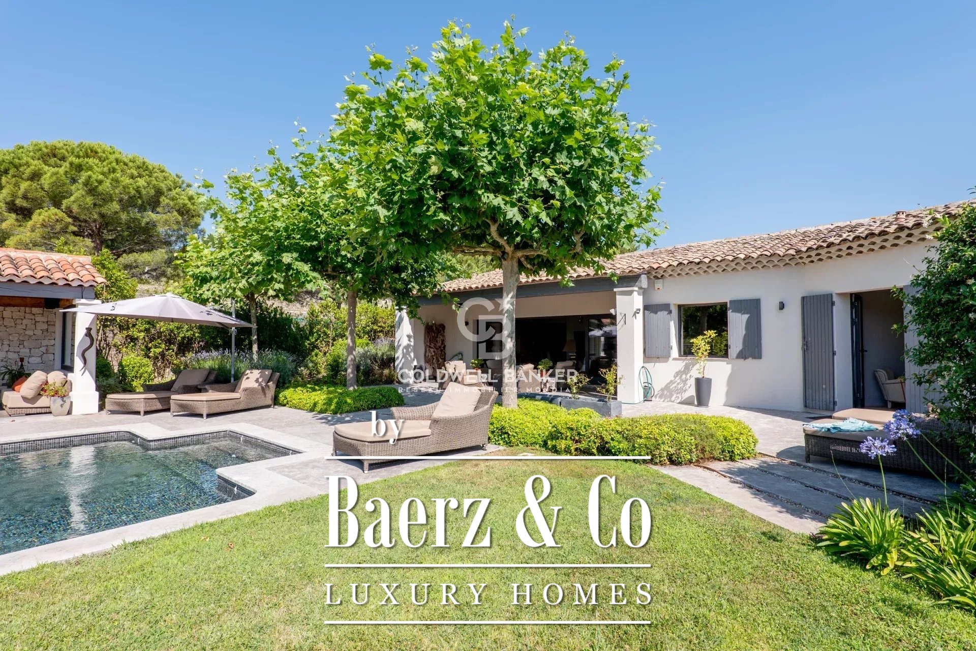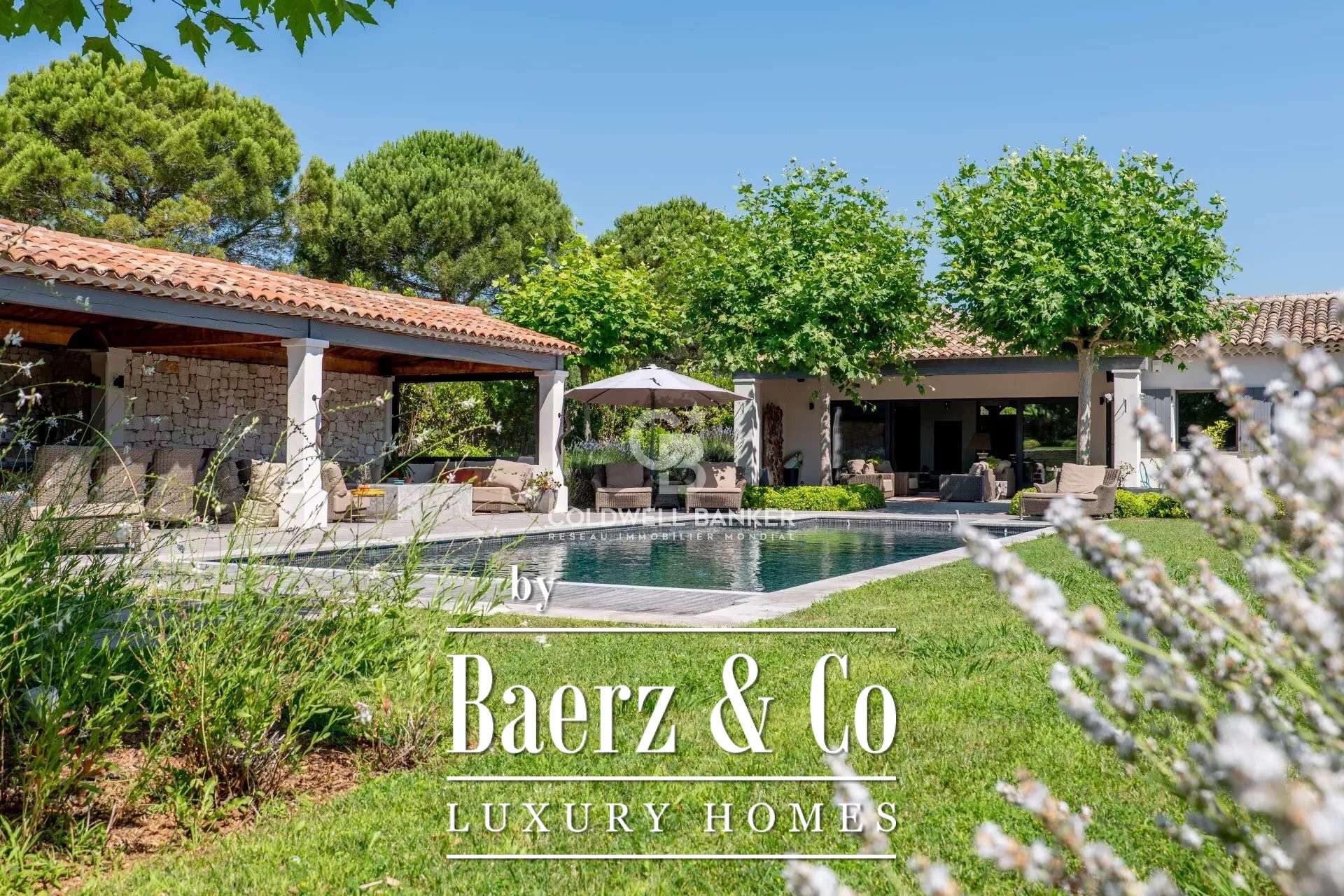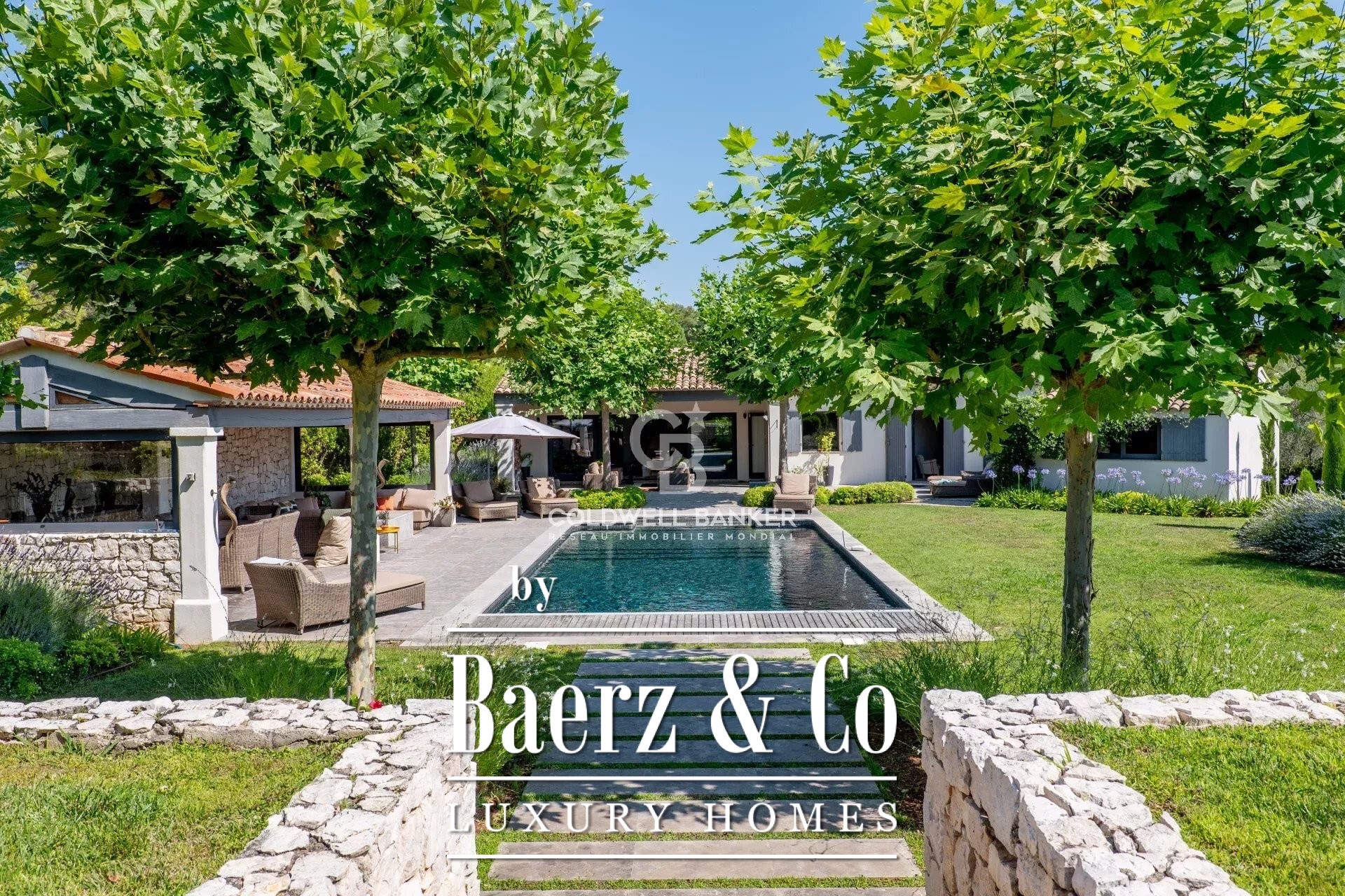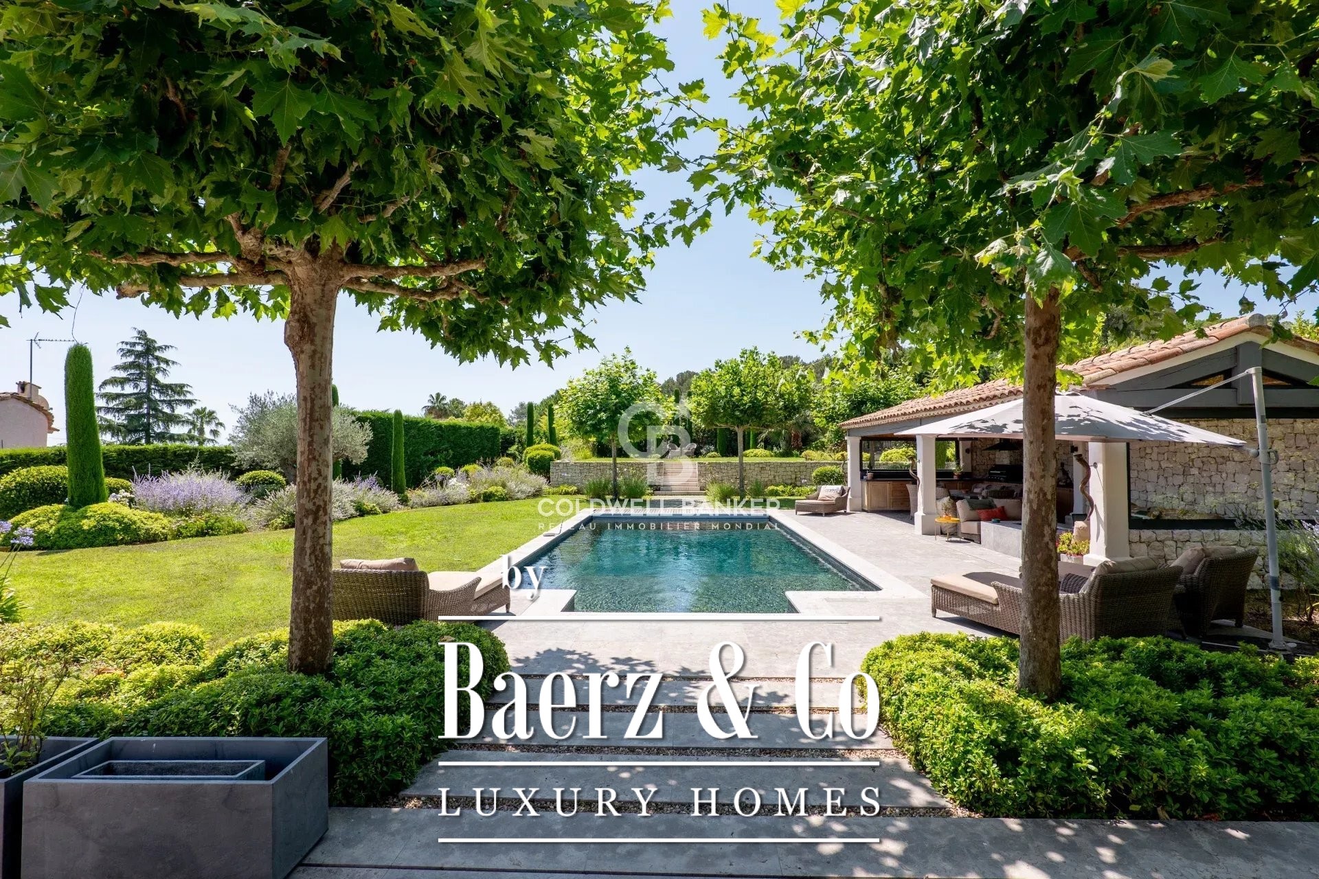 Exclusivity - Located in a quiet and residential area of Mougins, superb villa in perfect condition comprising on the ground floor an entrance hall, a living room with fireplace, a dining room, a nice and equipped kitchen, a master suite with bedroom, bathroom and dressing room, two additional suites. On the garden level, there is a games/TV room, proper cinema room, a fourth suite with shower room, a vine cellar and a laundry room.
