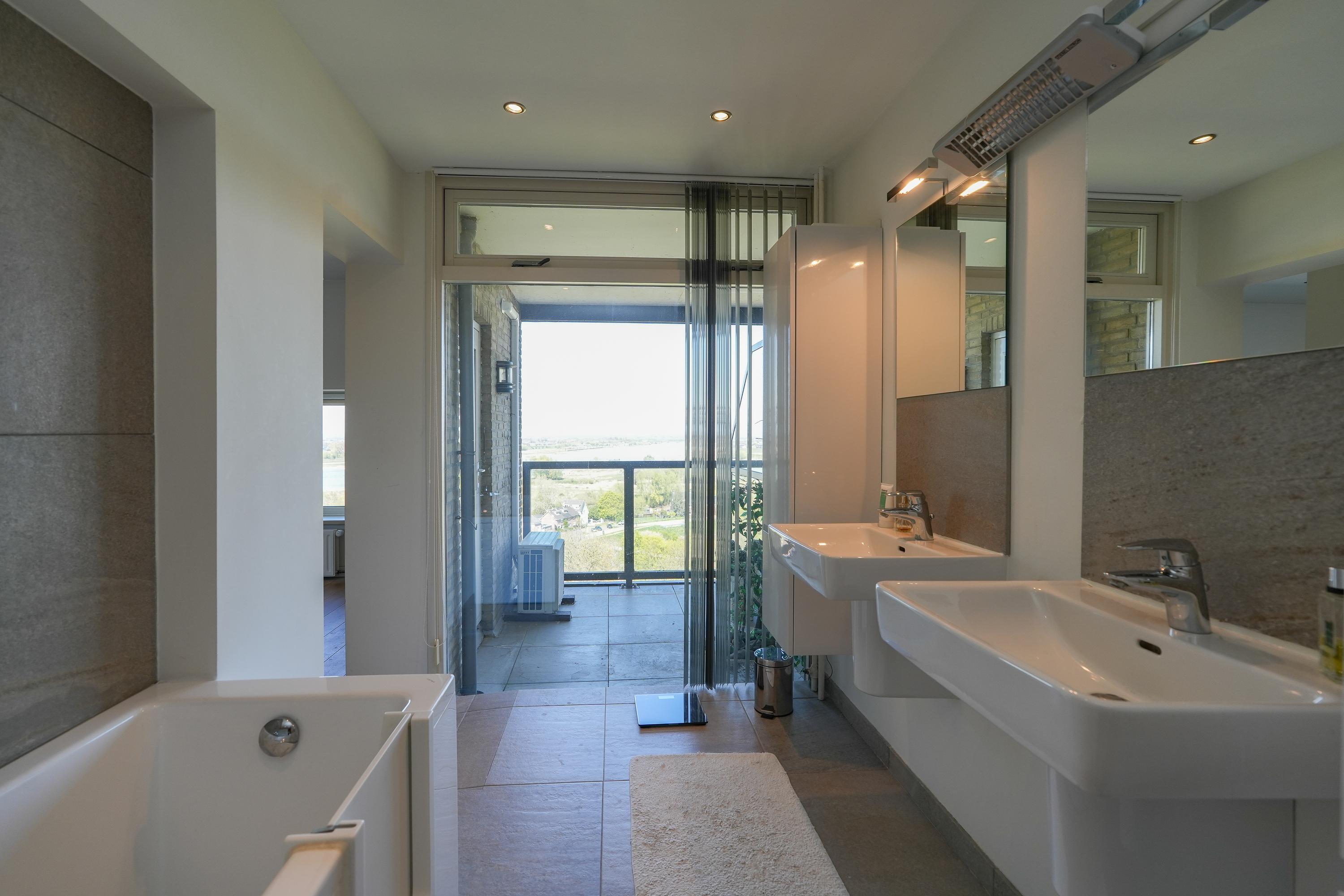 The kitchen is equipped with various built-in appliances and provides access to the first, south-facing balcony. Adjacent to the kitchen is an internal utility room offering additional storage and workspace. From the living room and the balcony there are beautiful views over the city of Nijmegen and Radboud University. A gas fireplace separates the dining area from the television/lounge area on the south-west side. The west-facing balcony offers lovely views towards the River Waal and the iconic Waal Bridge.