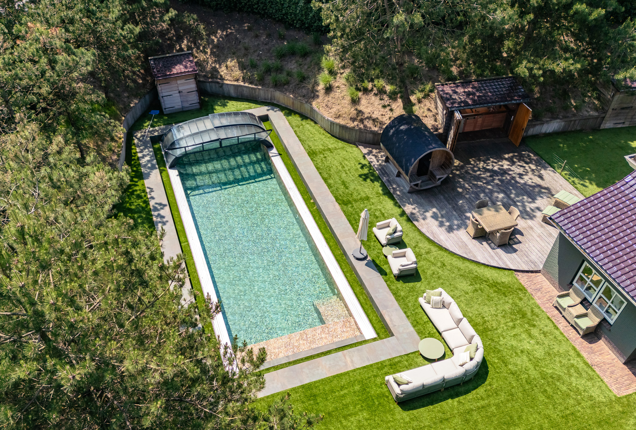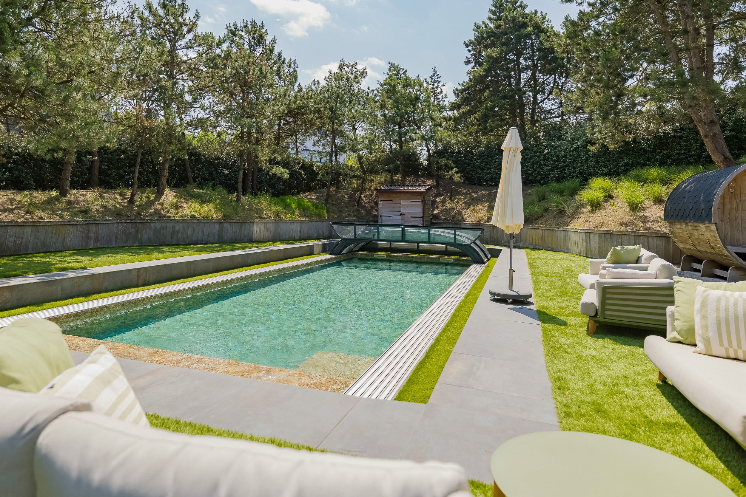 • Heated swimming pool of 14 x 5 meters with telescopic cover, heated by air/water heat pump.