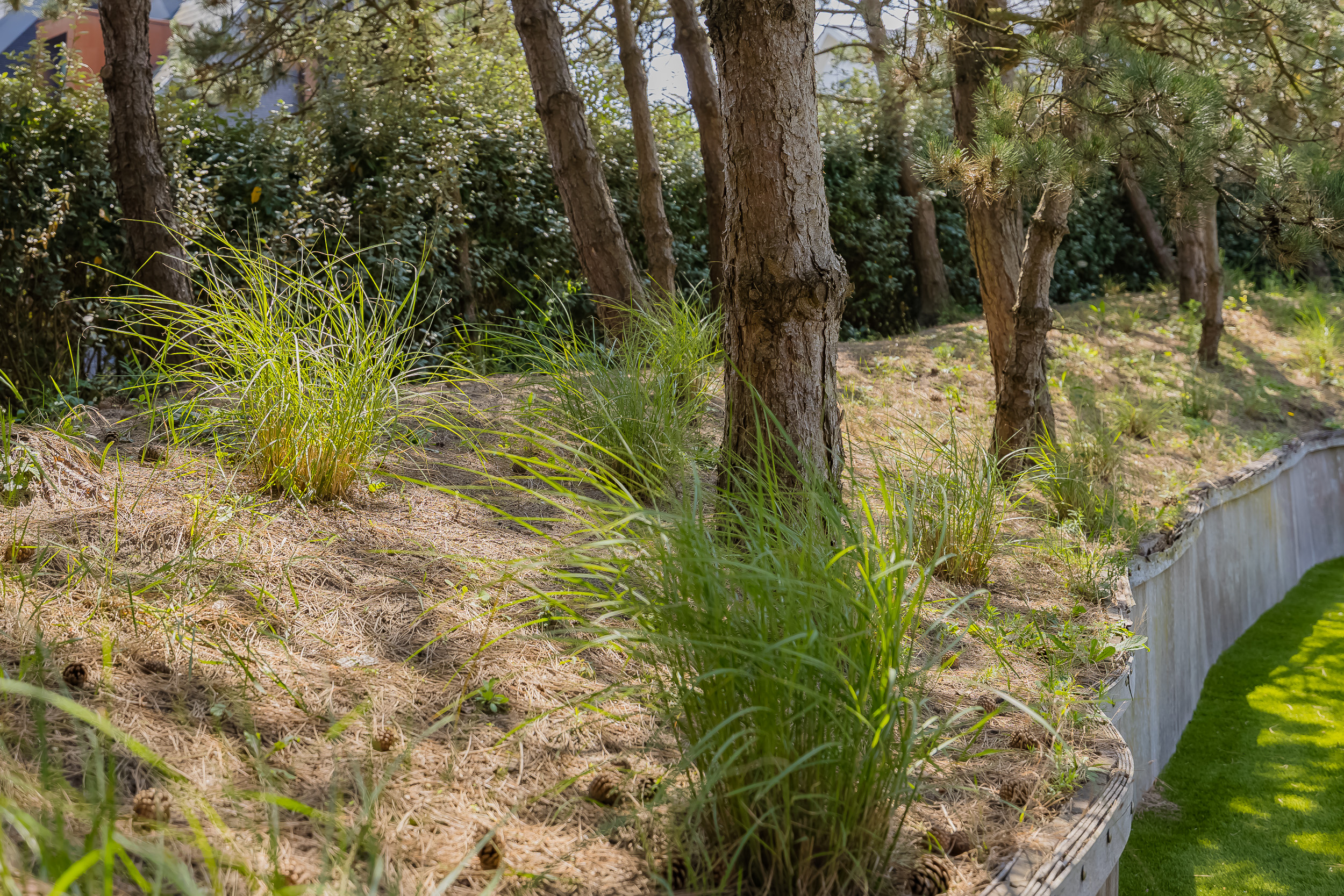 The plot is thoughtfully designed with natural, sustainable materials: from the garage path in old bricks to the Red Cedar garden houses, shed and gym. Everything is designed to blend stylishly into the natural environment. The garden offers absolute privacy.