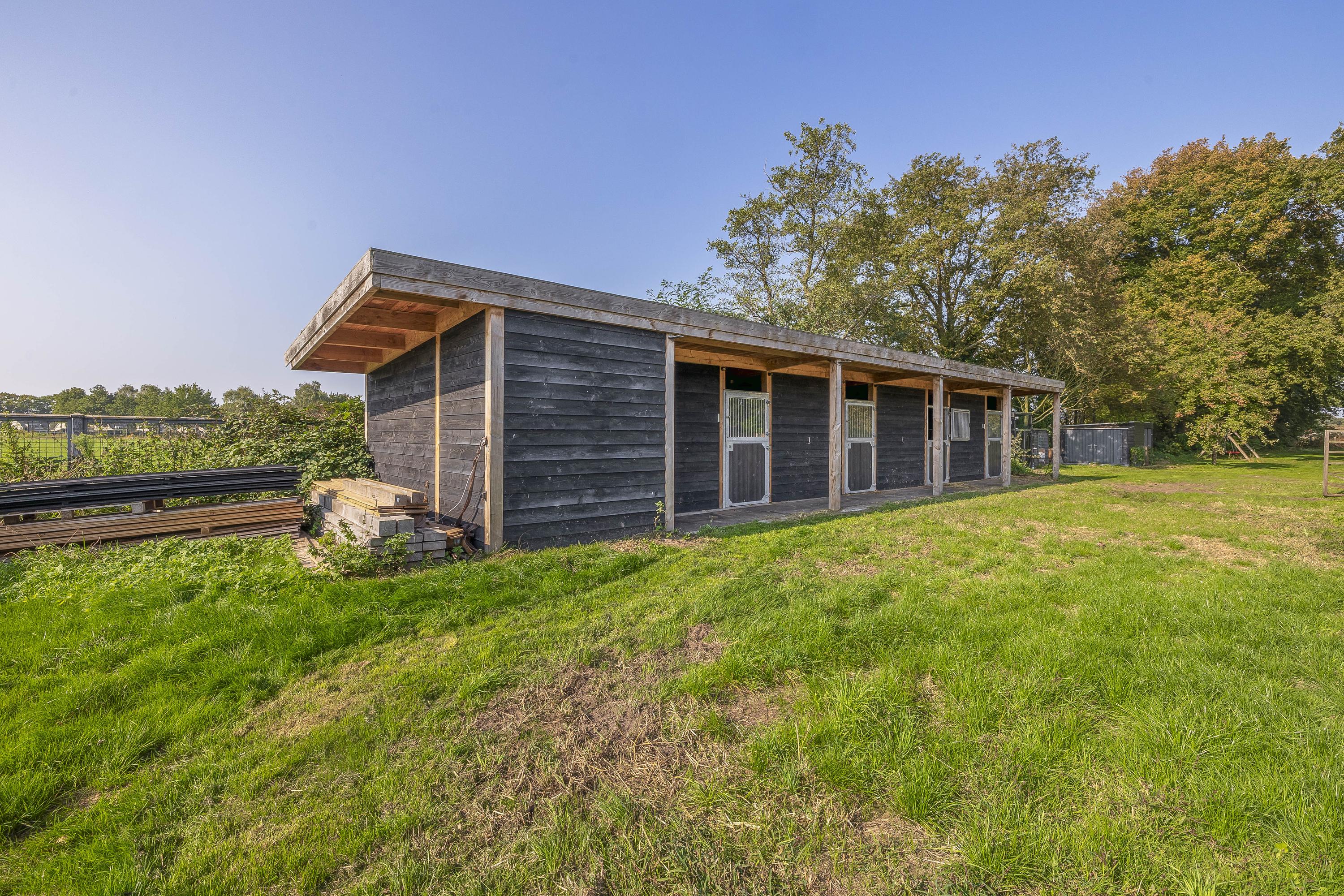 The beautiful garden surrounds the house and has several outbuildings. It is a park-like garden with lots of privacy, a large lawn, meadow, mature planting and several terraces. There is also a stable for keeping four horses as a hobby. There are also paddocks, one of which has a shelter. There are also two lockable barns.