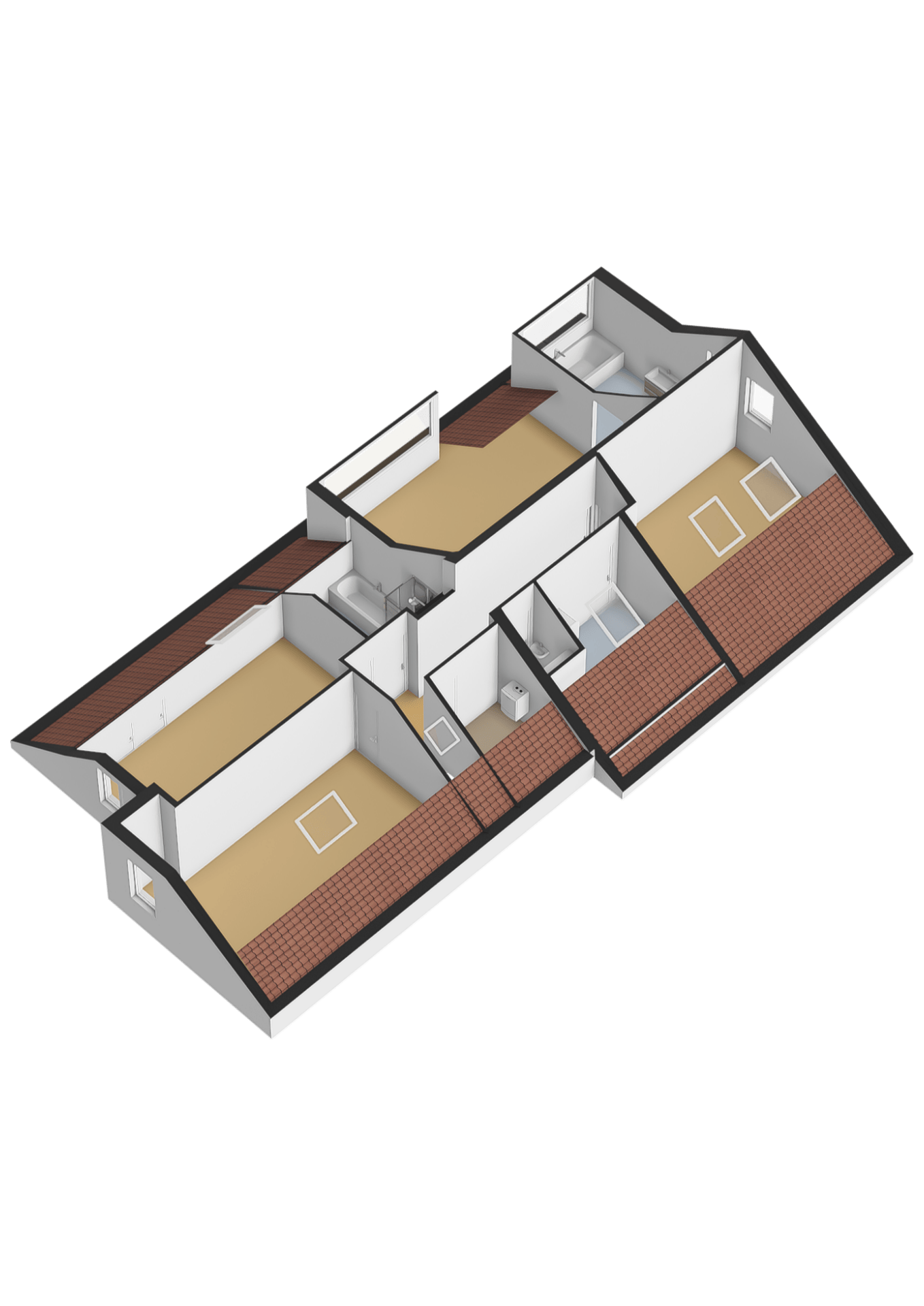 The fourth bedroom is located at the front of the house and has no fewer than three windows, two of which are Velux skylights, ensuring there is always plenty of daylight.
