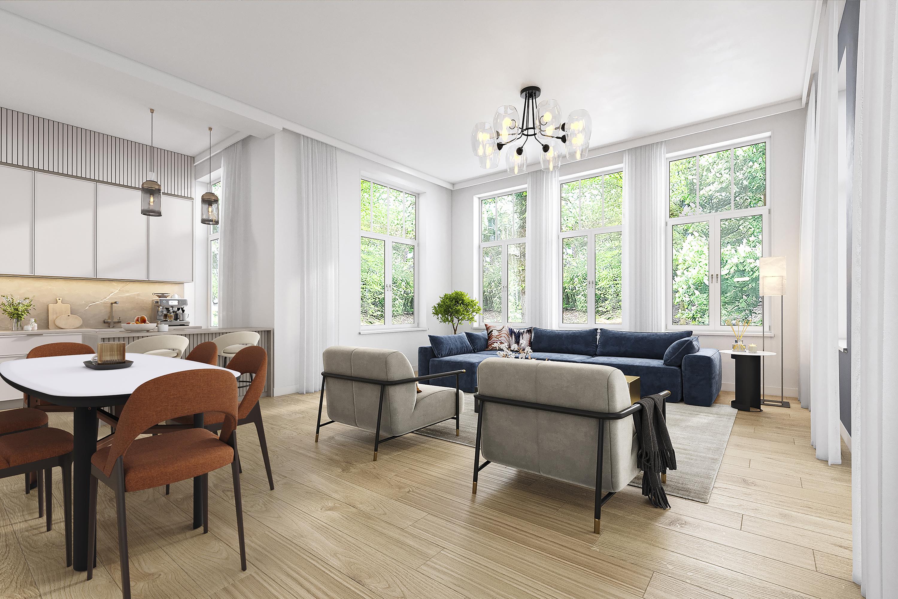 De bosvilla’s ademen nog altijd de sfeer van het verleden, met hoge plafonds, authentieke details en grote raampartijen die je het bos in al zijn pracht doen beleven. Tegelijkertijd zijn de villa’s volledig toekomstbestendig: gasloos, voorzien van vloerverwarming en -koeling via een eigen bodembron, HR++ glas en optimale isolatie. Het resultaat? Een energielabel A++ en lage energielasten én met het comfort van een hypermoderne verwarming.