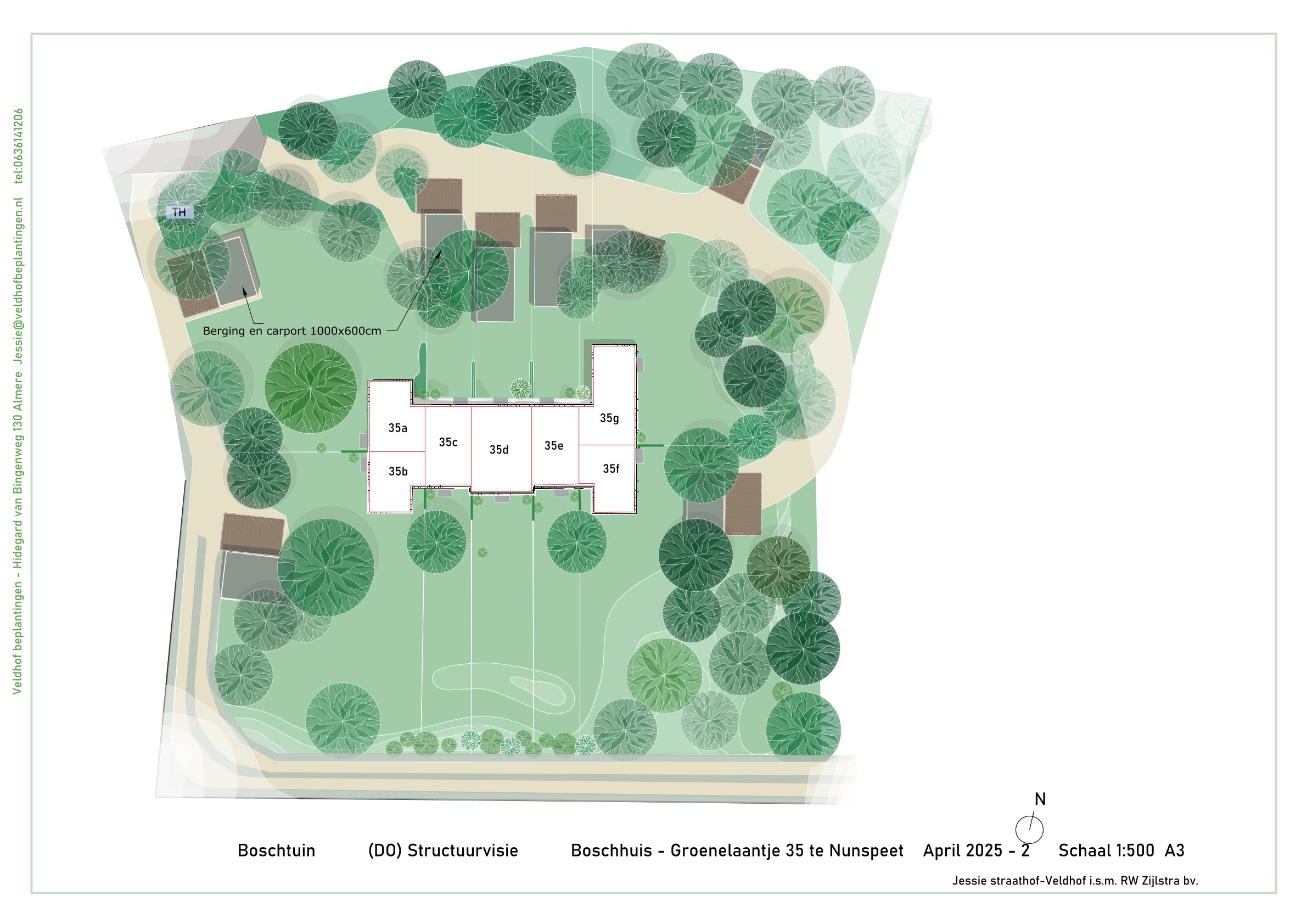 - Oriëntatie: op het zuidwesten, met optimale zon inval en uitzicht op het bos. De tuin heeft ieder moment van de dag zon.