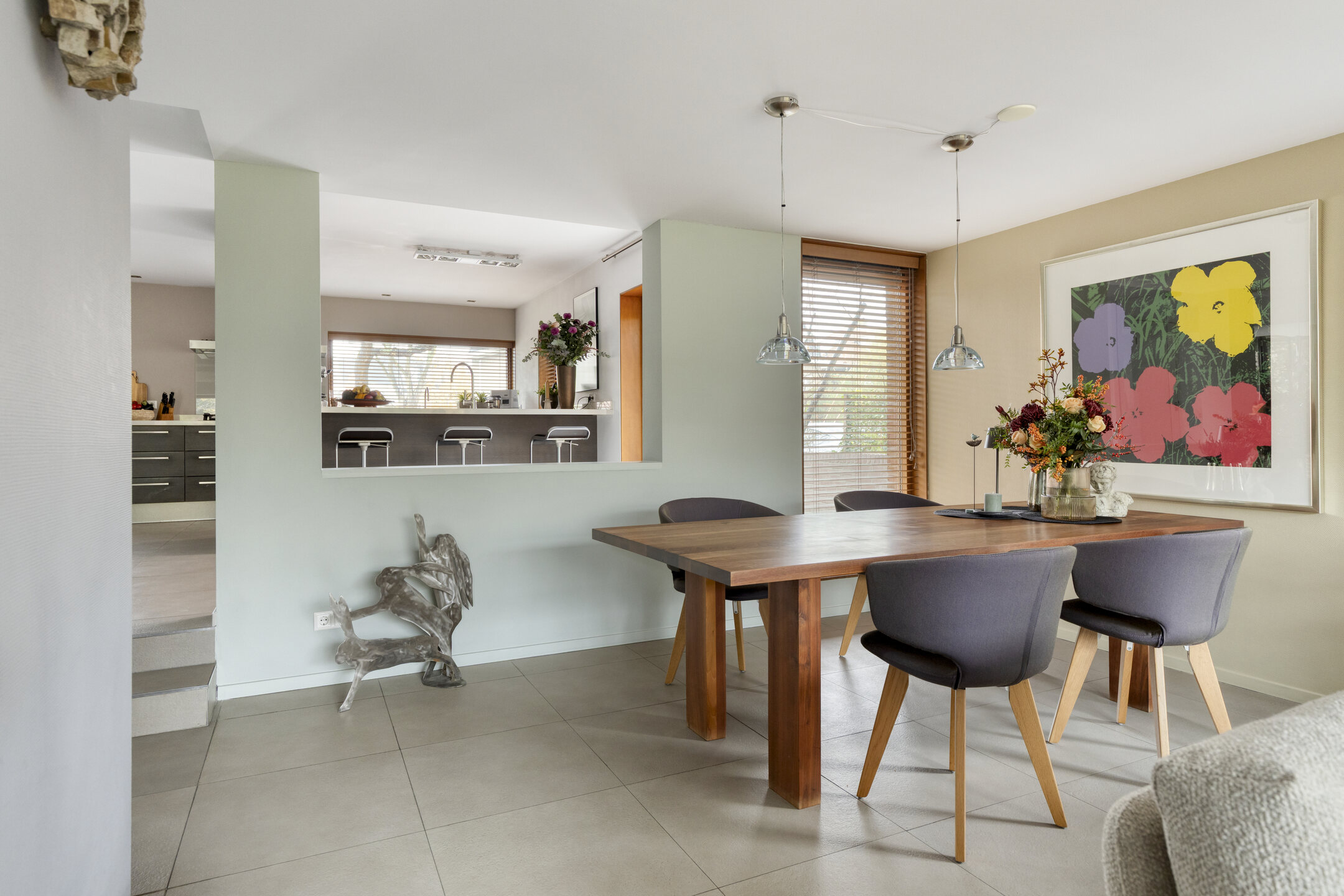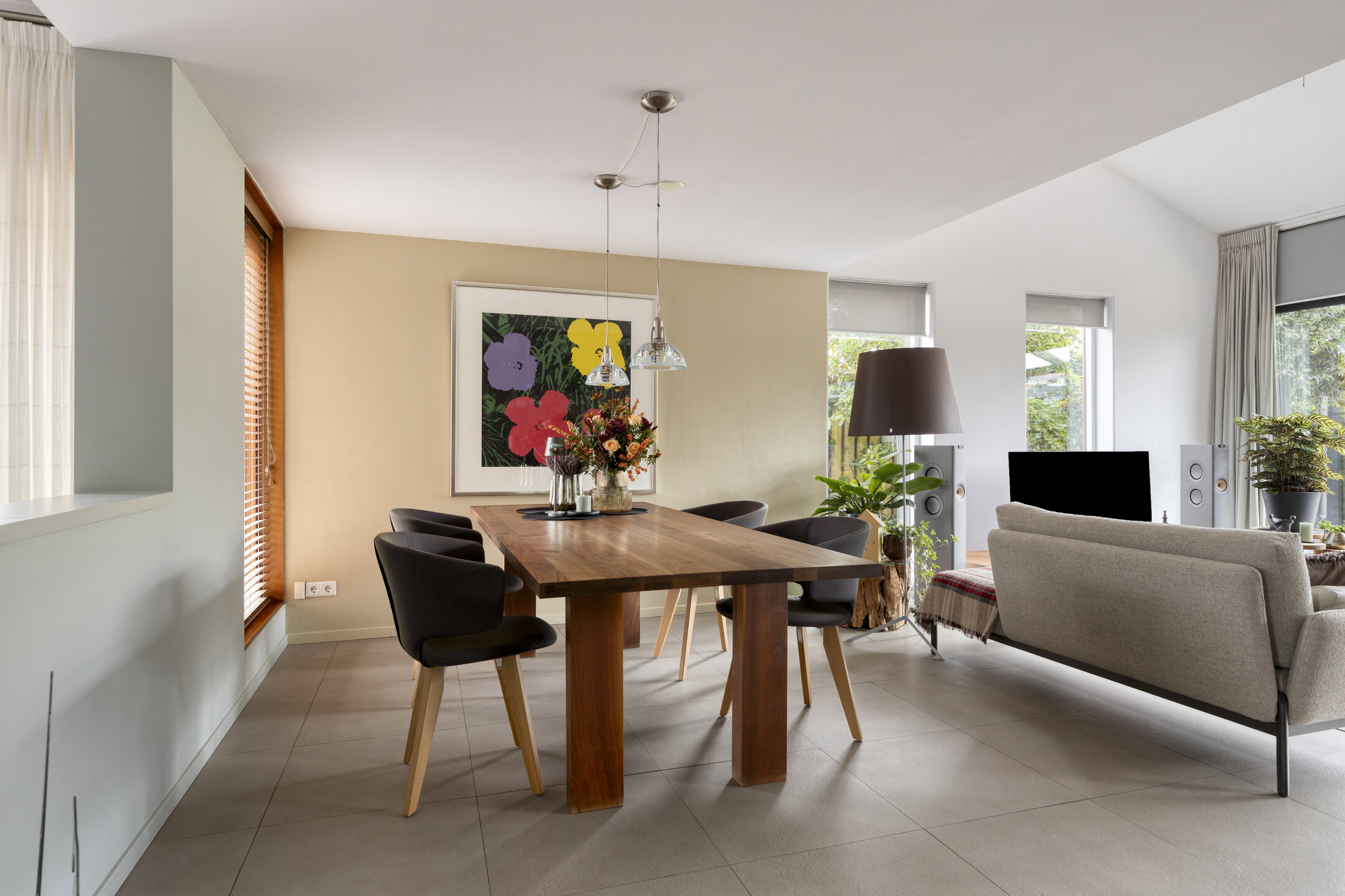 This well-maintained detached house, built in 1969, is located at Rhijngeesterstraatweg 199 and sits on a spacious plot with a deep, green back garden. The property underwent a major architectural renovation in 2006.