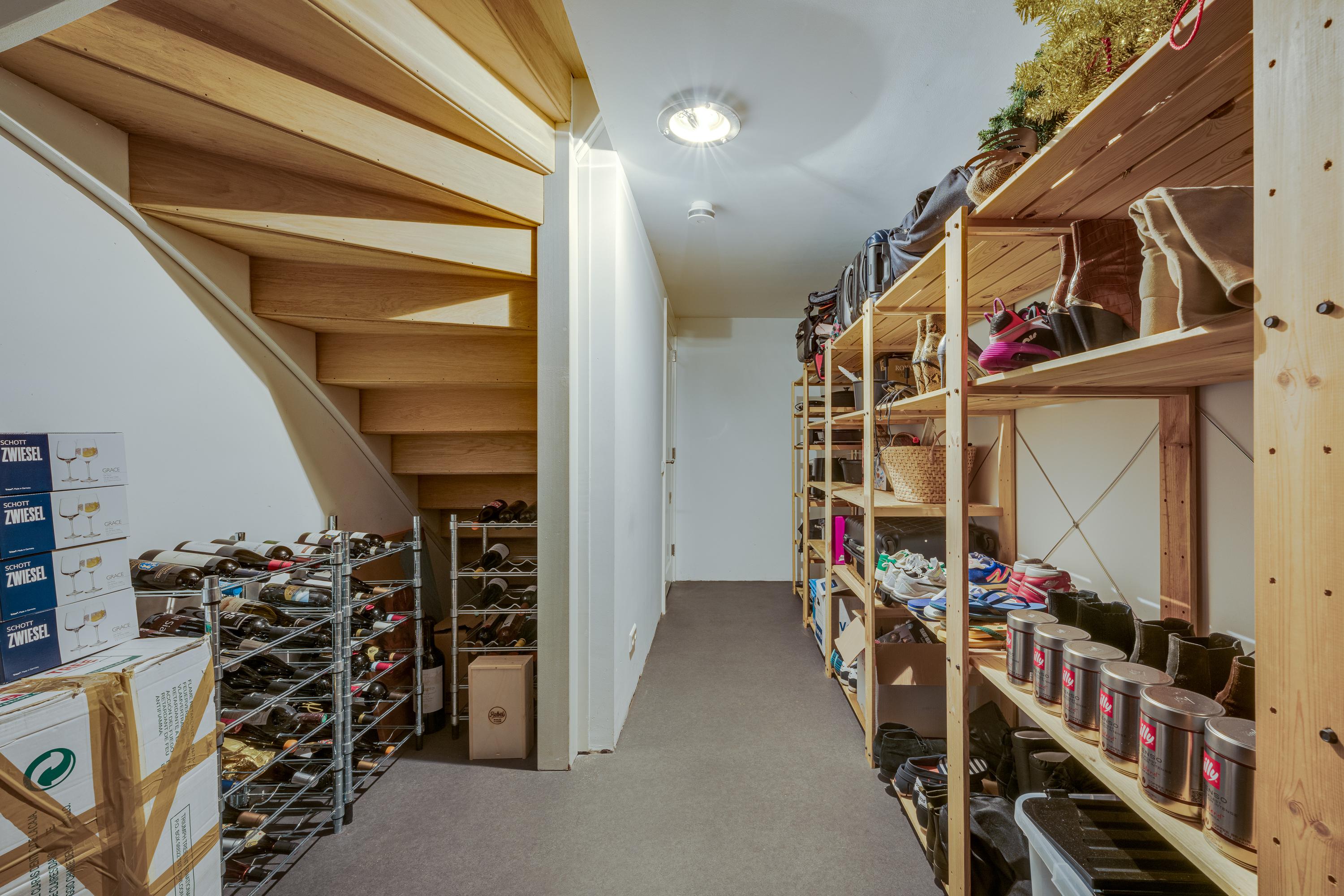 Upstairs, four bedrooms, including a master suite with air conditioning, dressing room, and luxurious bath, extend an invitation to calm and comfort. Both bathrooms and the hallway provide underfloor heating, and amenities such as a technical room and dedicated laundry suite meet practical needs. In the cellar, a secure storage area doubles as space for wine and seasonal belongings.