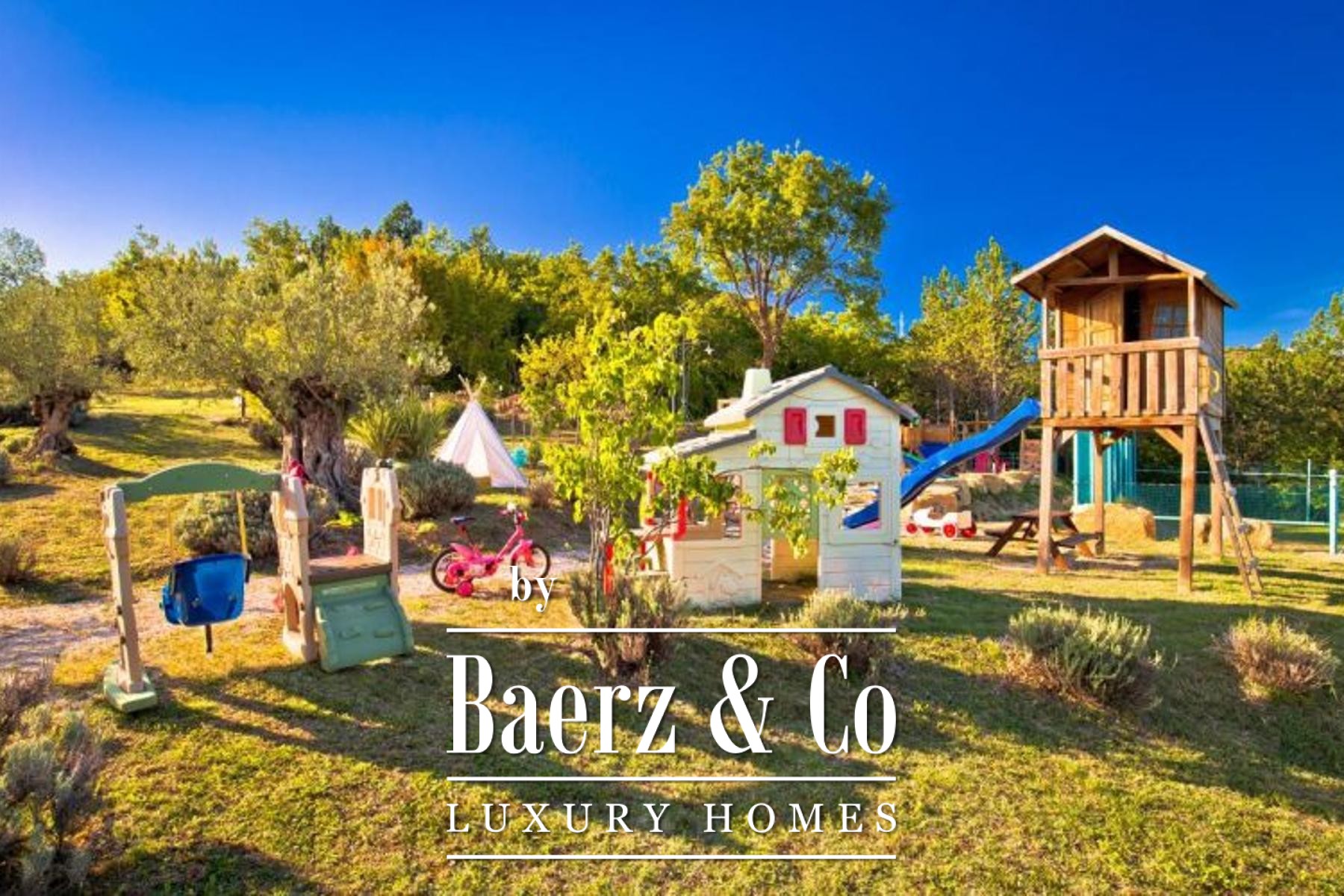 The two broad terraces orient the interiors toward ever-changing panoramas, while thoughtfully planned outdoor zones such as a children’s playground suggest flexibility for family life. Complete ownership of the surrounding land allows unmatched potential for future growth, whether as a private estate or as a venue for creating a boutique hotel or hospitality enclave in true Istrian style.