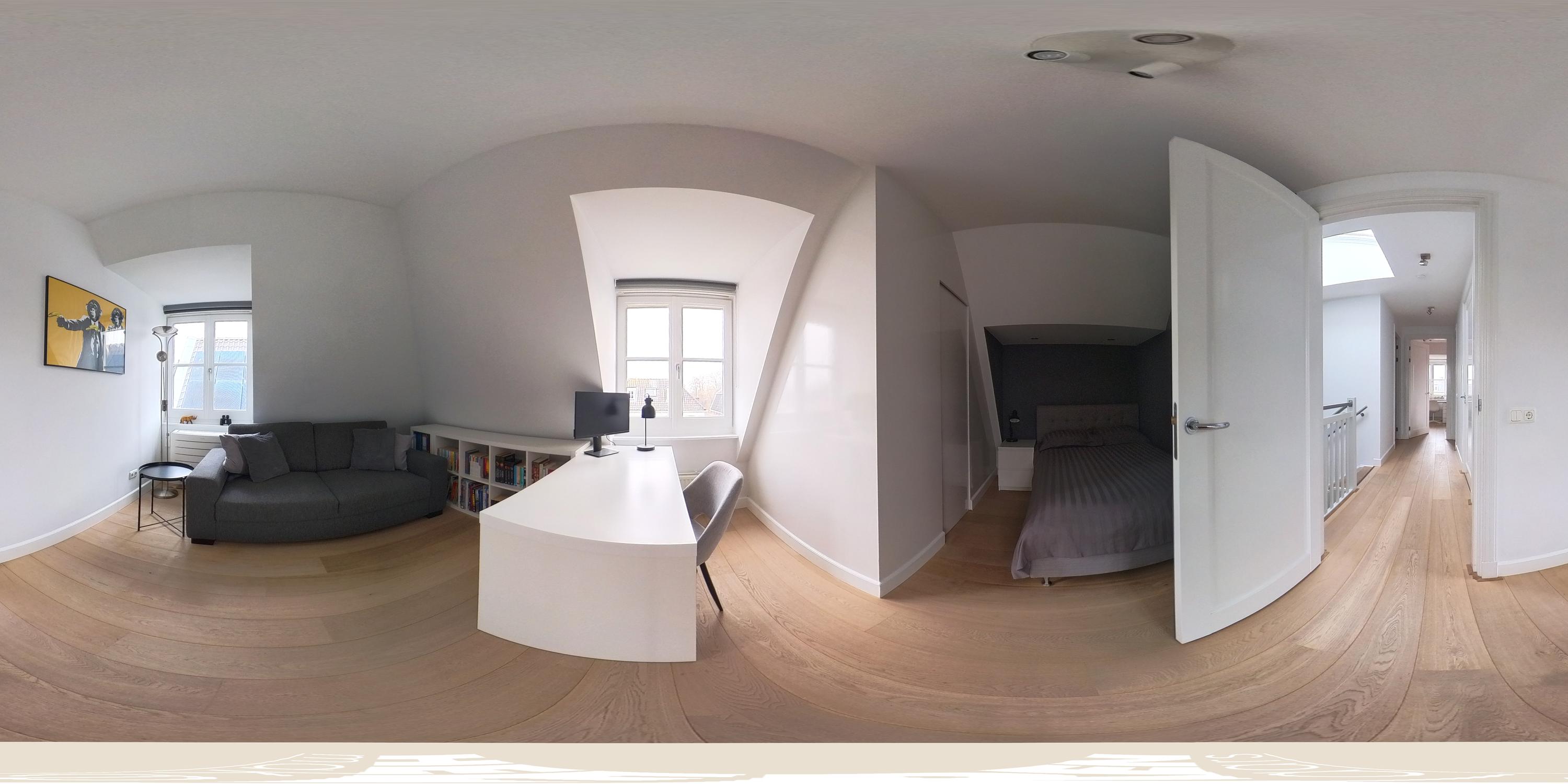 The first floor is reached via the central staircase with overhead light. The spacious landing benefits from ample daylight thanks to the skylight on the second floor. This level accommodates two generously sized bedrooms and an additional room that is ideally suited as a home office or study.