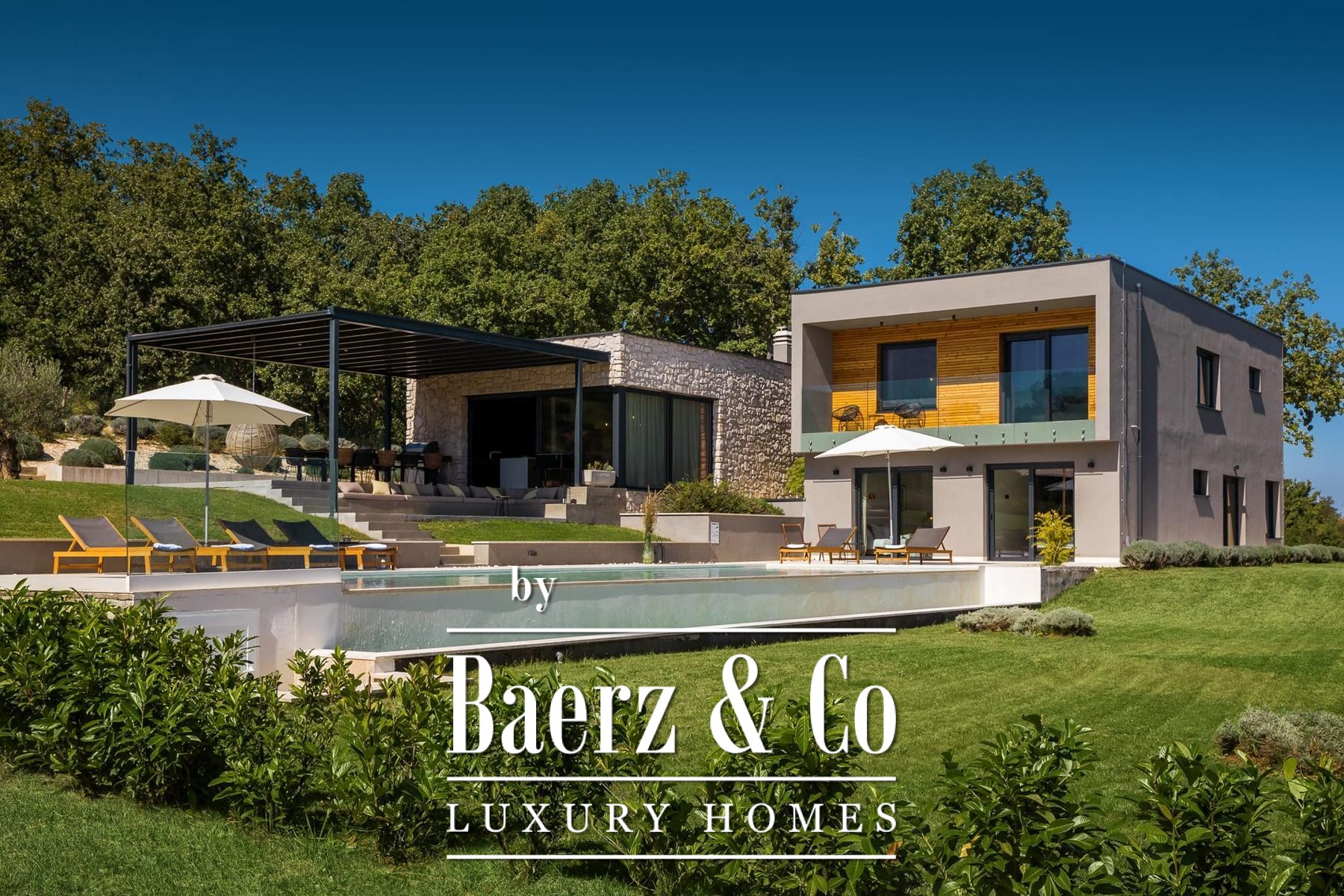 dining area and manicured gardenLarge glass surfaces allow for plenty of natural light and unobstructed views of the surrounding nature, creating a perfect connection with the outdoors. The entire villa exudes sophistication, and the attention to detail and selection of top-quality materials guarantee durability and a high level of comfort.The villa is fully equipped and ready to move in or continue a successful tourism business. Thanks to its peaceful location, spacious plot and high standards of construction, Villa 1 represents a rare opportunity on the market - a combination of luxurious living and a secure investment in one of the most sought-after regions in Istria.The villa has a notable success and numerous awards behind it - an ecological certificate, excellent professional ratings and competitiveness at the European level.For more information or to arrange a viewing, we are at your disposal.