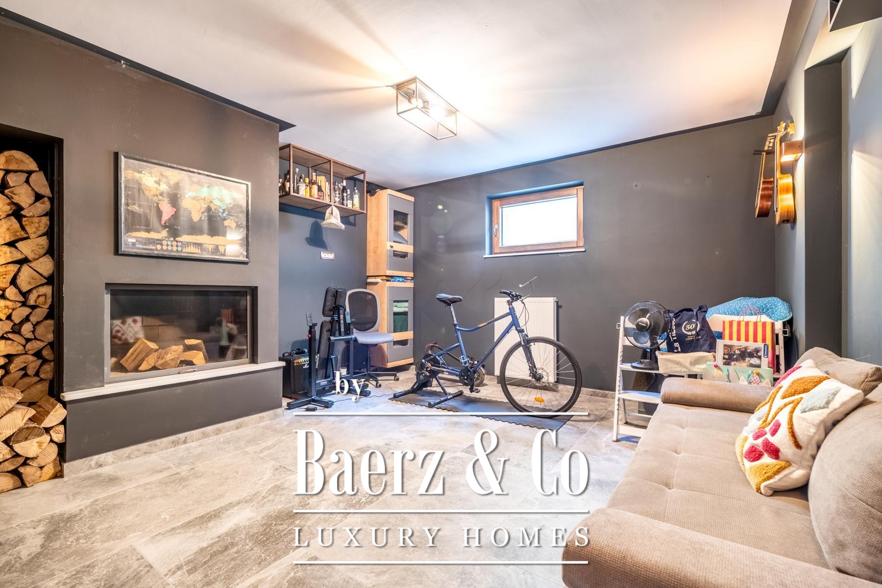 The ground floor opens with an entrance hall, blending seamlessly into a living area bathed in natural light, which transitions elegantly to a 14 m² open terrace and 58 m² private garden. The kitchen and dining area form a gentle social hub, while upstairs provides three bedrooms—one adaptable as an office—and polished bathrooms. The basement offers a discreet storage room, an additional bathroom, and two further bedrooms, allowing privacy for guests or family.
