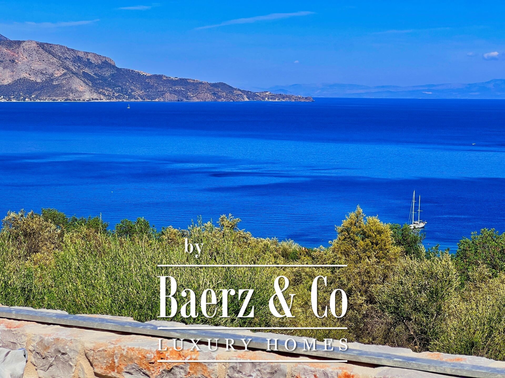 In a location of unique beauty, within a lush olive grove and with unobstructed, magnificent views of the sea and the mountain, a detached house of 235 sq m is available for sale, within a privately owned plot of 4,200 sq m. The house harmoniously combines traditional stone elements with modern lines, while the large internal height further highlights its special, traditional character. It is developed on two levels. On the ground floor, a 70 sq m guest house is provided with a living room, kitchen, bedroom and bathroom, as well as a 20 sq m covered parking
