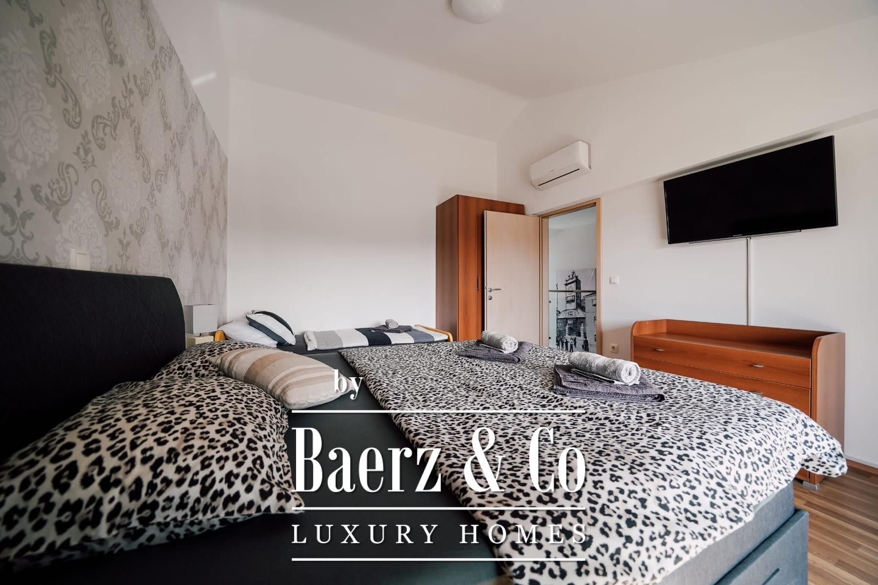 are four bedrooms and a bathroom.In the courtyard decorated in Mediterranean style there is a swimming pool.From the terrace there is a view of the sea and the city of Zadar.The house is fully furnished and equipped.The heating and cooling system is arranged via air conditioning, with the possibility of wood heating.There is preparation and a project for a solar power plant.Proper ownership.More information on request.