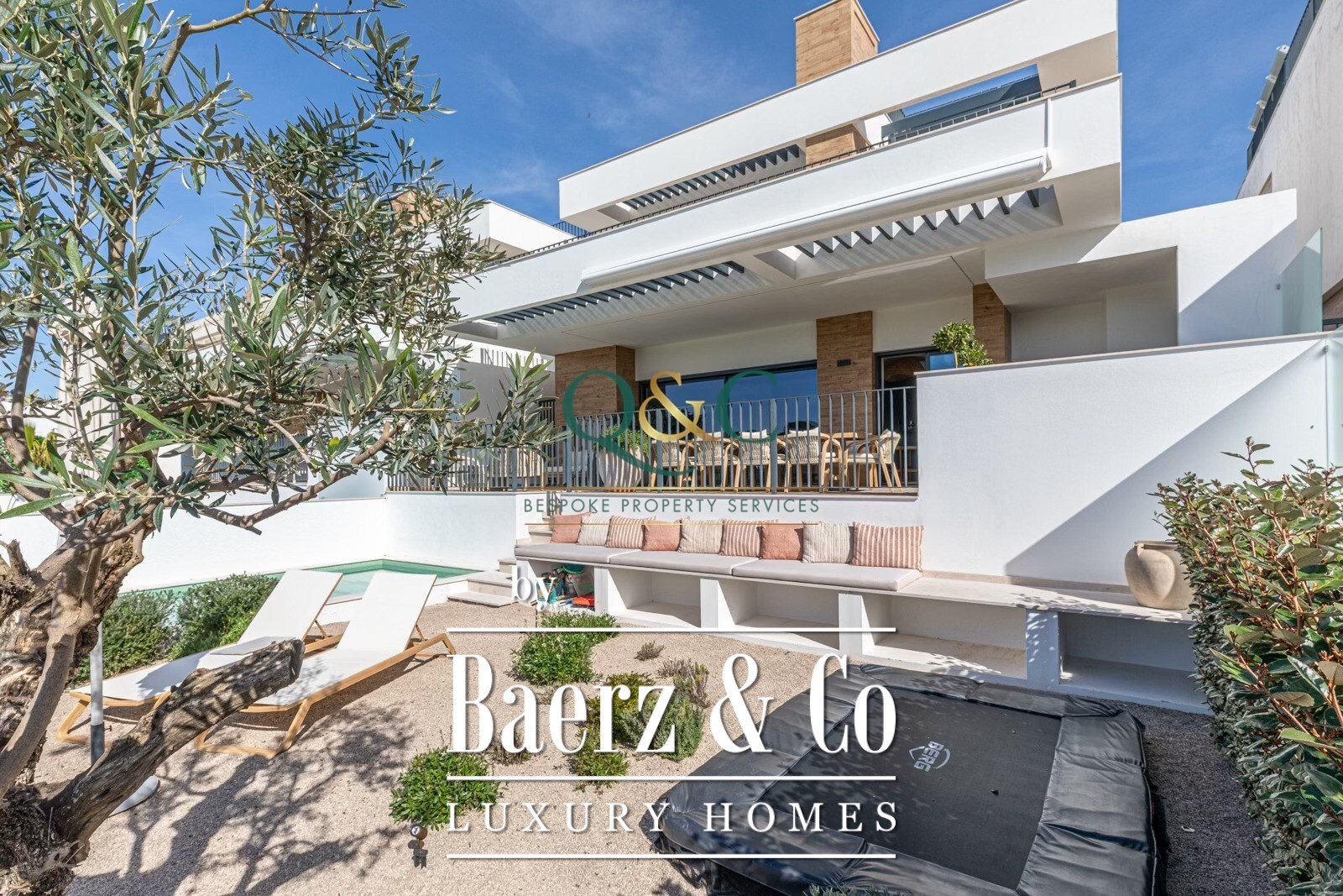 Outdoor living is elevated by a 7 x 3 m saltwater pool, solar cover, heat pump, and barbecue area, set within a terrace shaded by an electric awning. Underfloor heating, air conditioning, solar panels, and centralised electric shutters ensure year-round comfort. Built in 2025, this villa extends over a 333 m² plot and stands within walking distance to Fonte Santa, international schools, renowned golf courses, and the beaches of Trafal, Vilamoura, and Vale do Lobo. The private garden, double glazing, and secure parking promise a refined and effortless lifestyle, making this luxury villa for sale in Quarteira a discreet yet exceptional home.