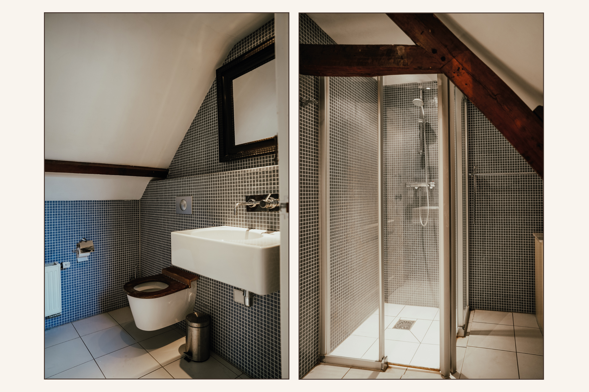 The main house offers a rhythm of gracious spaces: a light-filled living room with open fireplace, a garden-facing dining room, a bespoke oak kitchen anchored by an AGA and stone fireplace, and a study overlooking the village’s historic avenues. Each room reveals thoughtful preservation—tall sash windows, Versailles parquet, and original beams—supported by quiet technological advances including underfloor heating, vacuum-insulated glass, and new solar installations. A fully independent guesthouse, with its own living space and bathroom, provides comfort for visitors or family.