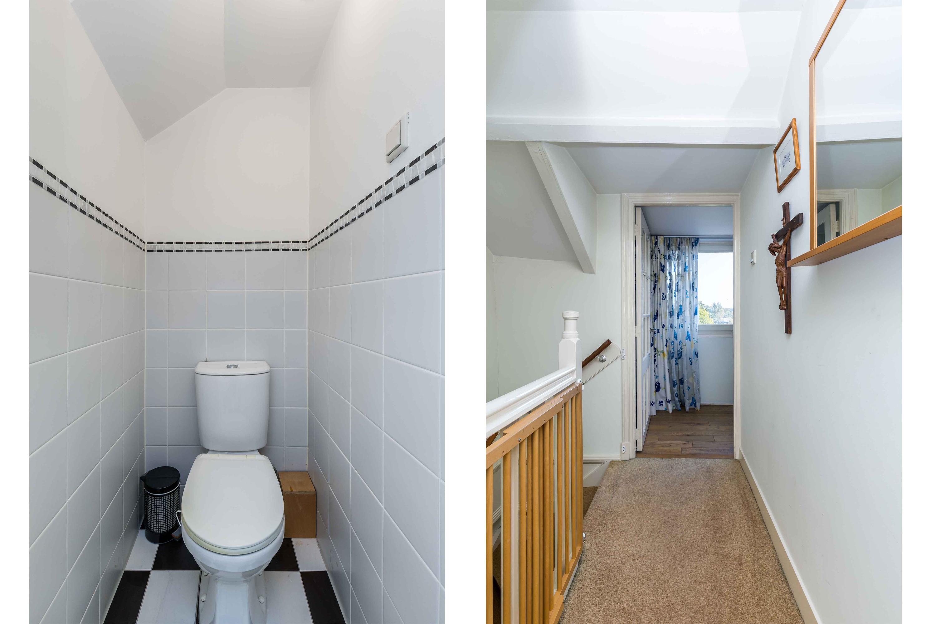 2nd floor: landing with also a separate toilet, bedroom at the rear with dormer window and wardrobe wall where the central heating is also located, bedroom at the front with dormer window, 2nd bathroom with bath with shower, washbasin and space for a washing machine and dryer next to each other.
