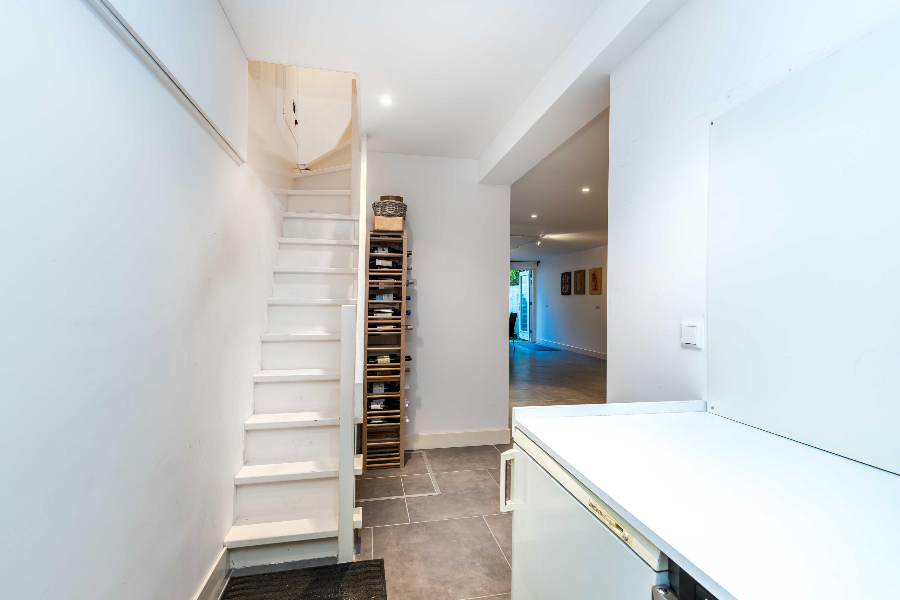 The mansion is surprisingly large and this has been achieved partly by adding a completely new floor with very spacious standing height under the house and a large extension on the ground floor. The entire block of houses consisting of 4 houses was provided with a new foundation more than 10 years ago. 3 of the 4 houses have an identical extension realized at the rear on the ground floor, which makes the appearance homogeneous and very beneficial. As if it has always been like this from the construction.