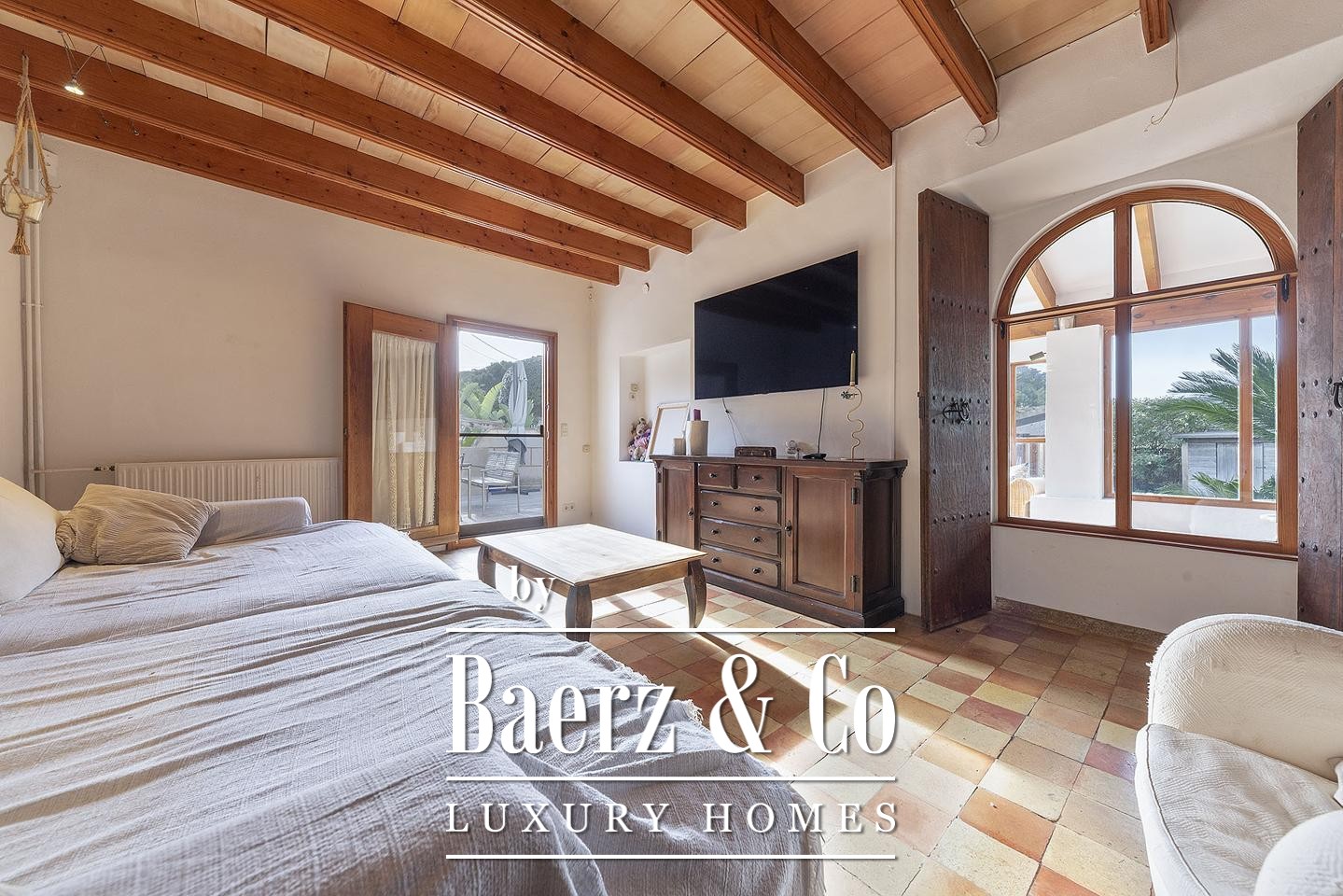 Country House S'Arracó anchors itself in the foothills of the Tramuntana Mountains, presenting 280m² of refined living space amid a 1,120m² plot. This country house S'Arracó invites a quiet Mediterranean rhythm just moments from the vibrant heart of the village and the nearby coast of Sant Elm and Puerto Andratx.