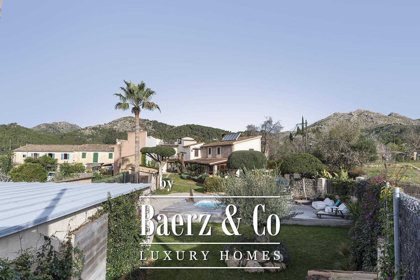 The residence has been thoughtfully renovated, centering daily life around luminous interiors, a fireplace-warmed living area, and a spacious Mediterranean kitchen. The floorplan extends across two levels, offering four bedrooms, three bathrooms, and a guest toilet, with multiple terraces overlooking a newly designed garden and pool. Outside, the property reveals layered privacy and panoramic views across S'Arracó and the Tramuntana slopes.