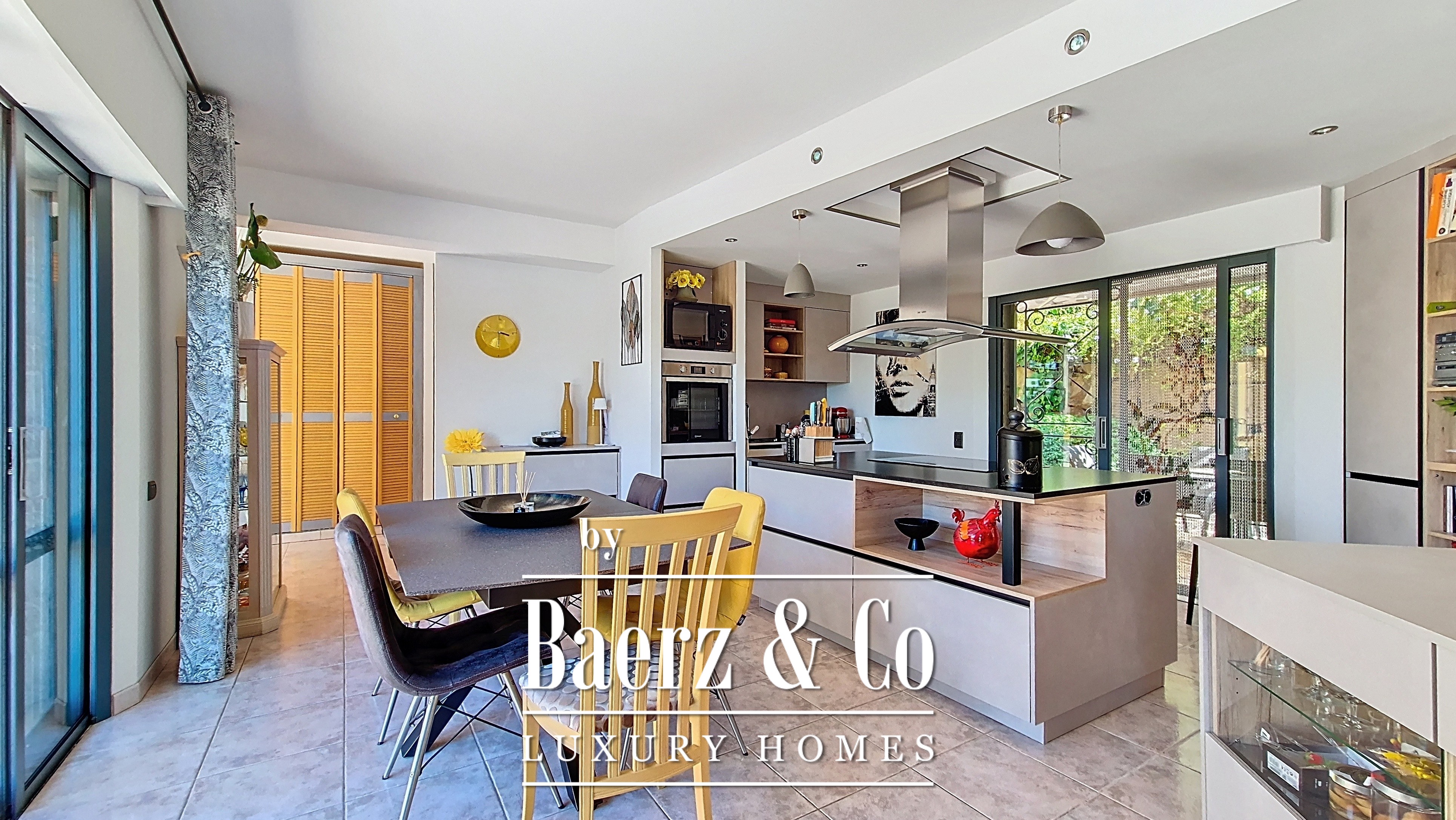 A double reception room anchors the main floor—voluminous, suffused with natural light, and centred around a fireplace. The open-plan kitchen, recently renovated, adjoins this social core, while three bedrooms offer privacy and comfort, led by a master suite that embodies understated elegance. Each room opens to broad terraces, extending the living experience toward landscaped grounds of 1,500 m².