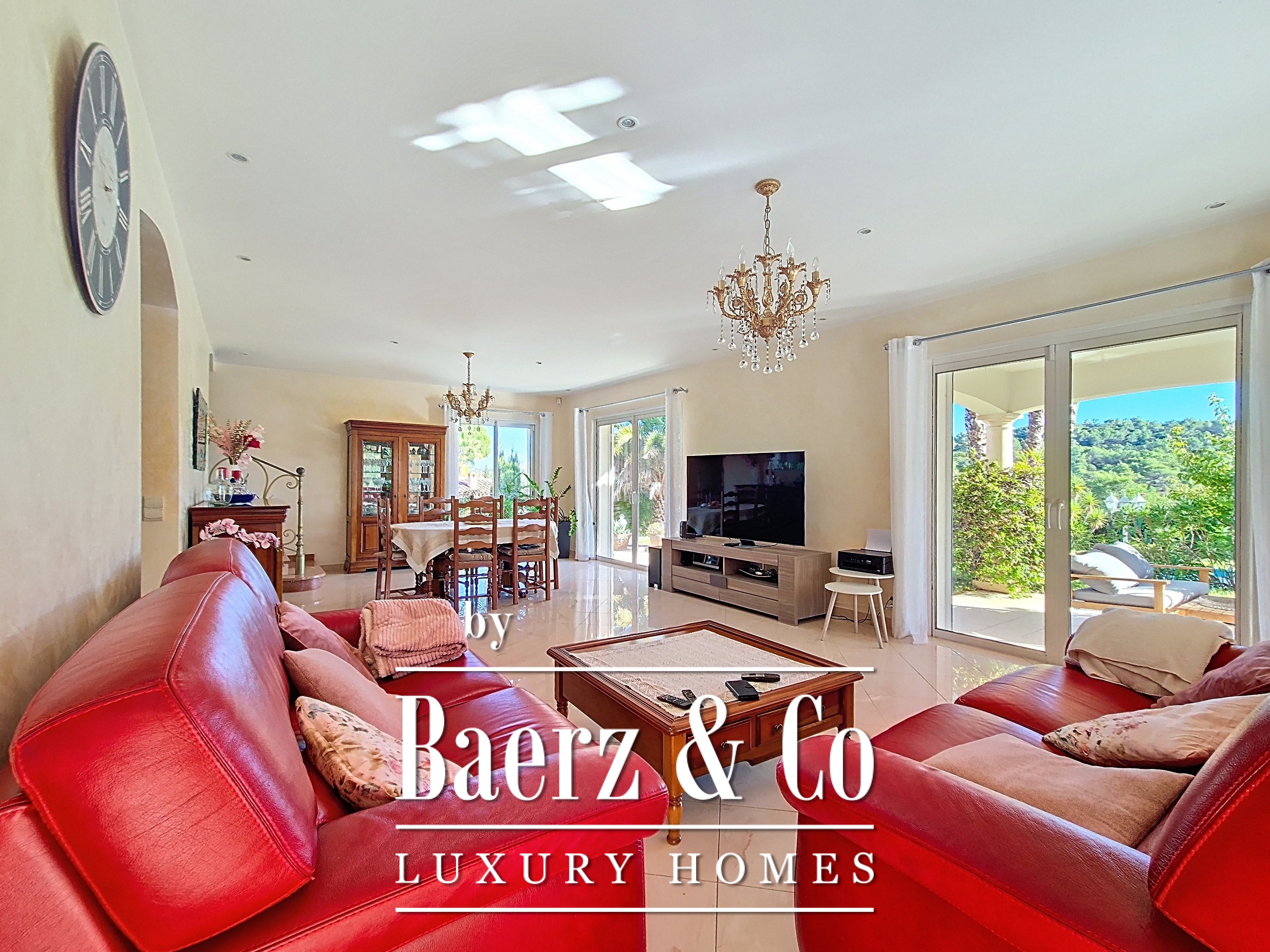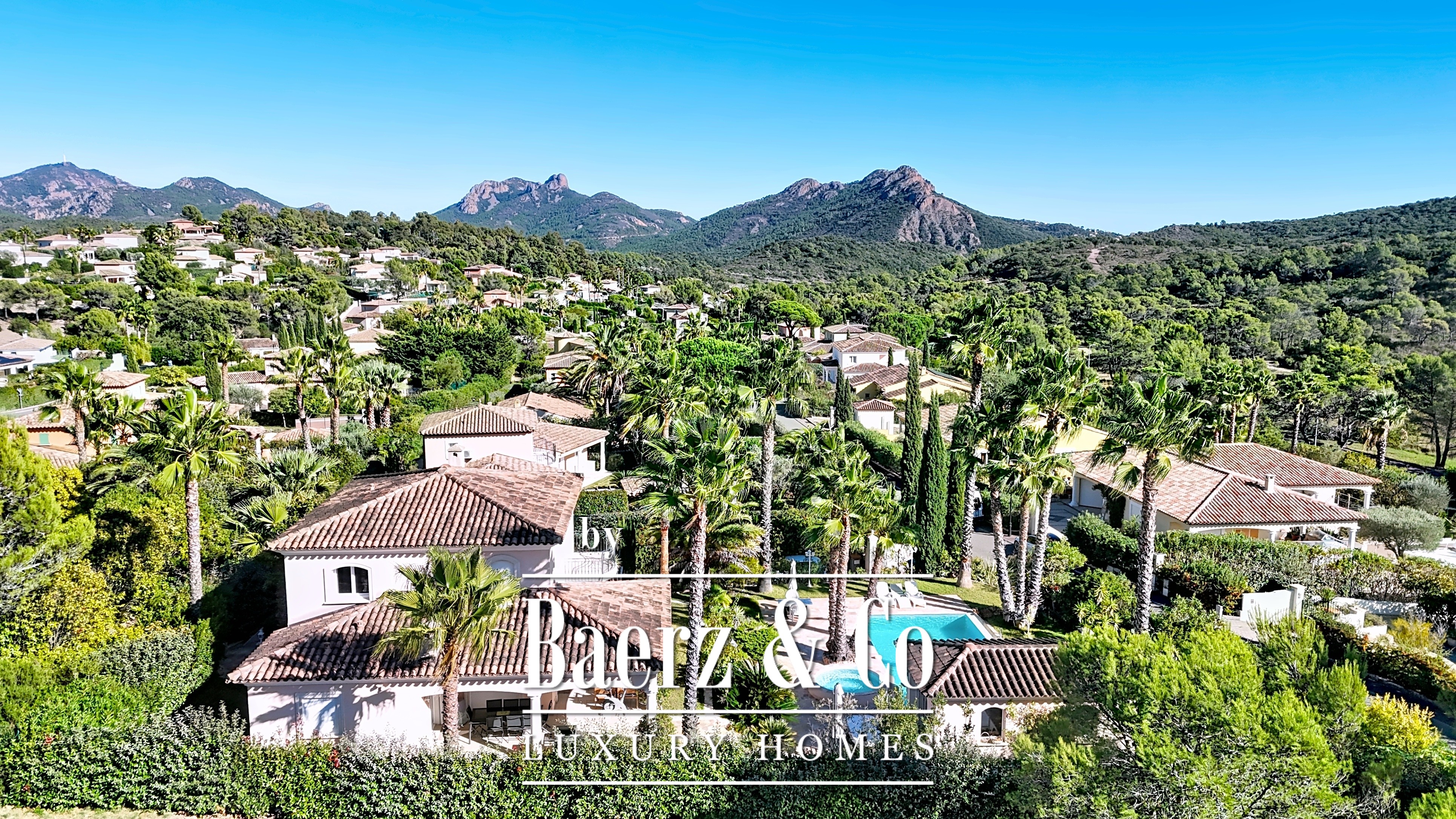 Property Saint Raphael with panoramic hill views invites a rare convergence of elegance and tranquility. The living area of 204 m² is defined by generous volumes and natural light, offering refined living spaces that open seamlessly to expansive terraces. The master suite commands wide landscape views, imparting a sense of calm and privacy.