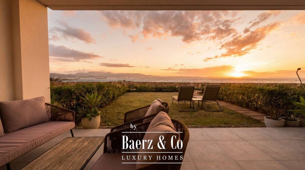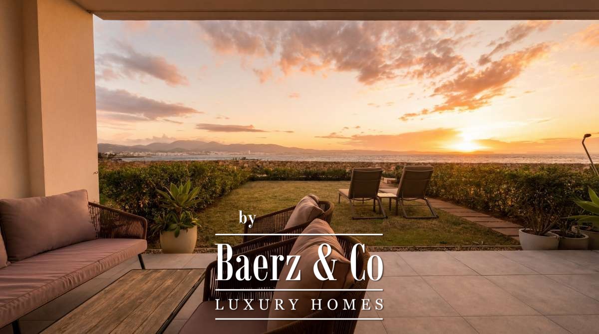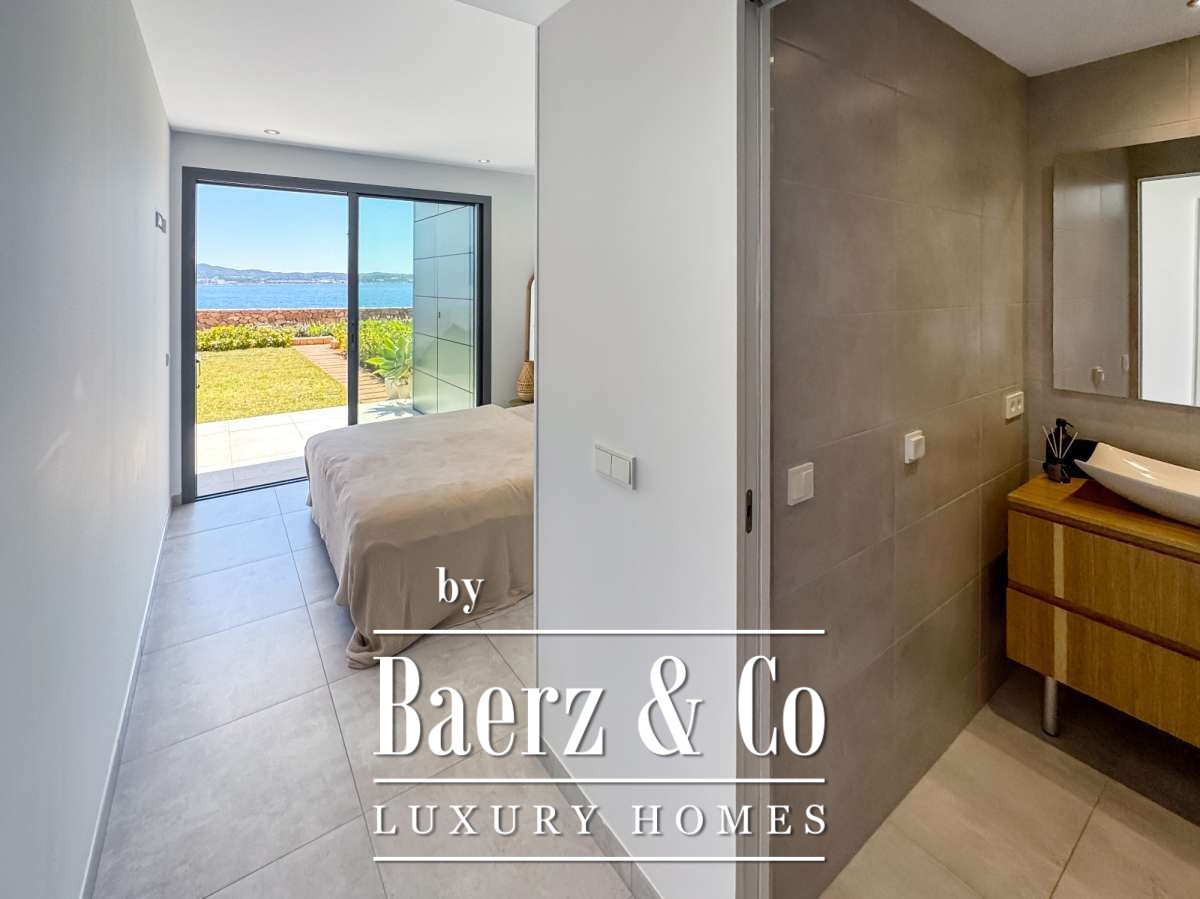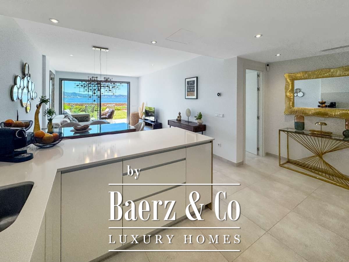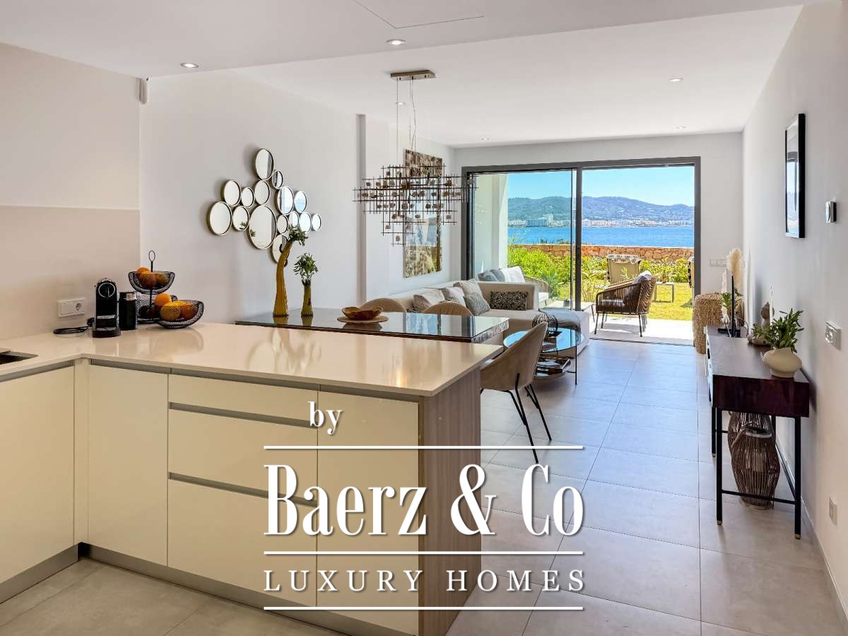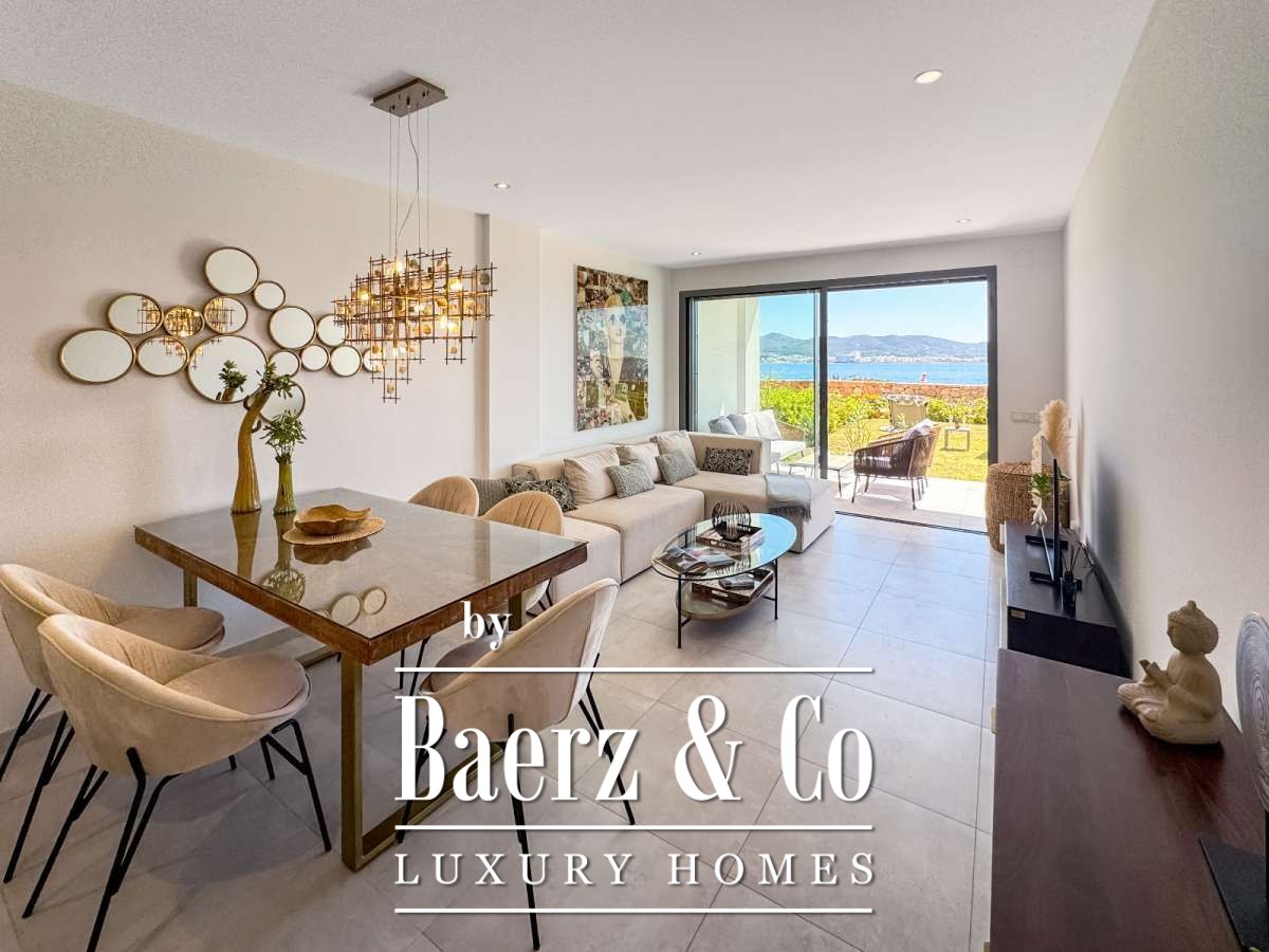 Apartment San Antonio first line sea views defines a rare harmony of Mediterranean immediacy and refined privacy. Steps from the crystalline waters of Cala Gració, this 81 m² apartment offers a seamless connection to the shoreline, balancing serene retreat and privileged access. Sea-facing terraces and a private garden frame uninterrupted sunsets, inviting a daily rhythm shaped by the play of light and open sky.