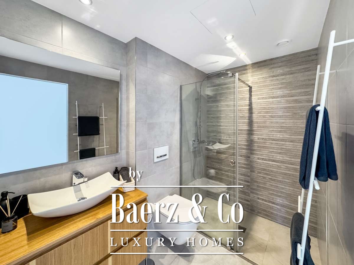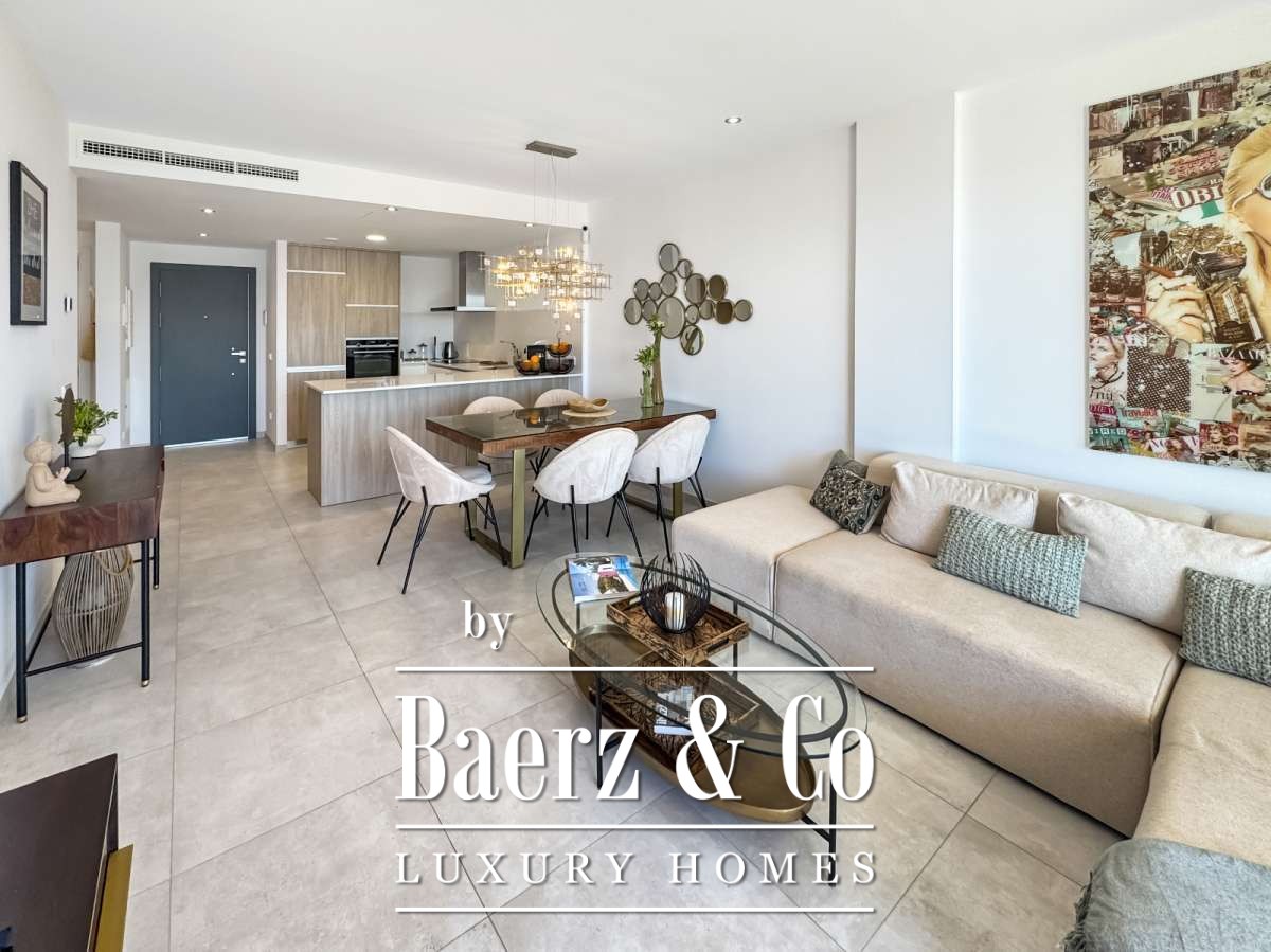 The main living area, open-plan and thoughtfully proportioned, unites kitchen, dining, and lounge with fluid transitions onto the terrace. Two bedrooms and two bathrooms provide calm, self-contained space for residents and guests alike. Furnished with contemporary pieces and finished to a modern standard, every element is considered and move-in ready.