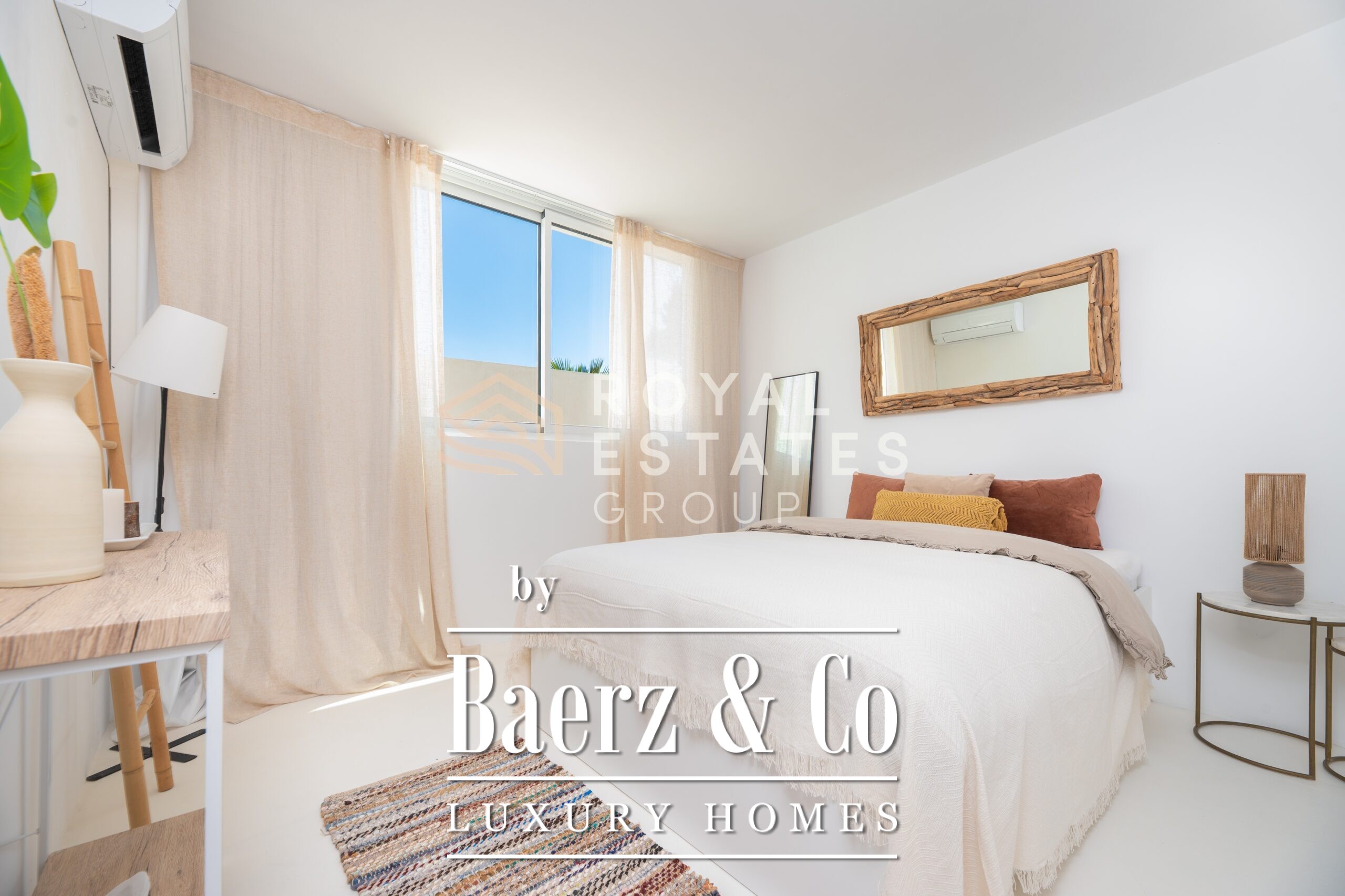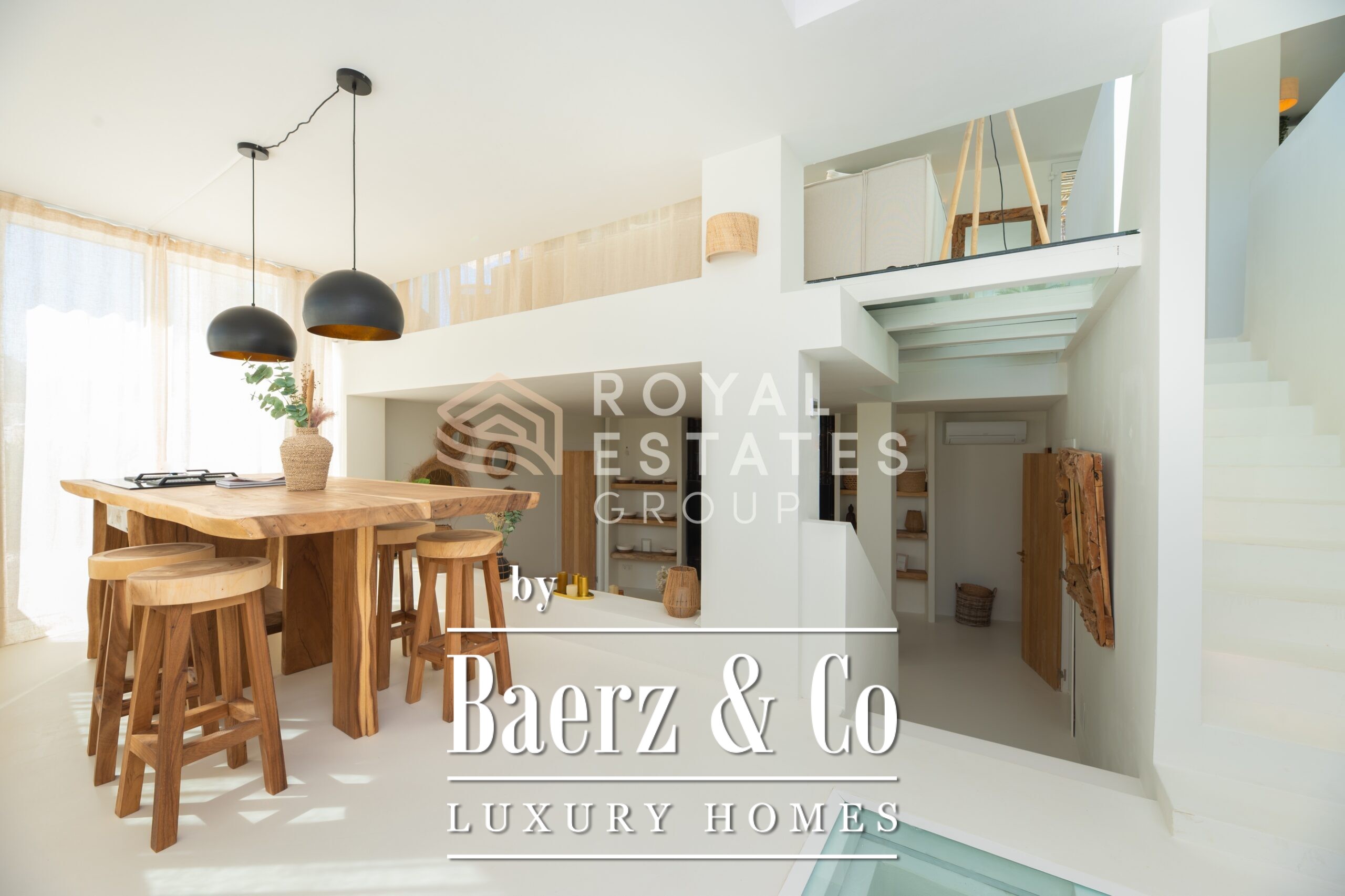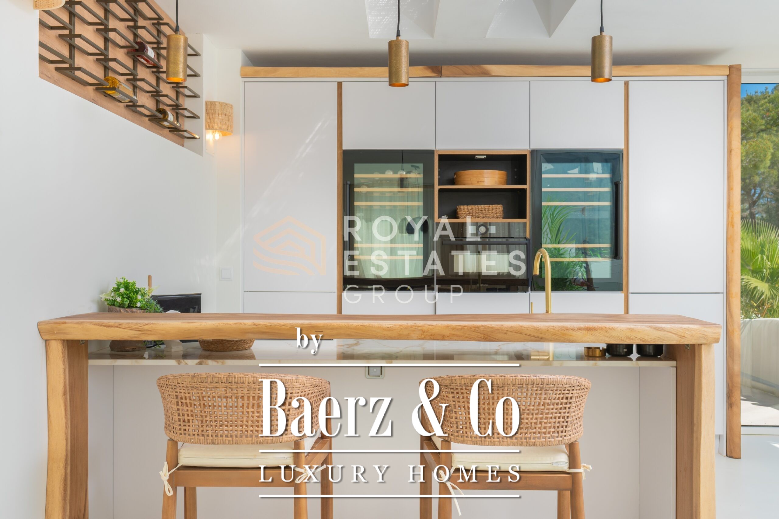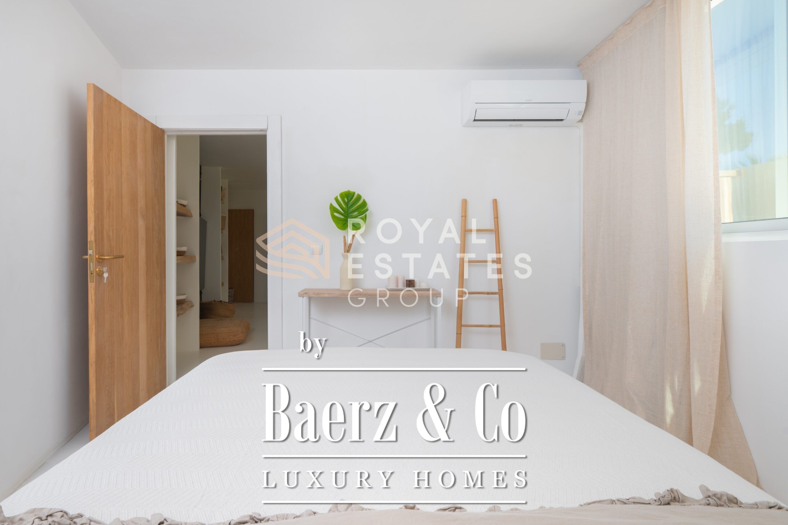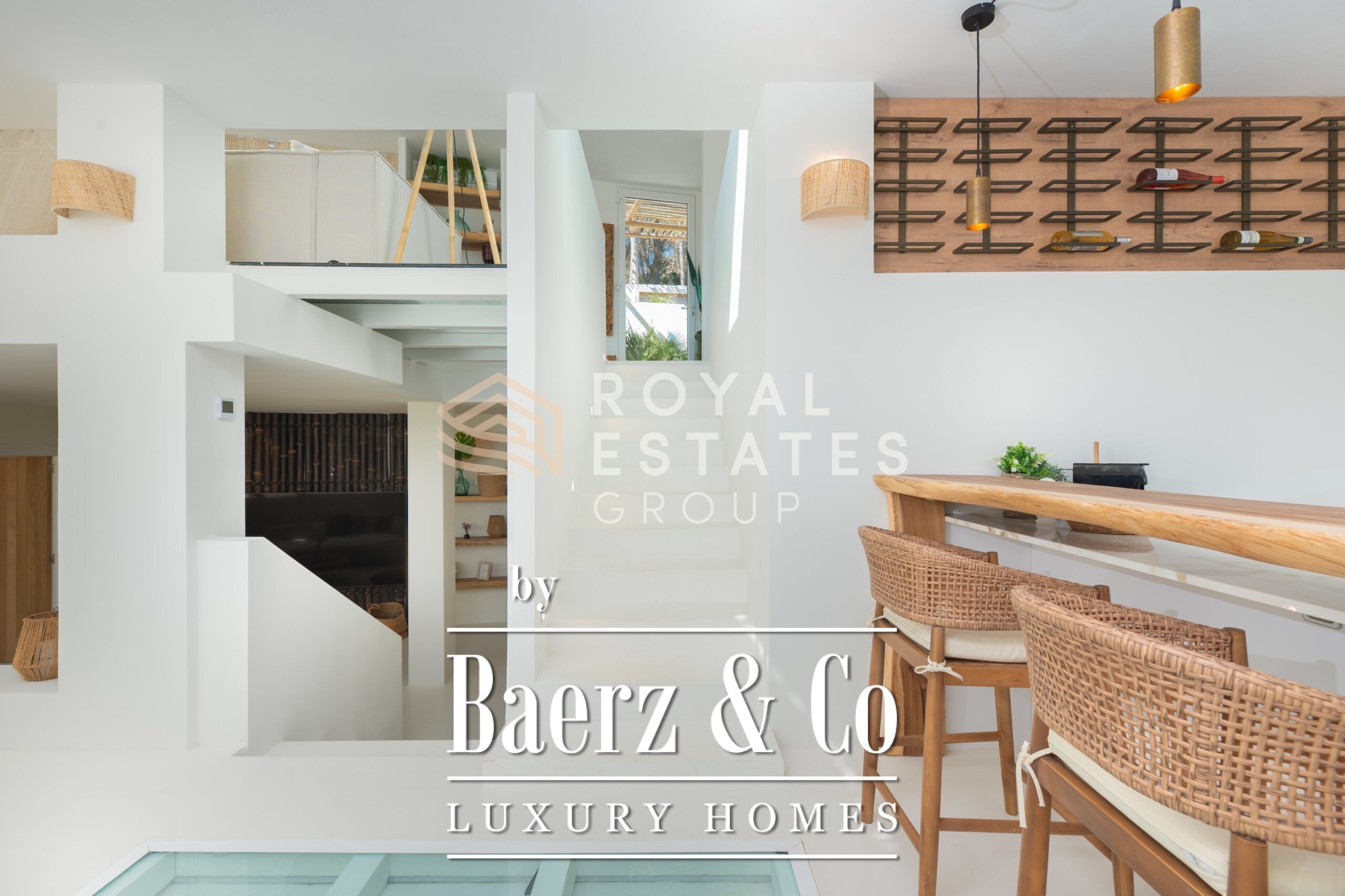 Villa San Jose with panoramic views sits quietly amid the green hills of western Ibiza, offering a rare sense of tranquillity and space. With a generous plot of 19,600 m² and a living area of 330 m², the villa ensures total privacy, surrounded by Mediterranean nature and rolling hills. Well-placed vantage points across the grounds showcase sweeping views over the landscape, with subtle glimpses of the distant sea.