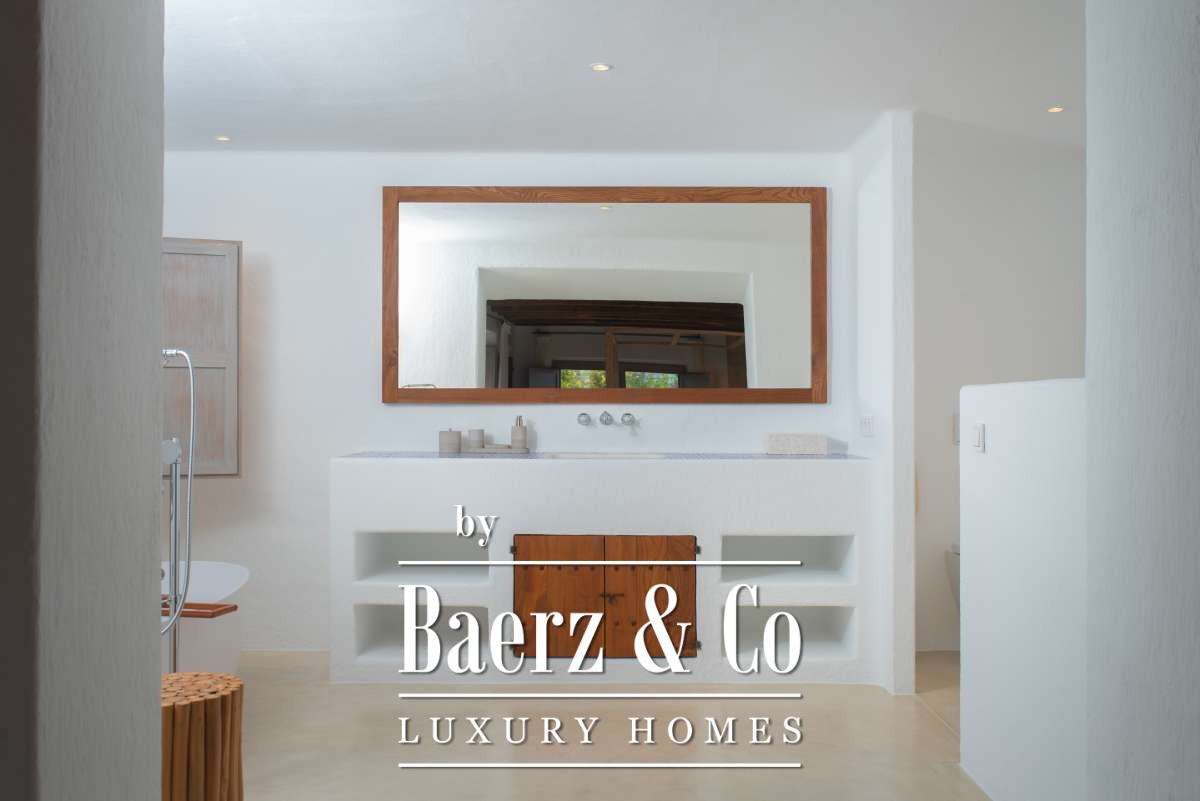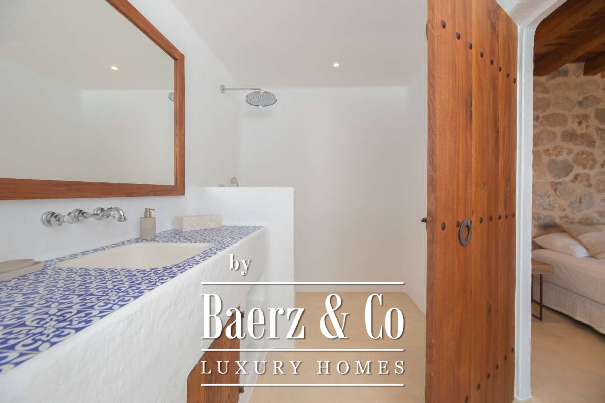 Originally an authentic finca extended in the 1940s, the house now offers 506 m² of living space divided between 361.7 m² on the ground floor and 144.64 m² above. Four bedrooms and five bathrooms have been thoughtfully renovated, each detail respecting the cubic architecture and rustic simplicity. Living areas blend seamlessly with garden terraces, encouraging an unhurried Mediterranean rhythm.