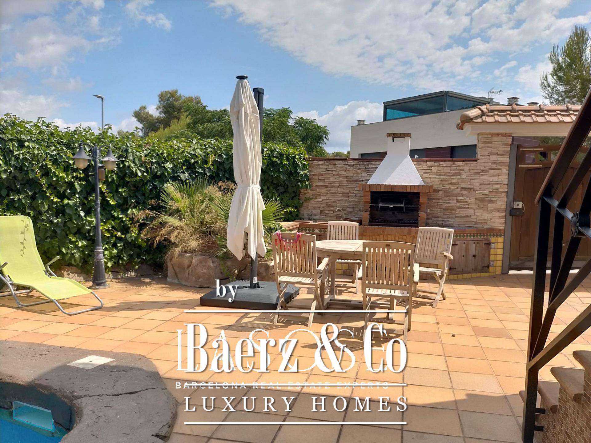 LASOSE proudly presents this remarkable 5-bedroom, 3-bathroom villa located in the prestigious residential area of Els Cards, one of the most desirable districts between Sitges and Sant Pere de Ribes. Set on an elevated position, the property enjoys panoramic views over the surrounding landscape, offering privacy, natural light and a serene atmosphere just minutes from the coast.. . This residence beautifully blends traditional Spanish character with contemporary elegance. Recently renovated interiors showcase modern finishes while preserving architectural charm, including arches, warm tones and natural textures. The open-plan layout creates a seamless flow between the kitchen, dining area and living room, all bathed in sunlight from windows on two sides. A stylish fireplace adds a cozy focal point, perfect for gatherings throughout the year.. . The fully renovated kitchen is both sophisticated and functional. It features a central island topped with striking Brazilian granite, generous storage and direct connection to the dining space. The abundance of natural light enhances the sense of space, and the layout is ideal for families and for entertaining.. . The villa offers five bright bedrooms, including a spacious master suite designed for total comfort and privacy. The en-suite bathroom features a bathtub, walk-in shower, double sink, bidet and the rare luxury of a private sauna—perfect for relaxation and wellbeing.. . Outdoor living is one of the property’s greatest highlights. Step out to a beautifully maintained garden with real grass, mature trees—including