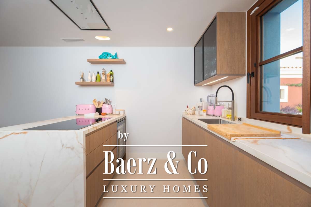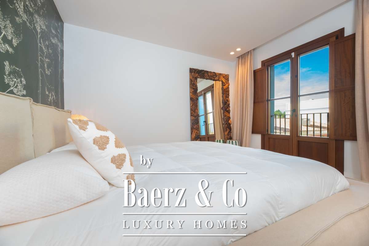 Attention to materials and craftsmanship is felt in every detail, from flooring to lighting. Outdoors, the property unfolds onto a spacious terrace and a spectacular rooftop, crowned by a private swimming pool that captures panoramic views over Santa Gertrudis. The setting is enhanced by a tranquil garden, and sustainable installations such as a heat pump, ensuring a timeless mood and efficiency.