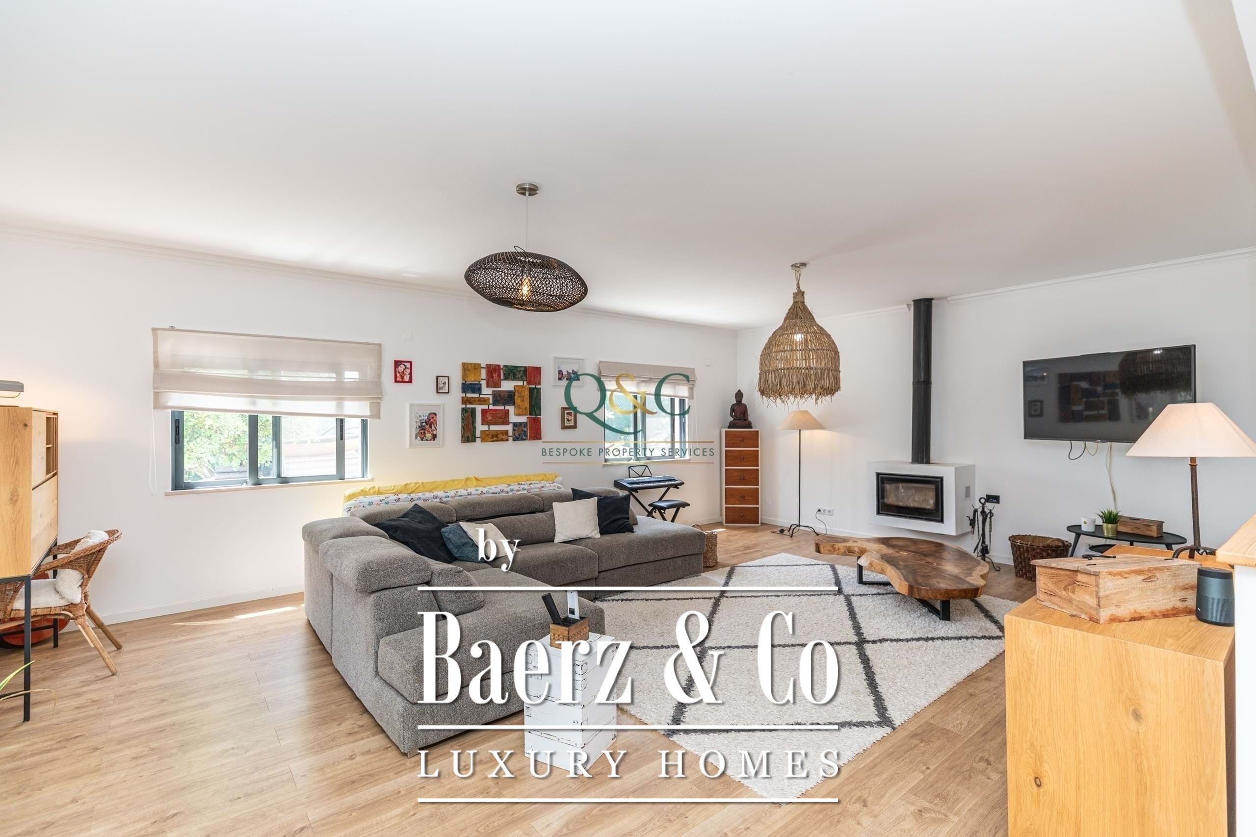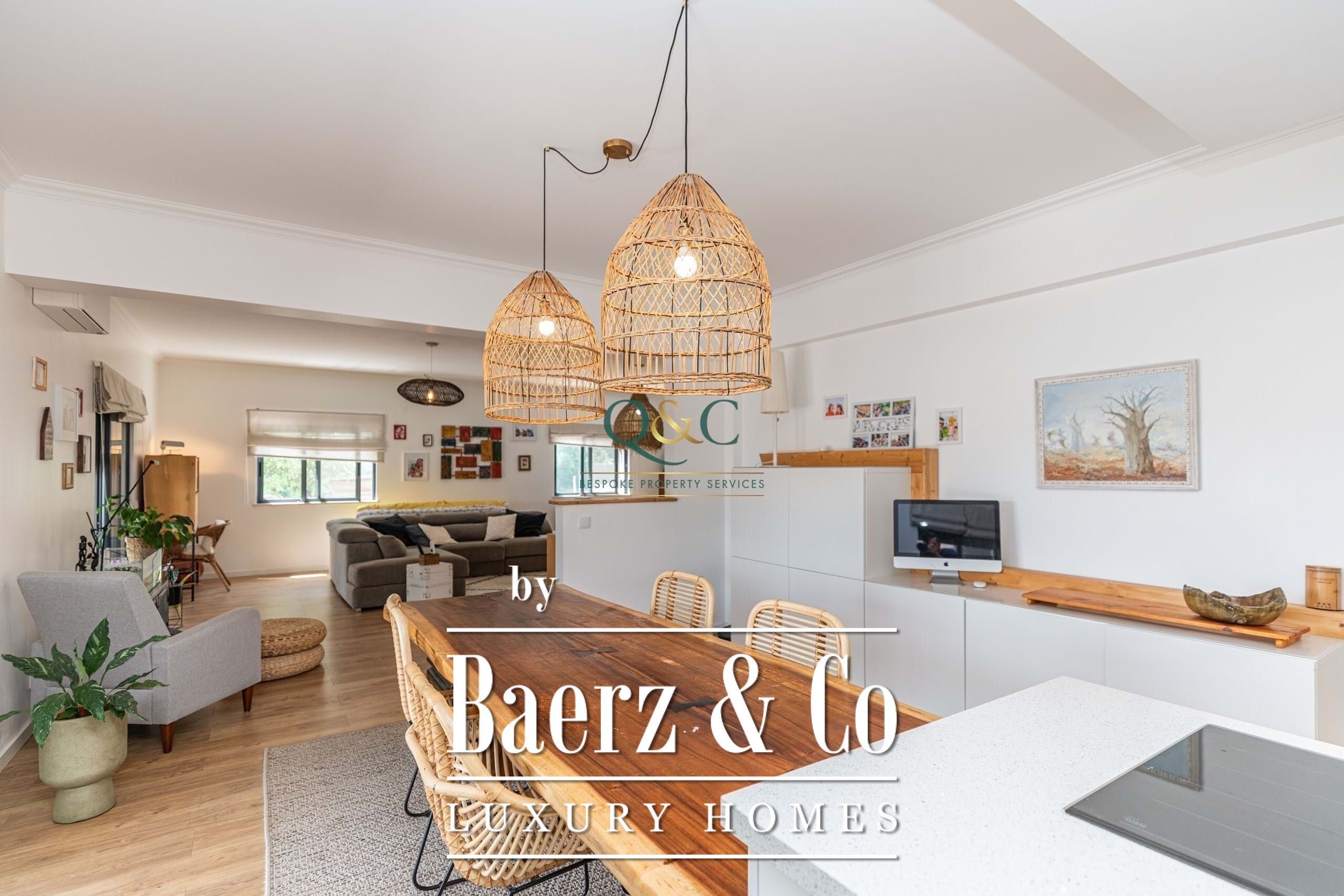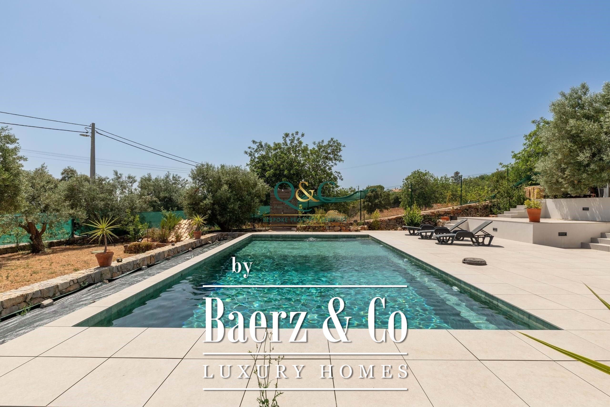Villa São Brás de Alportel integrates seamless indoor and outdoor living with the serenity of the Portuguese countryside. This villa São Brás de Alportel welcomes you along a cobblestone path, opening to an understated 200 m² single-storey residence fully renovated in 2019. The entrance hall flows naturally into a luminous living room anchored by a wood-burning stove, paired with a modern open-plan kitchen and access to a covered terrace. The interiors are anchored by noble finishes and precise craftsmanship, while sunlight filters through expansive windows, drawing the outdoors in.