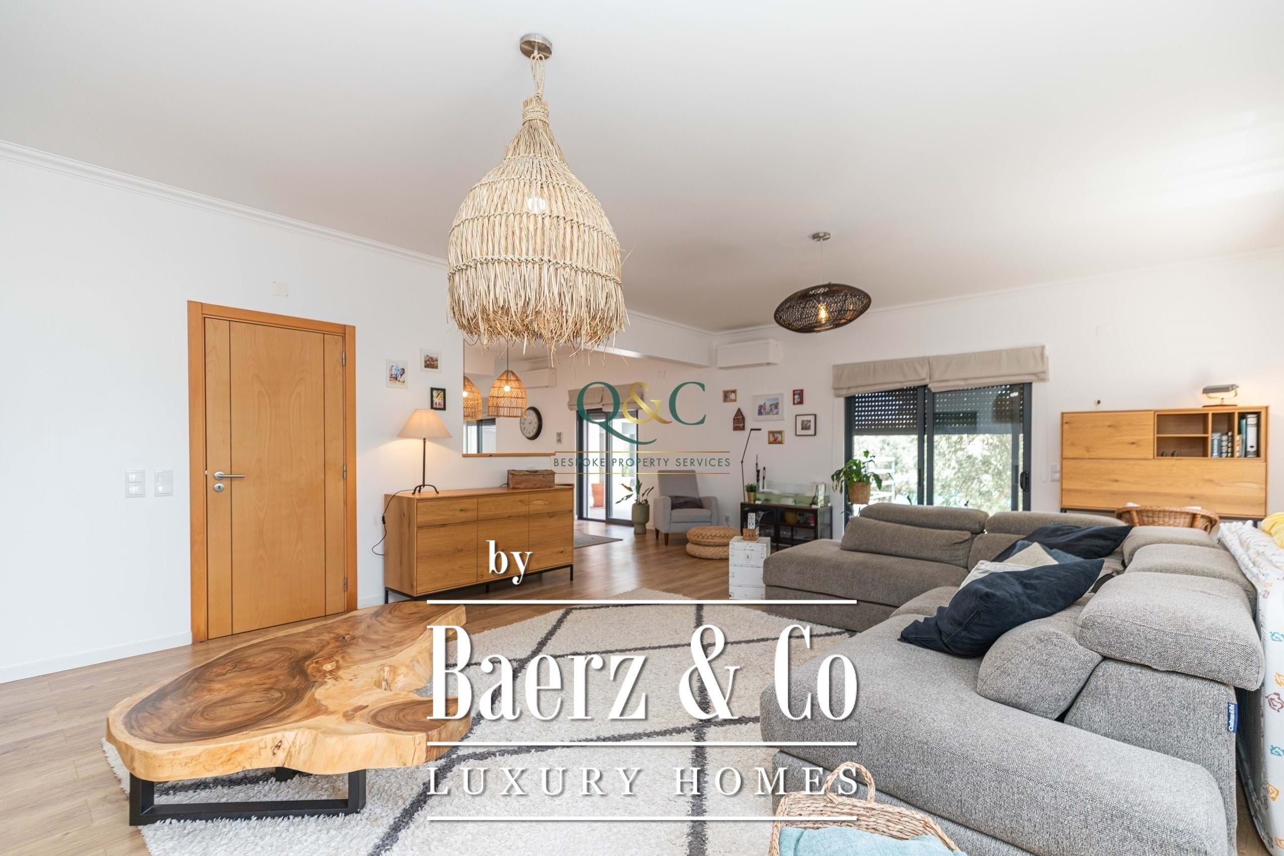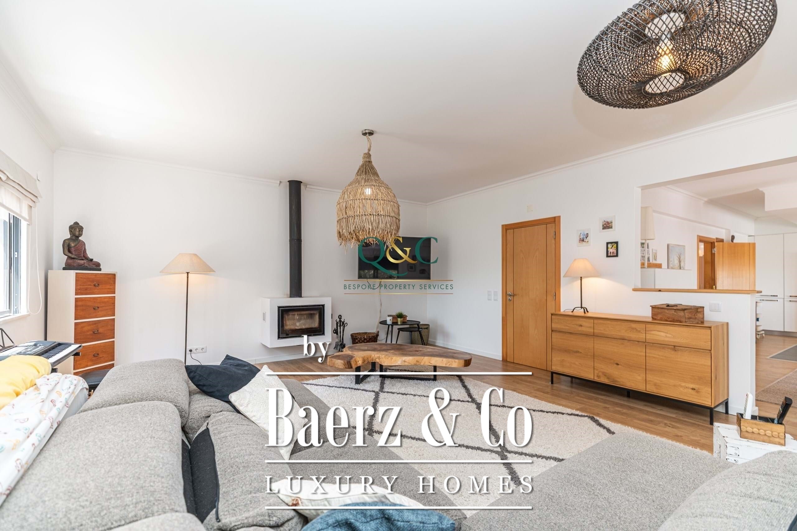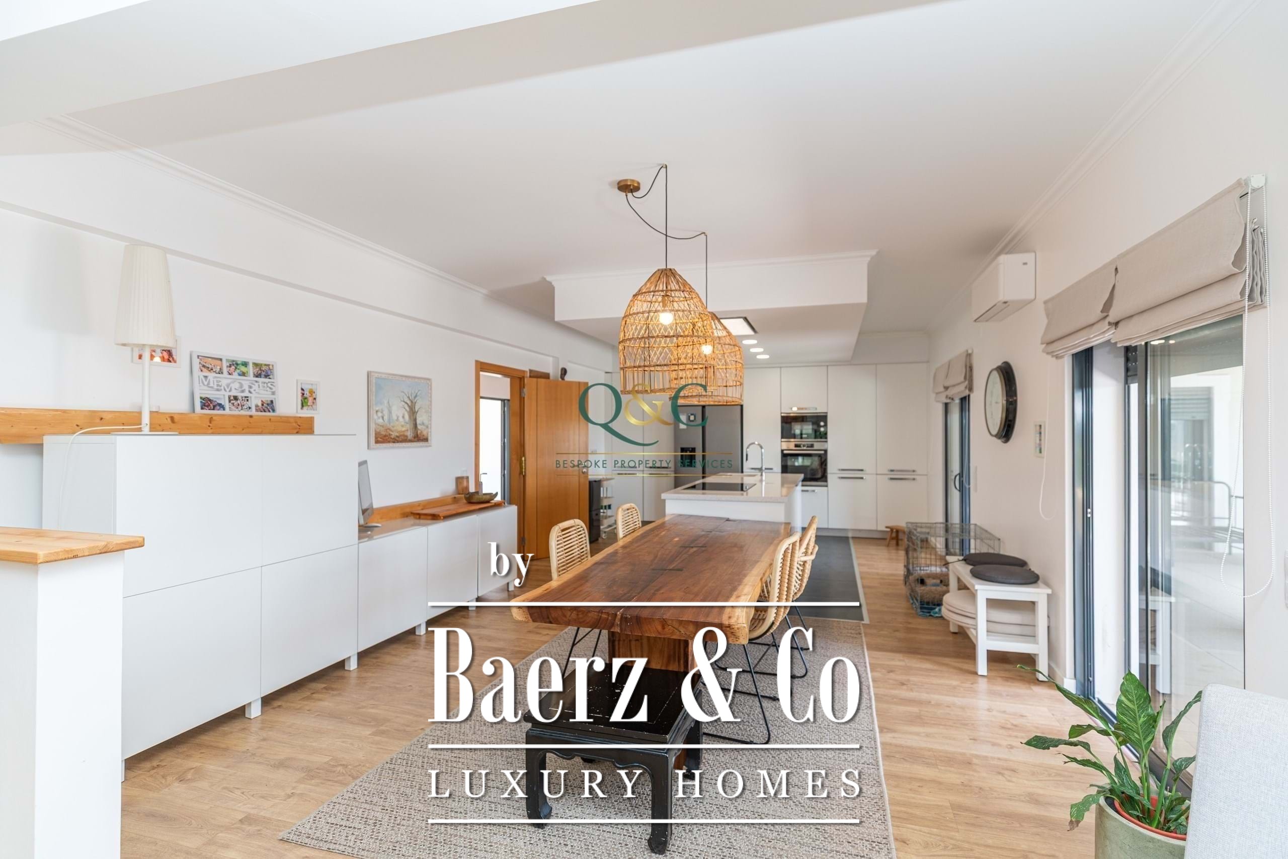 Villa São Brás de Alportel integrates seamless indoor and outdoor living with the serenity of the Portuguese countryside. This villa São Brás de Alportel welcomes you along a cobblestone path, opening to an understated 200 m² single-storey residence fully renovated in 2019. The entrance hall flows naturally into a luminous living room anchored by a wood-burning stove, paired with a modern open-plan kitchen and access to a covered terrace. The interiors are anchored by noble finishes and precise craftsmanship, while sunlight filters through expansive windows, drawing the outdoors in.