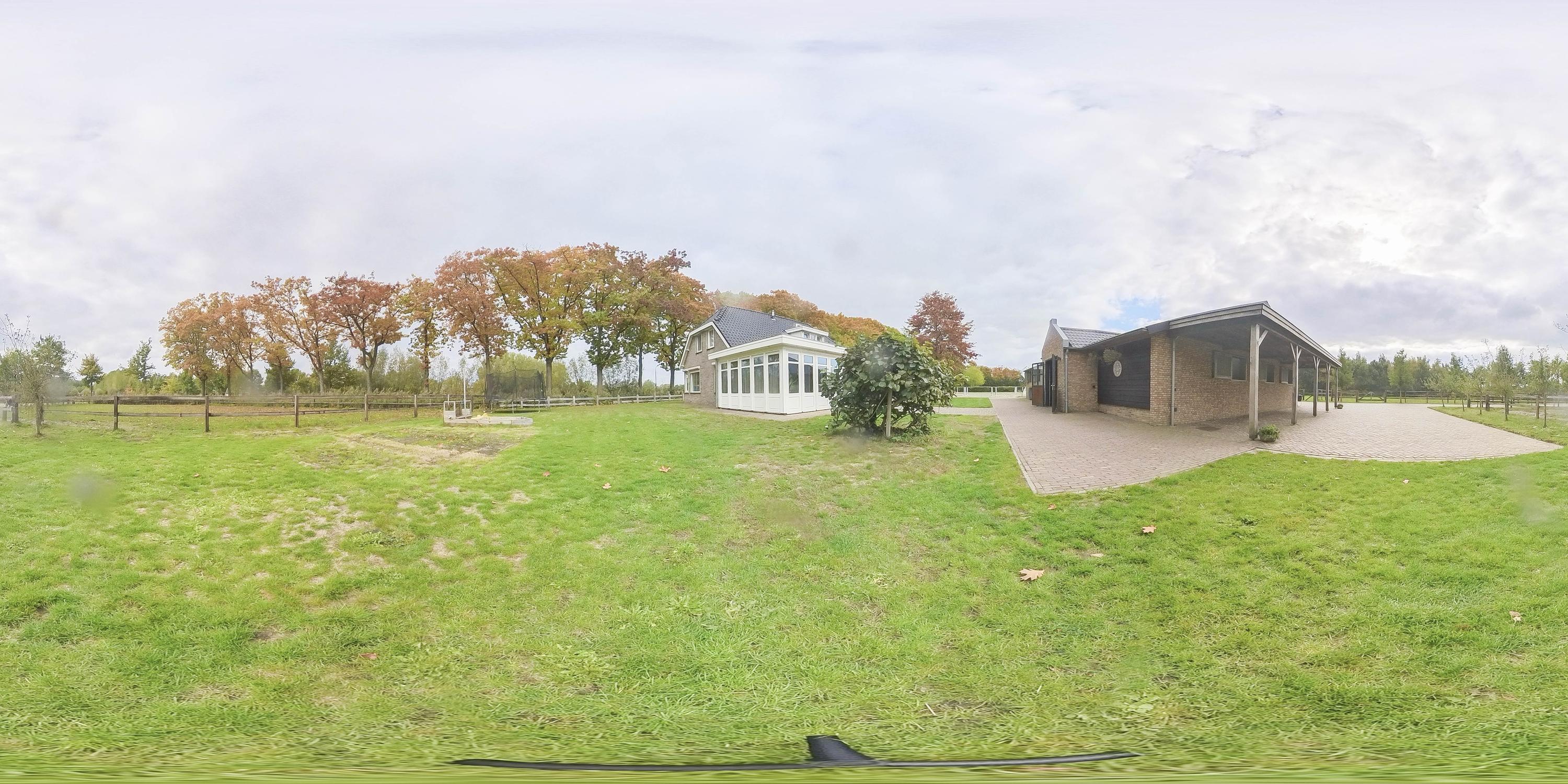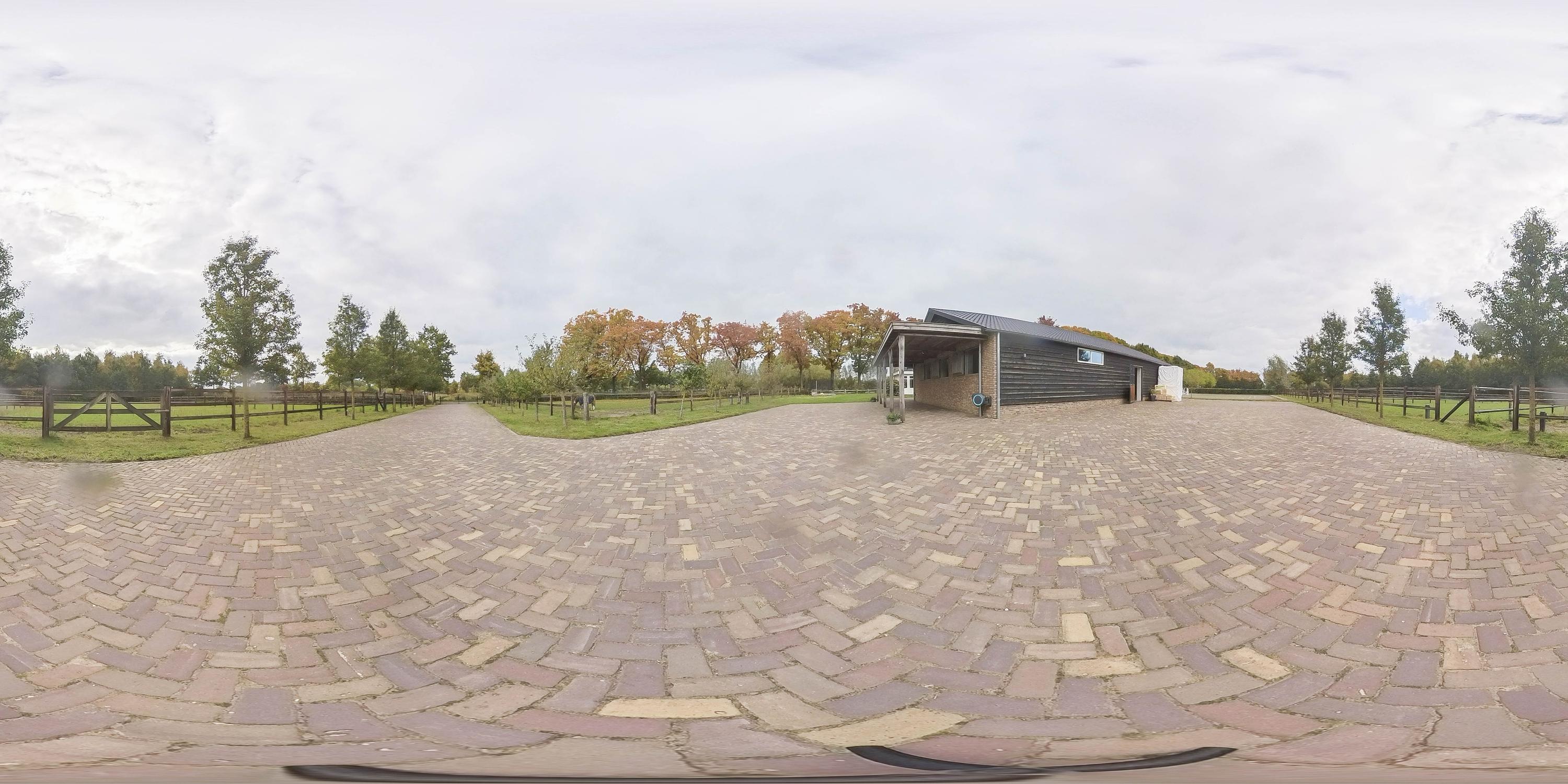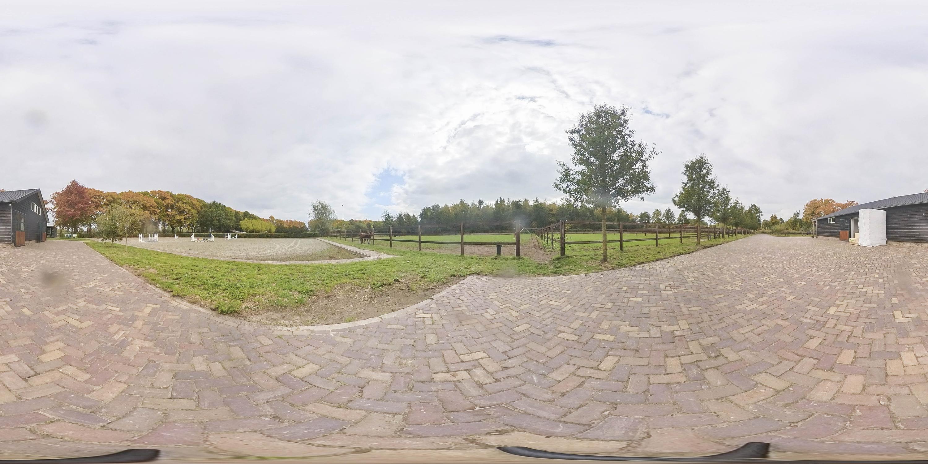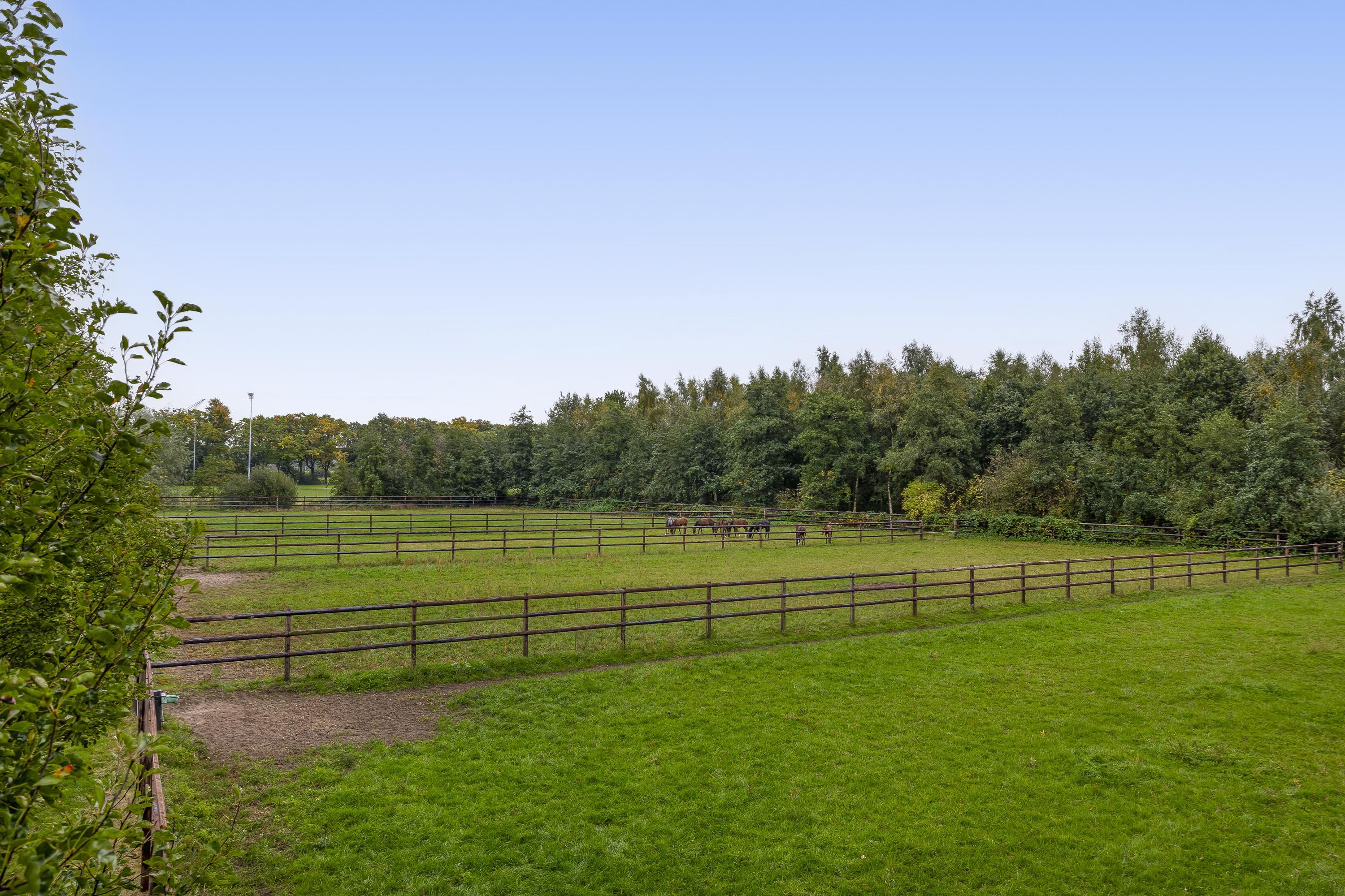 The outdoor arena measures approximately 25 m x 50 m and has an ebb and flow floor. The pasture is divided into five paddocks. These paddocks are equipped with automatic drinking troughs. The fence is made of wood and is extra high.