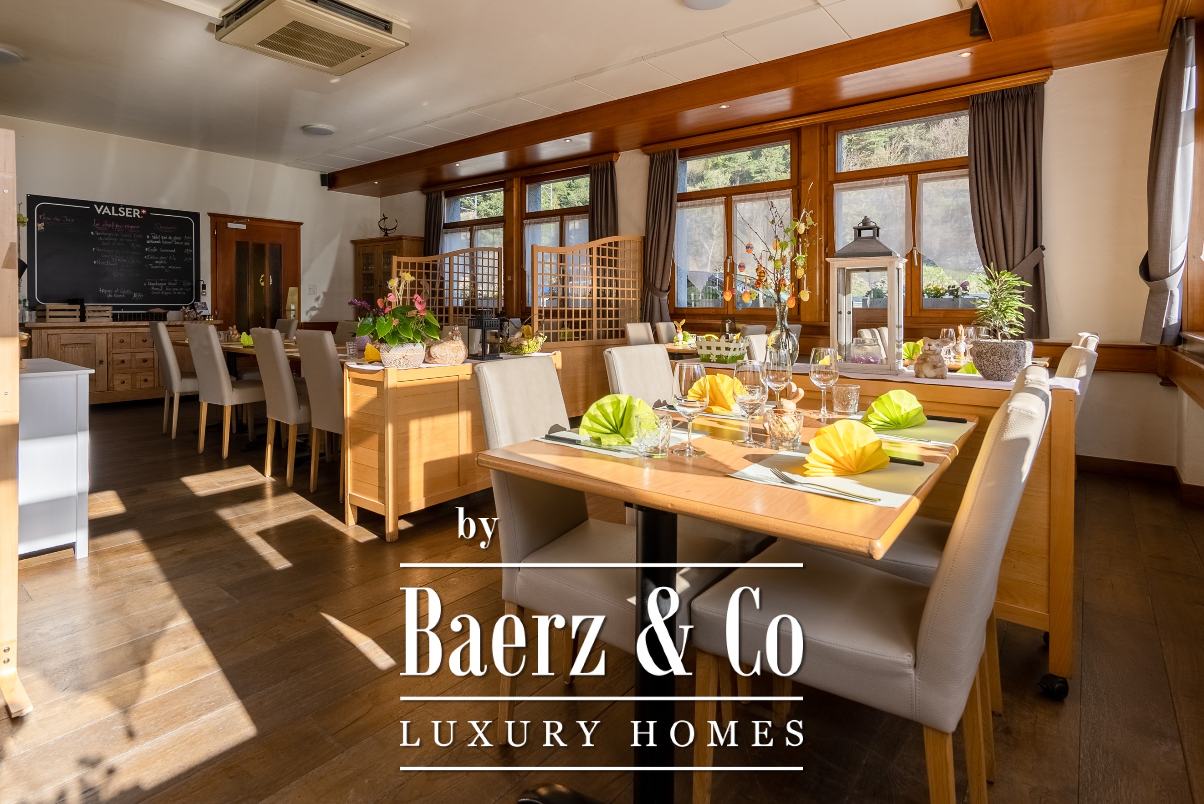 This restaurant property Sembrancher presents a distinctive opportunity at a natural crossroad between Val de Bagnes, Orsières, and Martigny. Occupying 487 m², the establishment features a welcoming café area with 30 seats, a main restaurant space accommodating 40, and a large conference room suitable for up to 100 guests. Situated in the heart of Sembrancher, the property combines hospitality and business capacity in a single address.