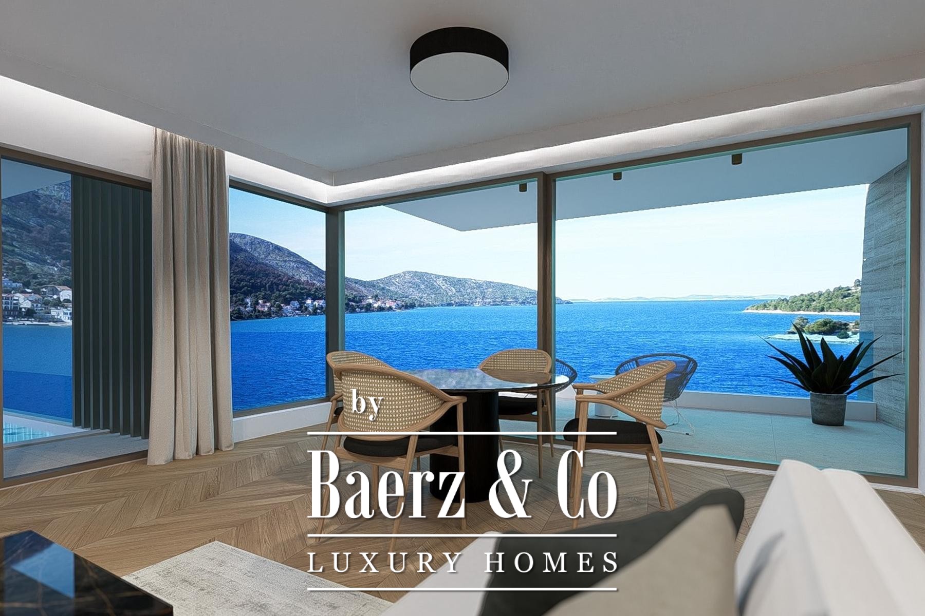 bathroom, one separate bathroom, and a spacious terrace with a pool and a sea view. Above the apartment there is a spacious roof terrace with a sunbathing area and a barbecue area. Each room has air conditioning, and the apartment also has underfloor heating. The building is equipped with an elevator.The building is located only 40 meters from the sea. This is a luxury project consisting of two buildings, with a total of 9 apartments, where each apartment has a private pool.We are at your disposal for all other information.