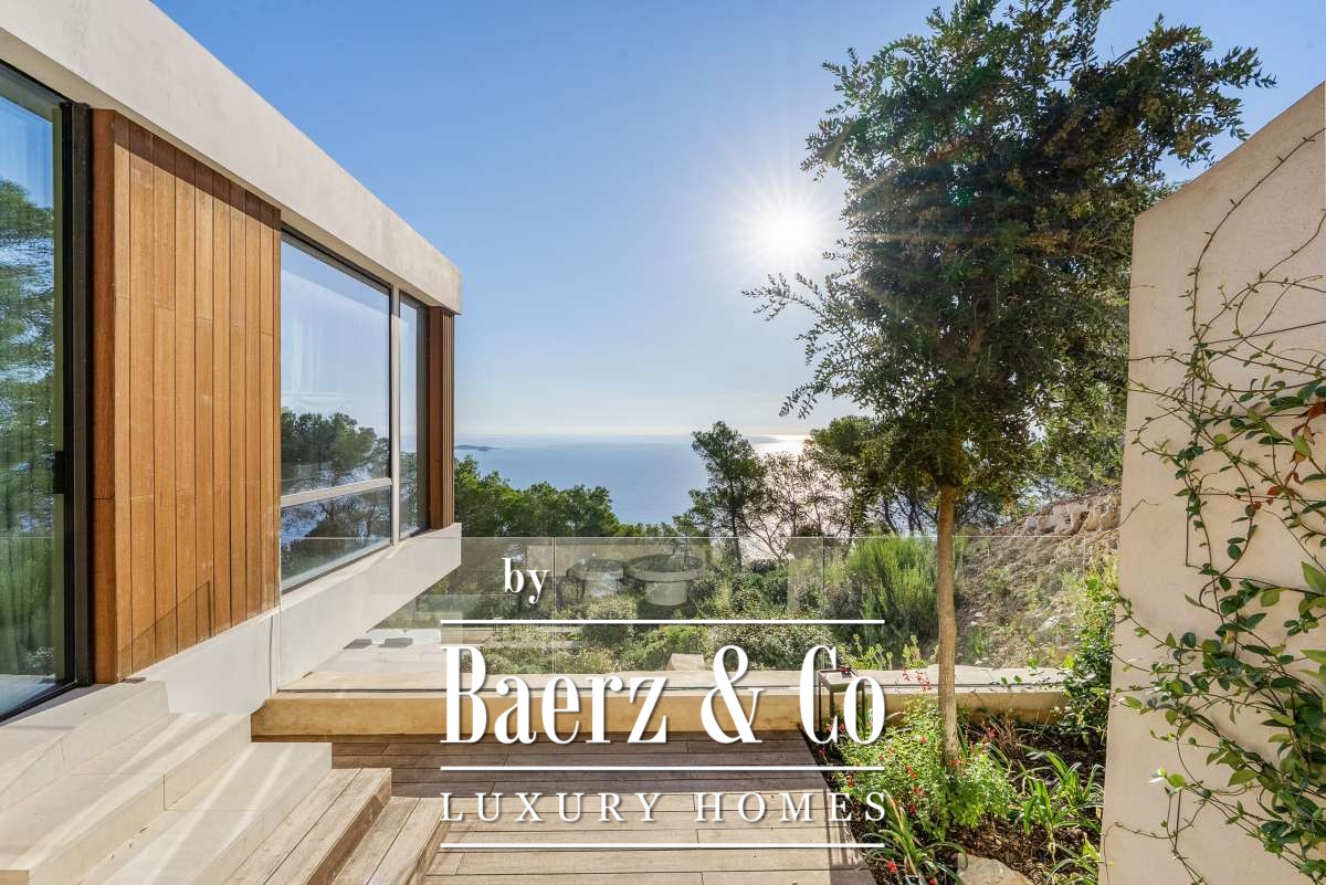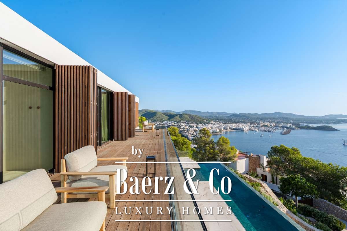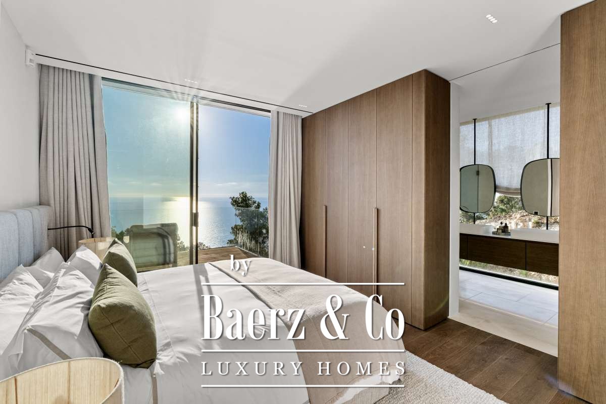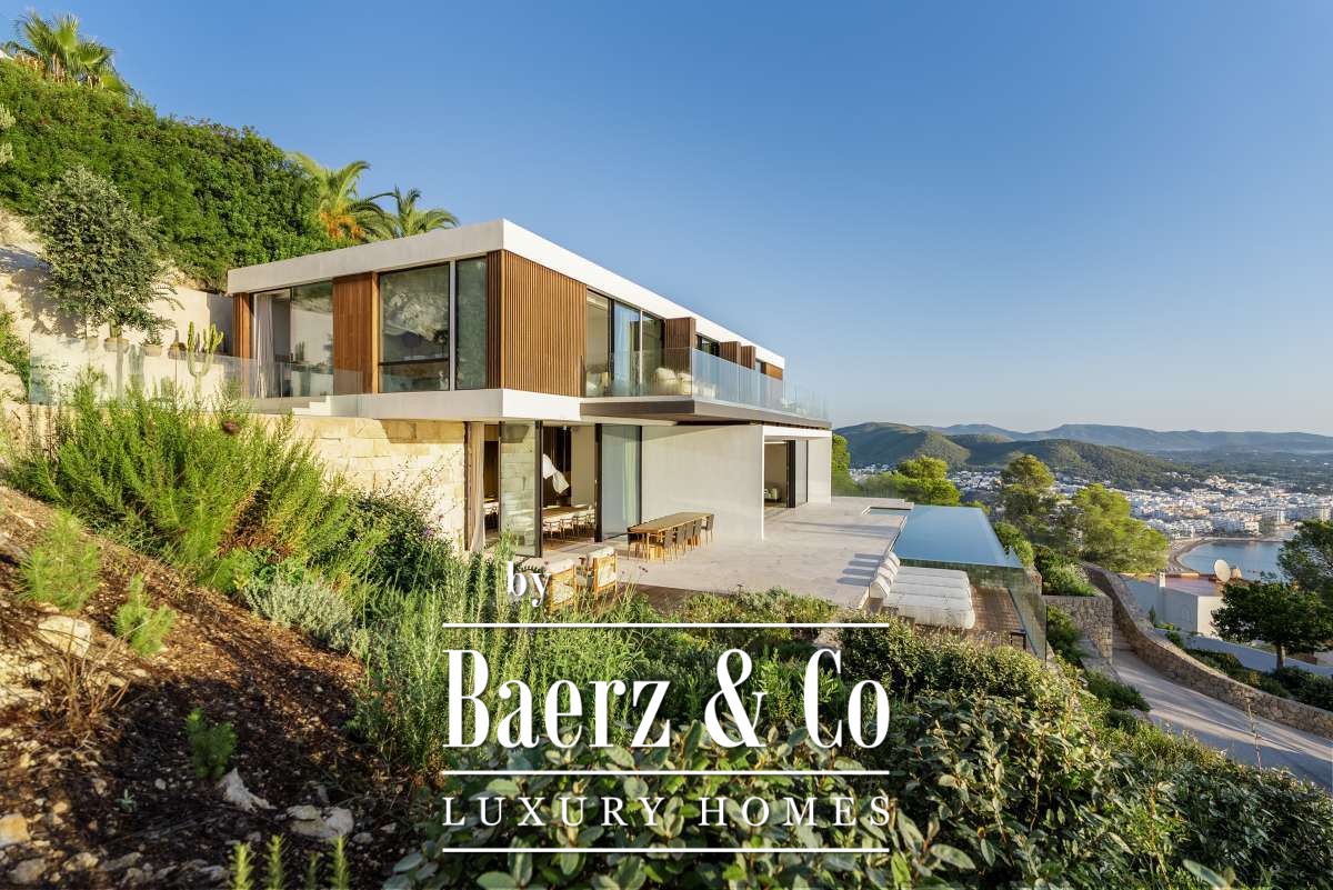 The surroundings – tranquility and a view like no otherCasa Rise is located in a quiet, green area near Santa Eulalia, nestled among gently rolling hills and Mediterranean nature. From the property, you have a breathtaking view that is unique to Ibiza, with panoramic vistas over the surrounding valley and the shimmering Mediterranean Sea in the distance. Here you experience ultimate peace and privacy, while still being just minutes away from lively villages, beaches, and all amenities on the eastern side of Ibiza.The house and layout – high-end finishing in every detailAfter five years of preparation and permit procedures, Casa Rise has been completed: an architectural masterpiece of 650 m² that elevates luxury living to a new level. The house features four bedrooms and four bathrooms, all spacious, bright, and designed with attention to comfort.Inside, the premium materials and details immediately stand out: Piet Boon window frames, exclusive handles and taps, Gira switches, and designer lighting by Flos. The kitchen forms the heart of the home, while an integrated home automation system (smart home) effortlessly controls lighting, climate, and music (Sonos, both indoors and outdoors).The home also offers