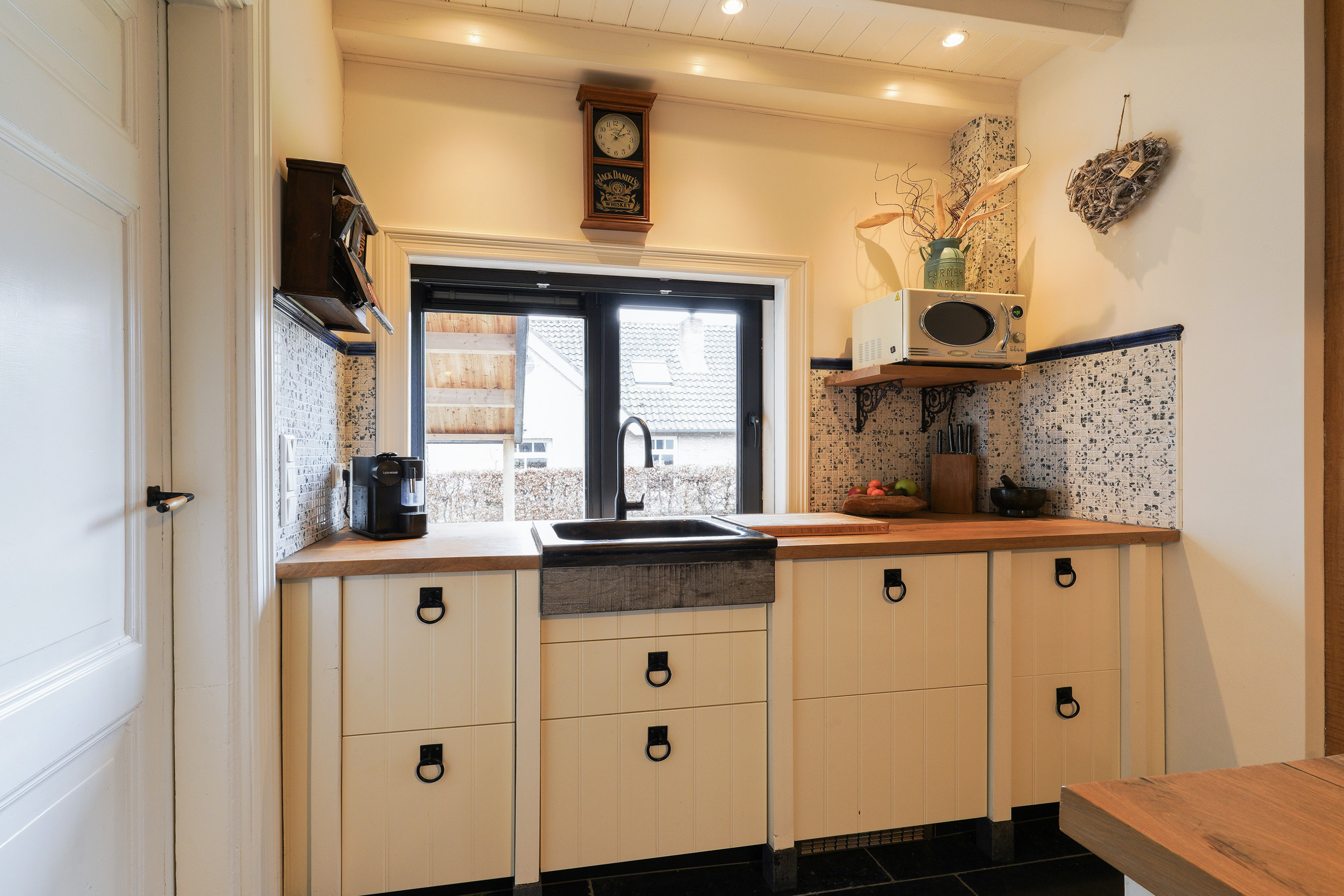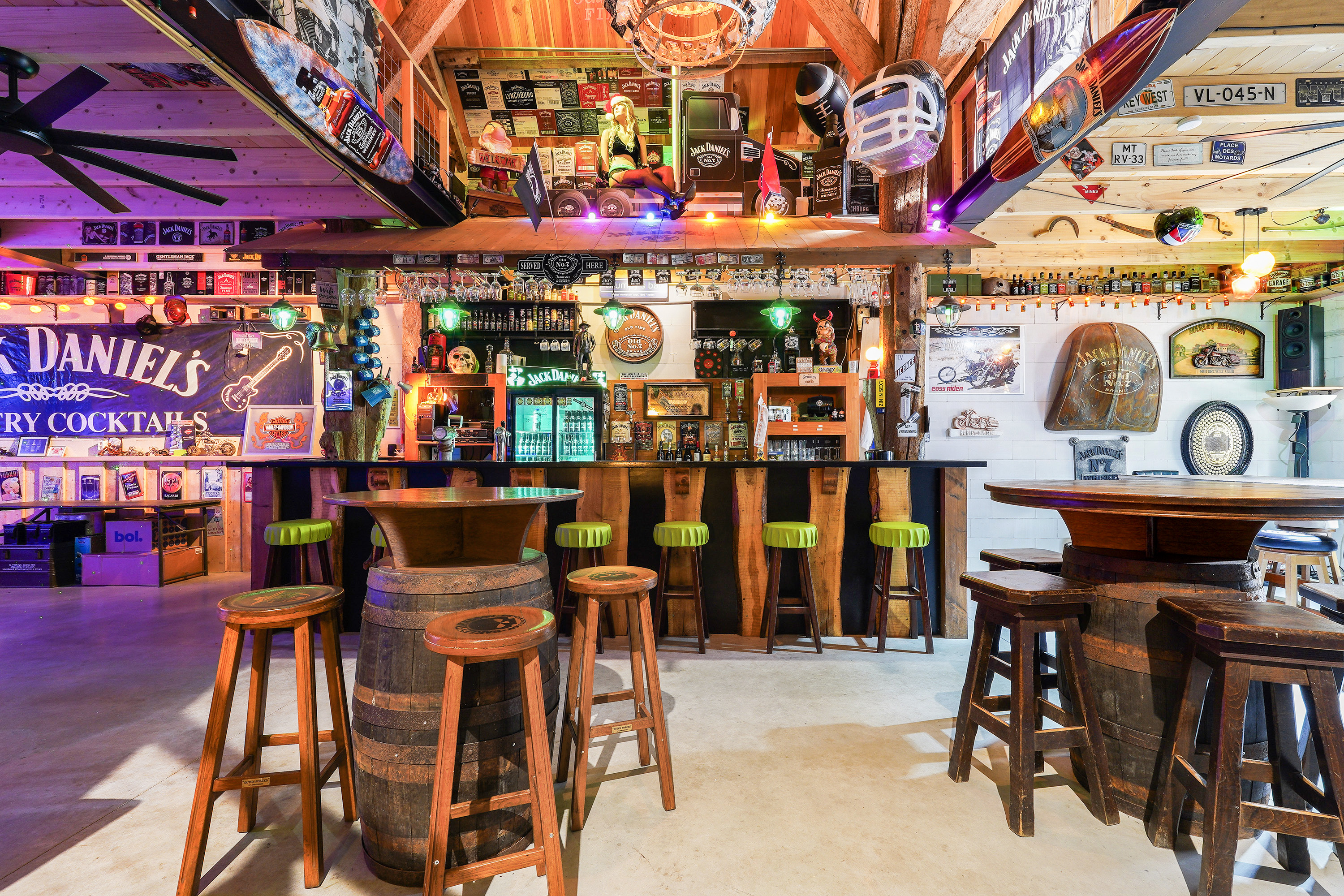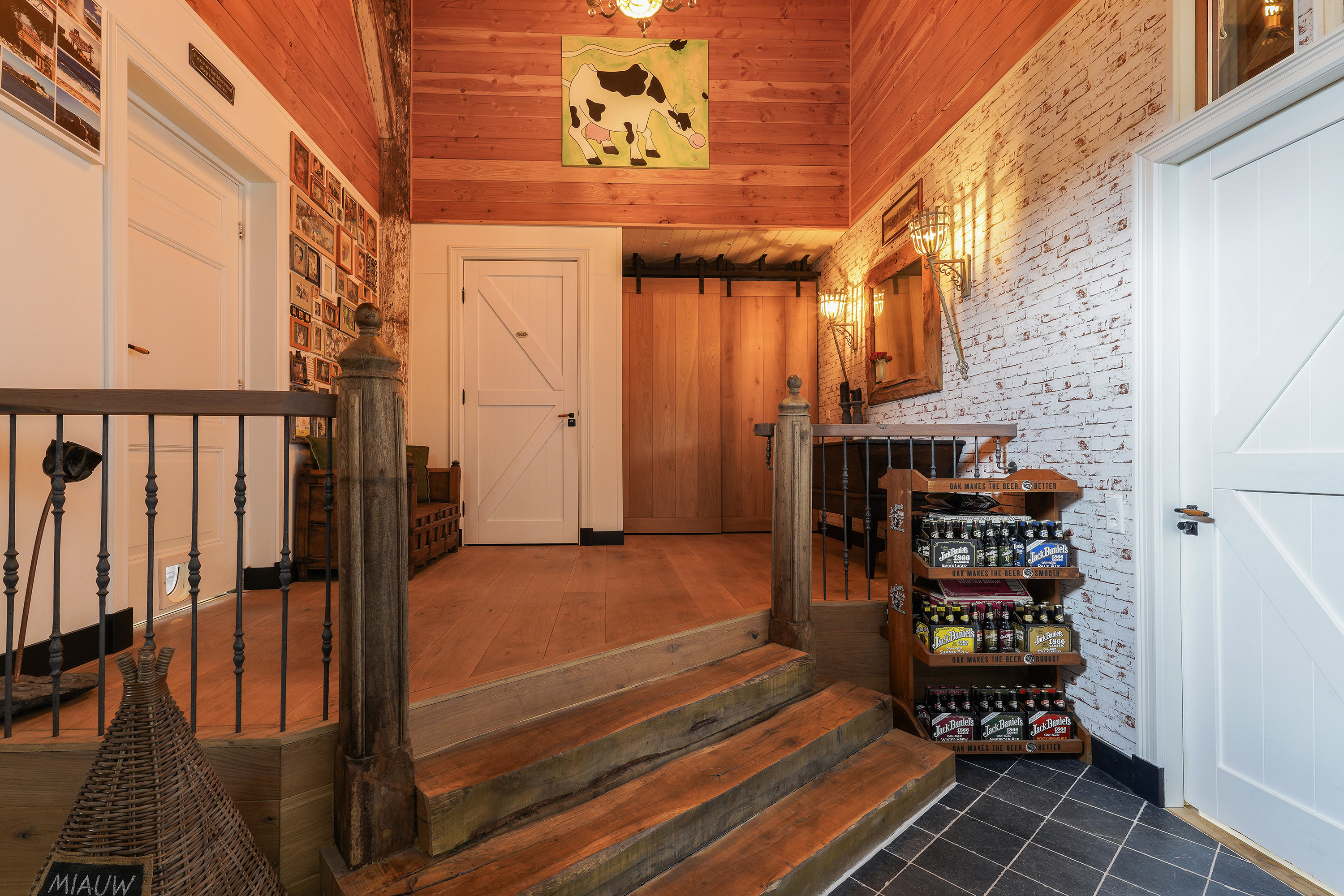 De sfeervolle keuken vormt één geheel met de gezellige woonkamer en is voorzien van een kookeiland met aangrenzend een houten eettafel, veel bergruimte en uiteraard alle luxe inbouwapparatuur. En dan... bereikbaar via de bijkeuken, de garage of de veranda aan de achterzijde… de bar. Compleet uitgevoerd met koelingen, een eigen toiletruimte met toilet en urinoir en een indrukwekkende vide tot in de nok. Zelfs vanaf de zolderverdieping kijk je via die vide weer de bar in. Dit is een ruimte die je moet ervaren.