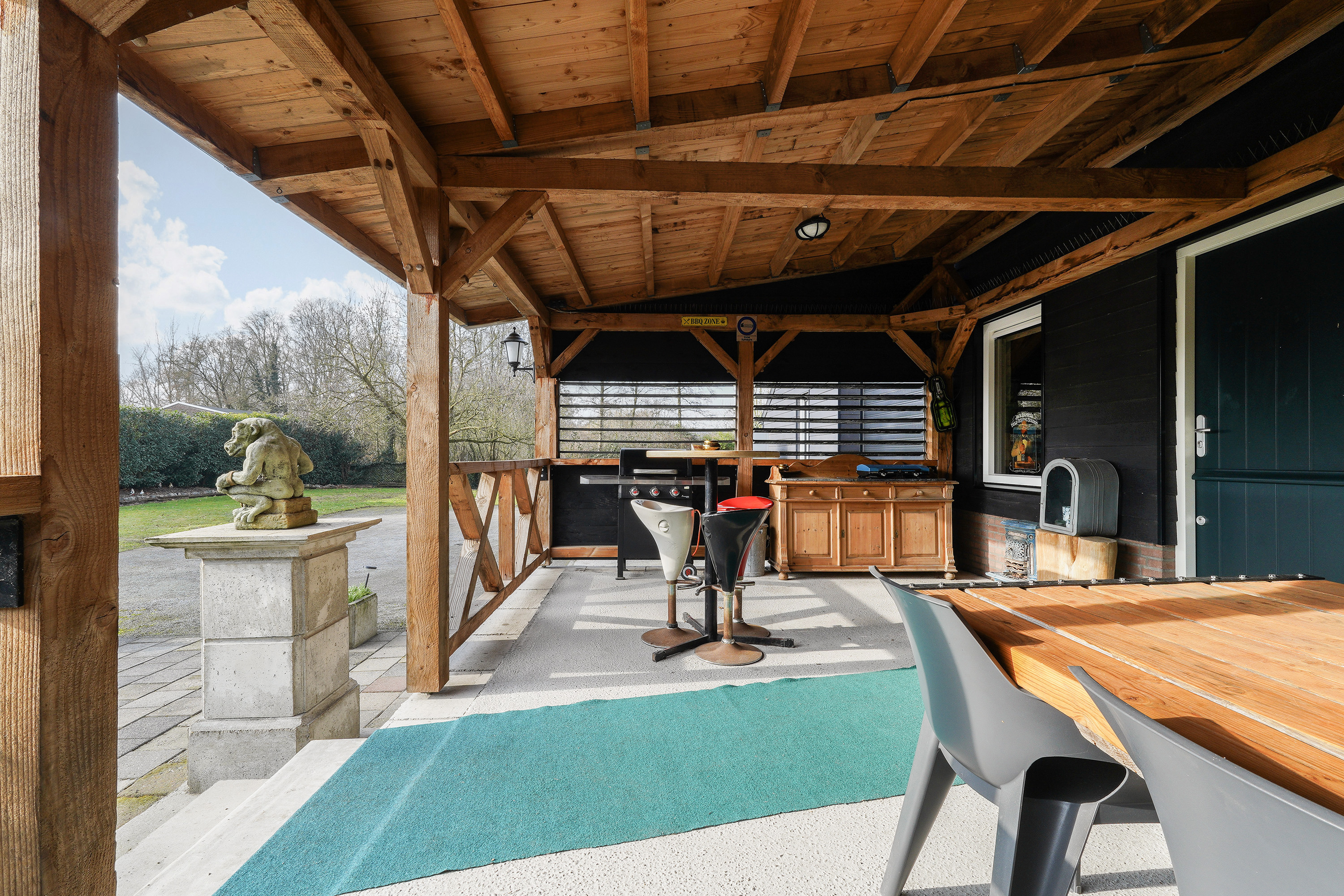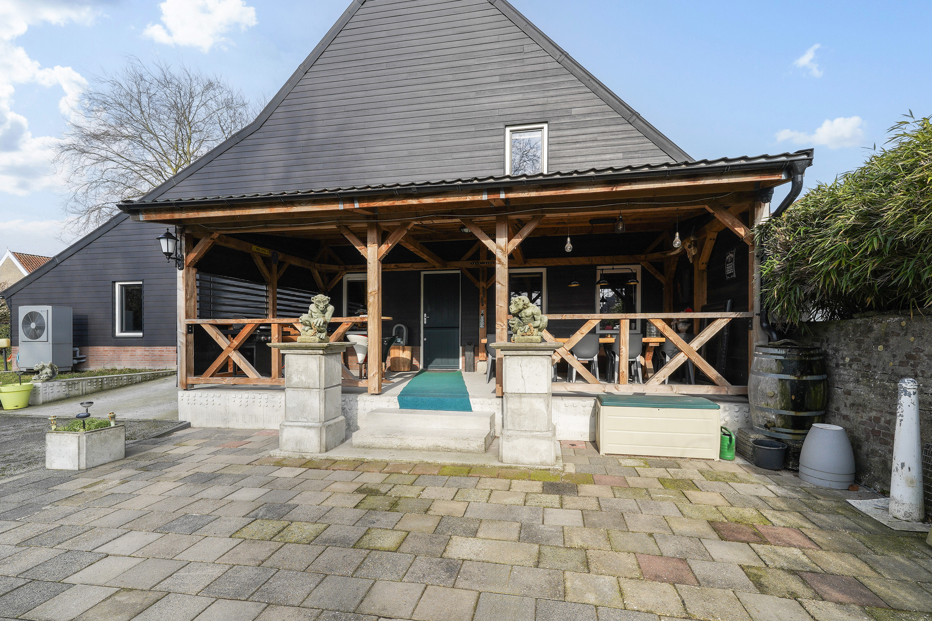Woorden, plattegronden en foto’s doen hun best, maar deze woning laat zich eigenlijk niet vangen op papier. De ruimte, de sfeer, de rust en de mogelijkheden moet je zelf ervaren. Dit geldt ook voor de buitenruimte! Doordat alle tijd en energie in de woning is gaan zitten, mag de volgende bewoner de tuin verder gaan inrichten. Er is al een goede basis, want de verharding is reeds aangebracht evenals een zeer riante veranda die vanaf de bar bereikbaar is. Door de grote ruimte achter en naast het huis zijn ook hier de mogelijkheden nagenoeg eindeloos.