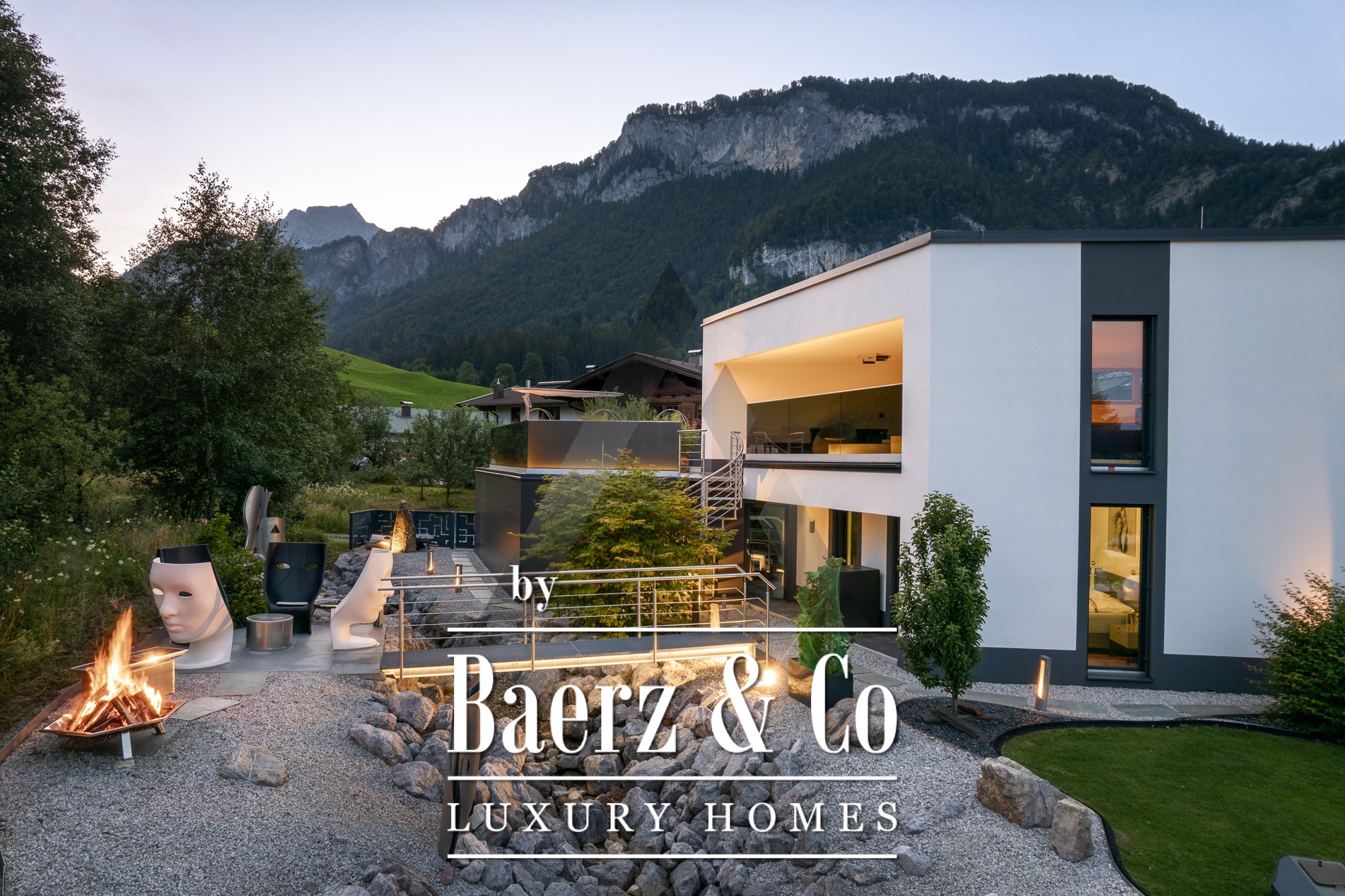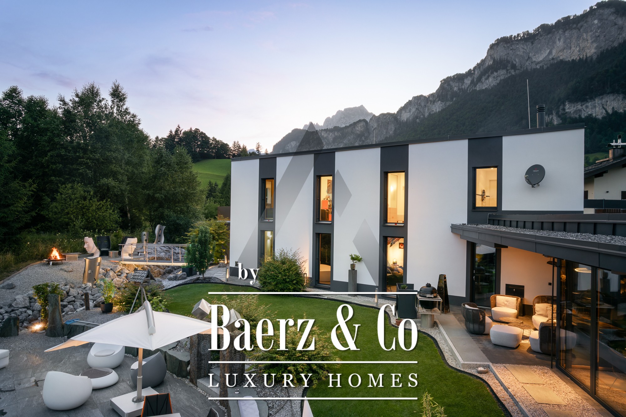 Wellness and comfort intertwine, evident in features like geothermal heating, a Sonos sound system, and electric blinds. Three garages, two carports, and further parking supplement the offering. Crafted for privacy and well-being, this property positions you steps from hiking trails, mountain sports, and all the amenities of St. Johann in Tirol, a destination distinguished by its sun-filled valley and vast natural pursuits. Experience serenity and elevated living with this luxury villa for sale in St. Johann in Tirol.