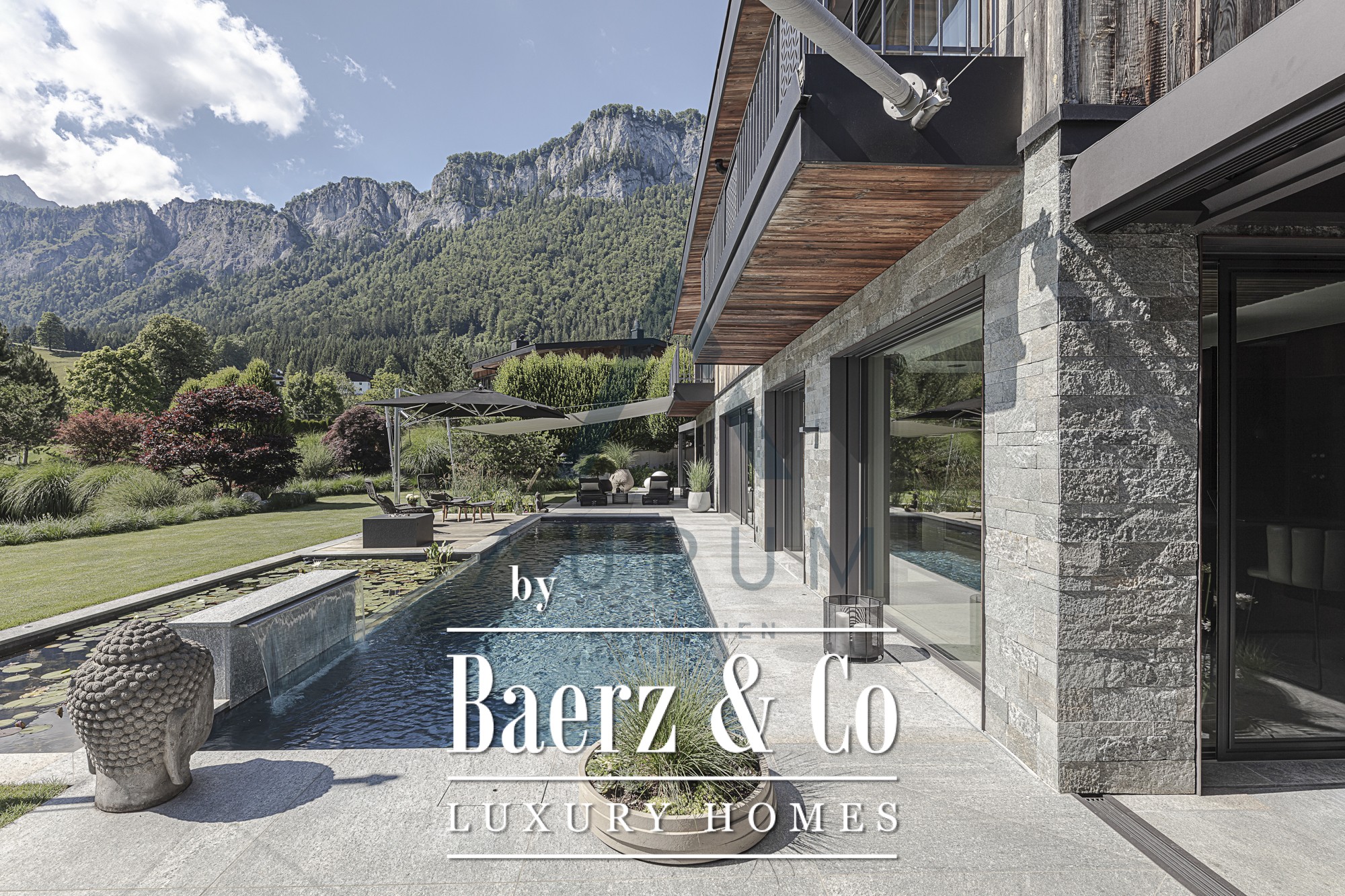 Chalet St. Johann in Tirol stands as a study in refined alpine living, thoughtfully set within one of the region’s most tranquil landscapes. This chalet offers around 384 m² of living space across three impeccably designed levels, situated on a 950 m² private plot, complemented by a leased 350 m² garden extension. Every spatial decision reflects architectural intelligence, with an internal lift linking principal floors for enduring comfort and accessibility.