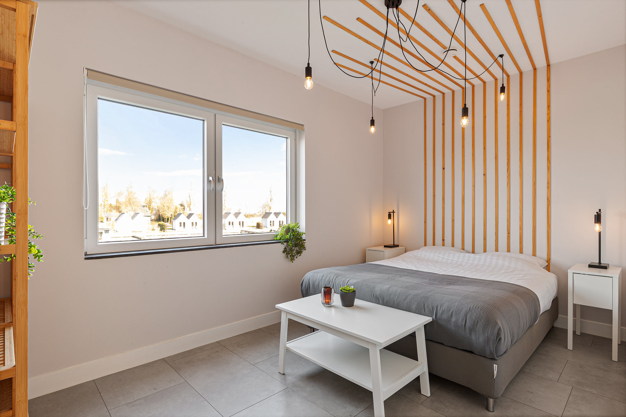 Via een vaste trap bereikt u de tweede verdieping met de vierde en vijfde royale slaapkamers, eveneens voorzien van eigen badkamers. De hoge plafonds met stoere balken in het zicht geven de kamers een ruimtelijk loft gevoel. Vanaf deze verdieping heeft u een bijzonder uitzicht over de omgeving en bij helder weer is zelfs de overkant van het IJsselmeer te zien. Ook hier zijn de kamers individueel qua temperatuur in te regelen. Op de overloop is een derde toilet, ruimte voor de witgoedopstelling en een toegang naar de technische ruimte.