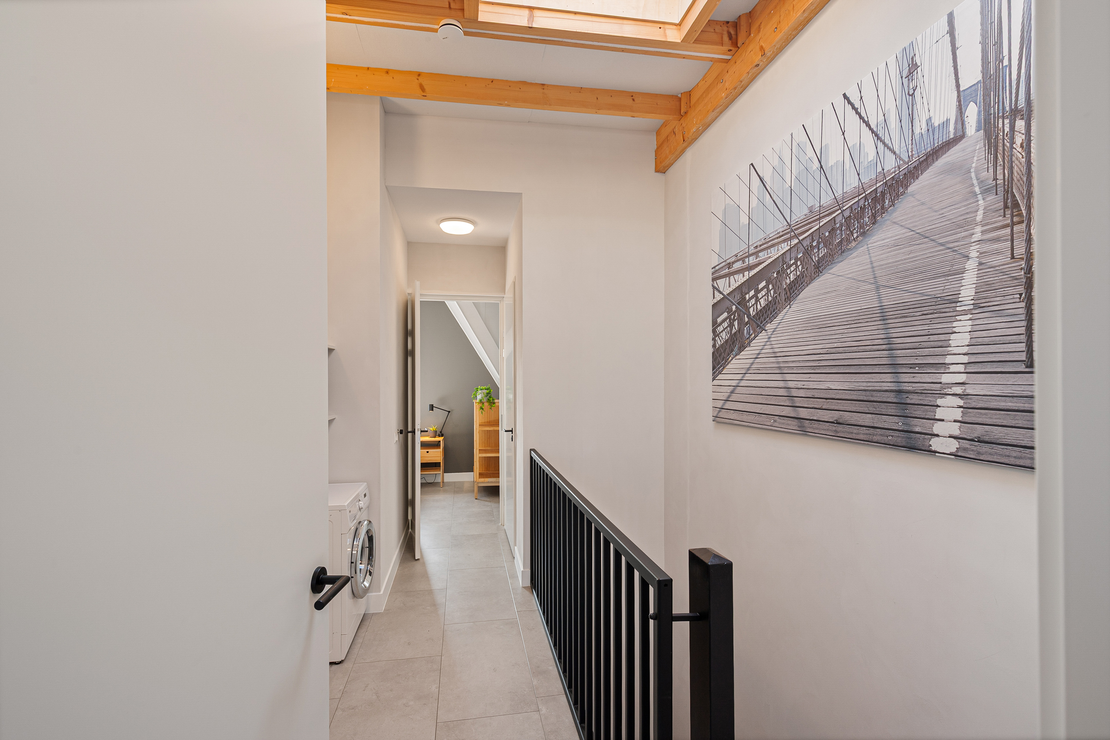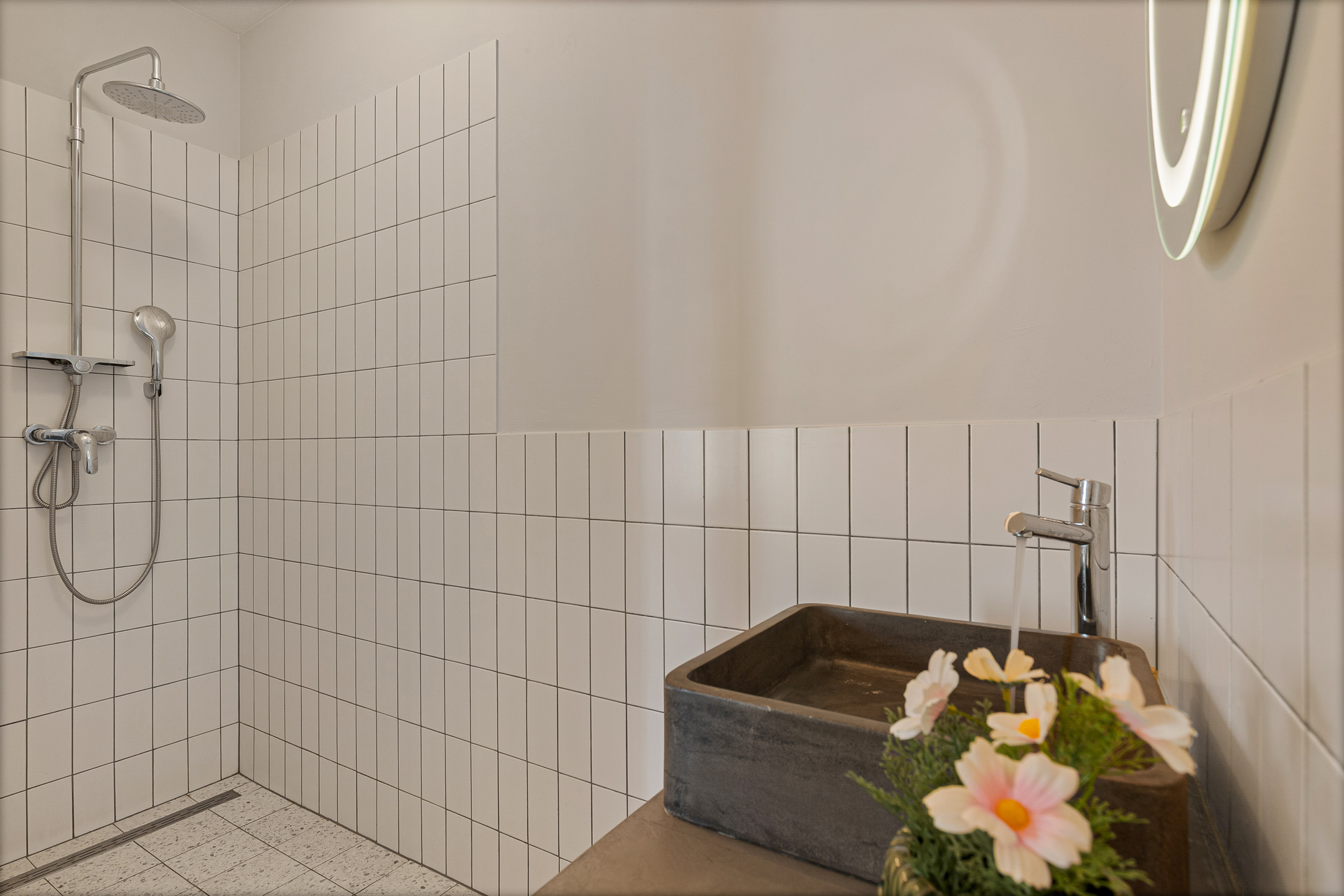 Overloop met toegang tot drie ruime slaapkamers met elk een eigen ensuite badkamer betegeld in mediterrane stijl, voorzien van inloopdouche en wastafelmeubel. De verdiepingsvloer is afgewerkt met een duurzame pvc-vloer en ook hier is vloerverwarming aanwezig. Alle kamers zijn individueel qua temperatuur in te regelen. Op de overloop is een tweede toilet en grote kastruimte gesitueerd.
